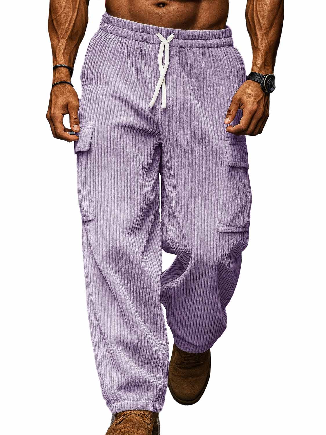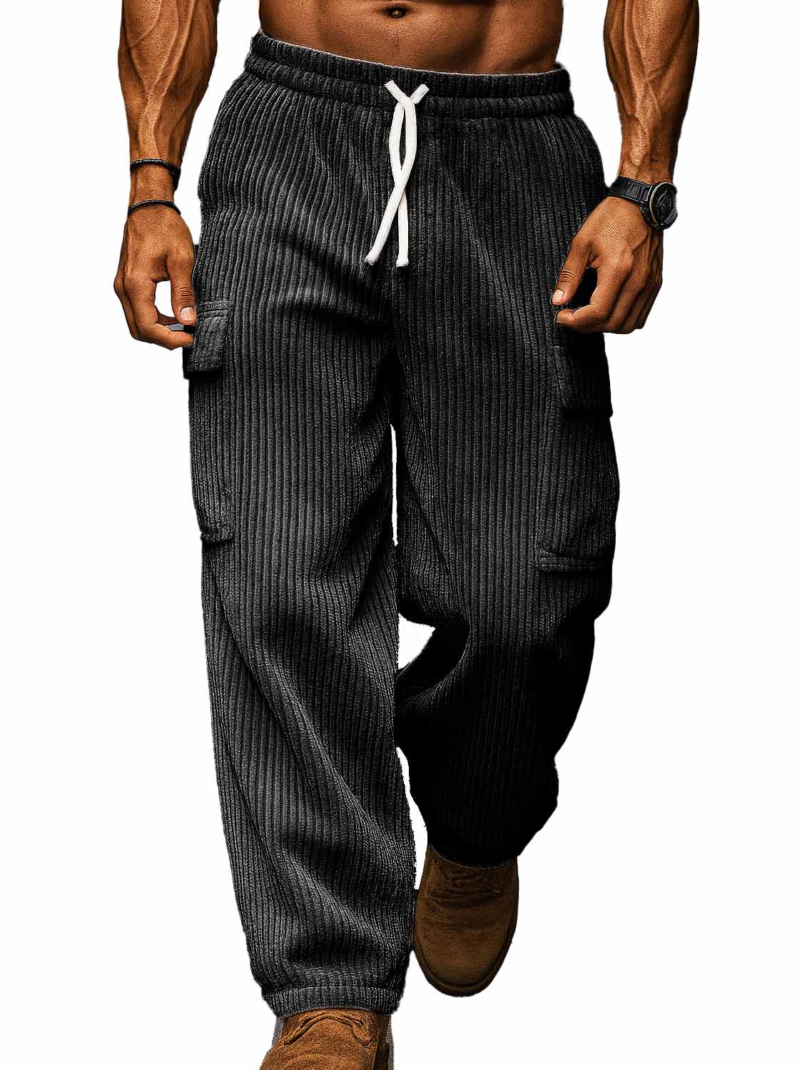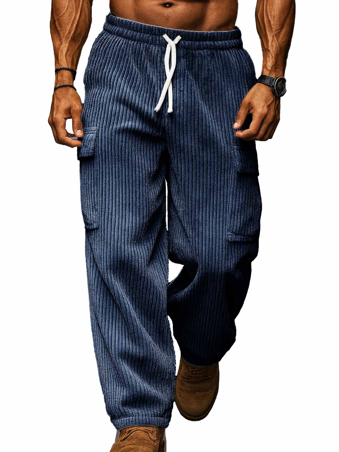 Men's Fashion Casual Workwear Pocket Corduroy Fabric Drawstring Loose Trousers