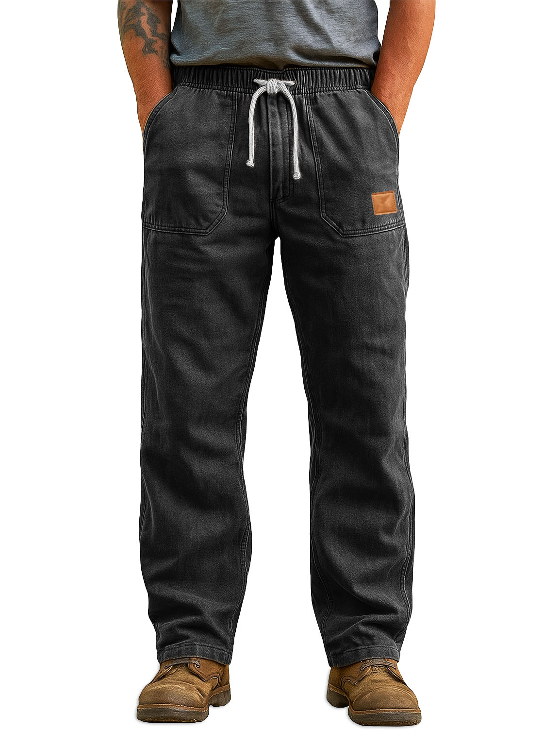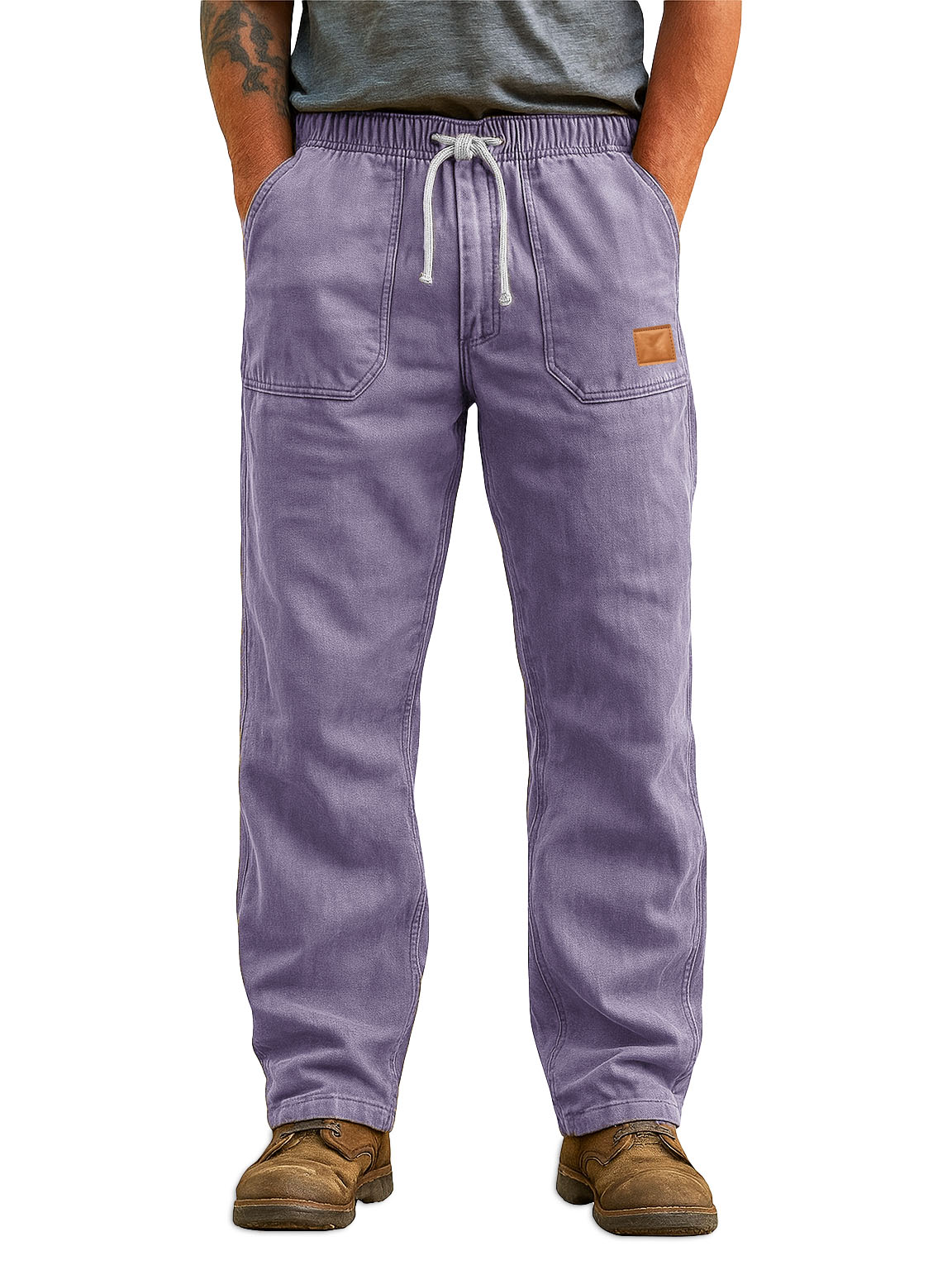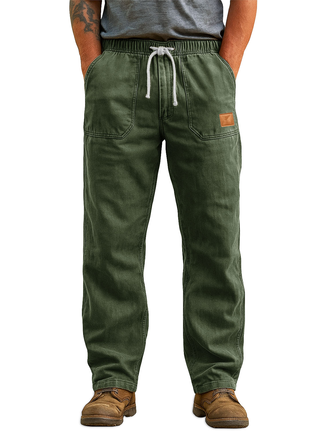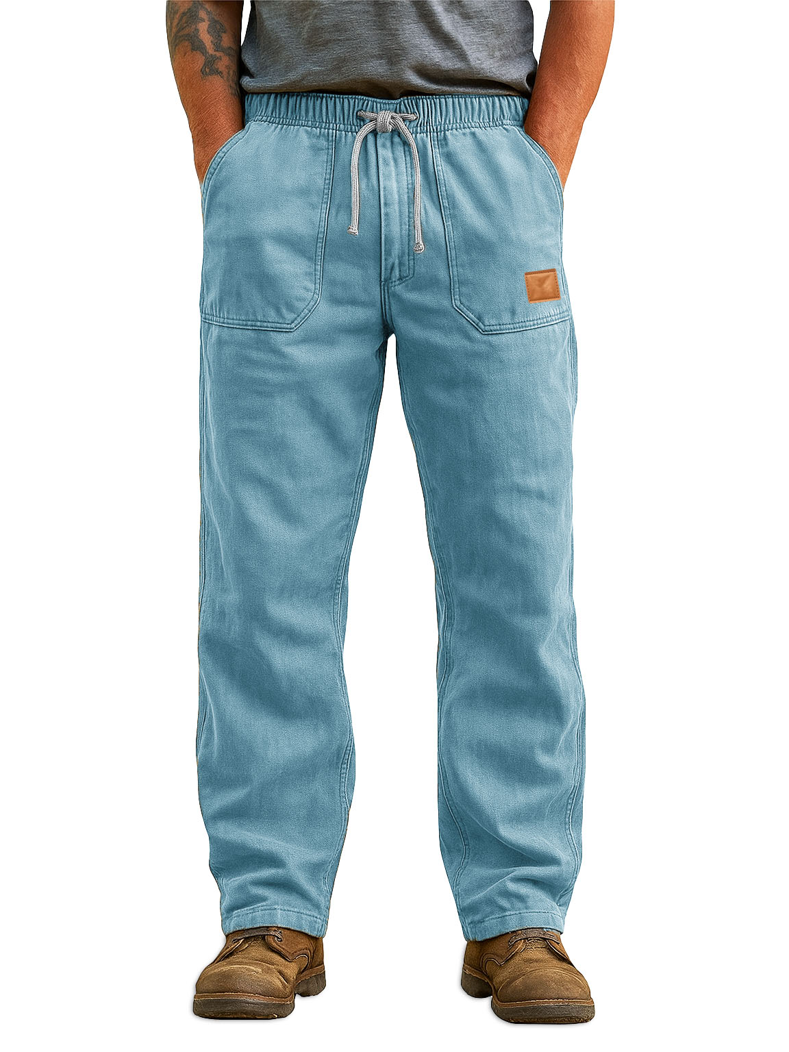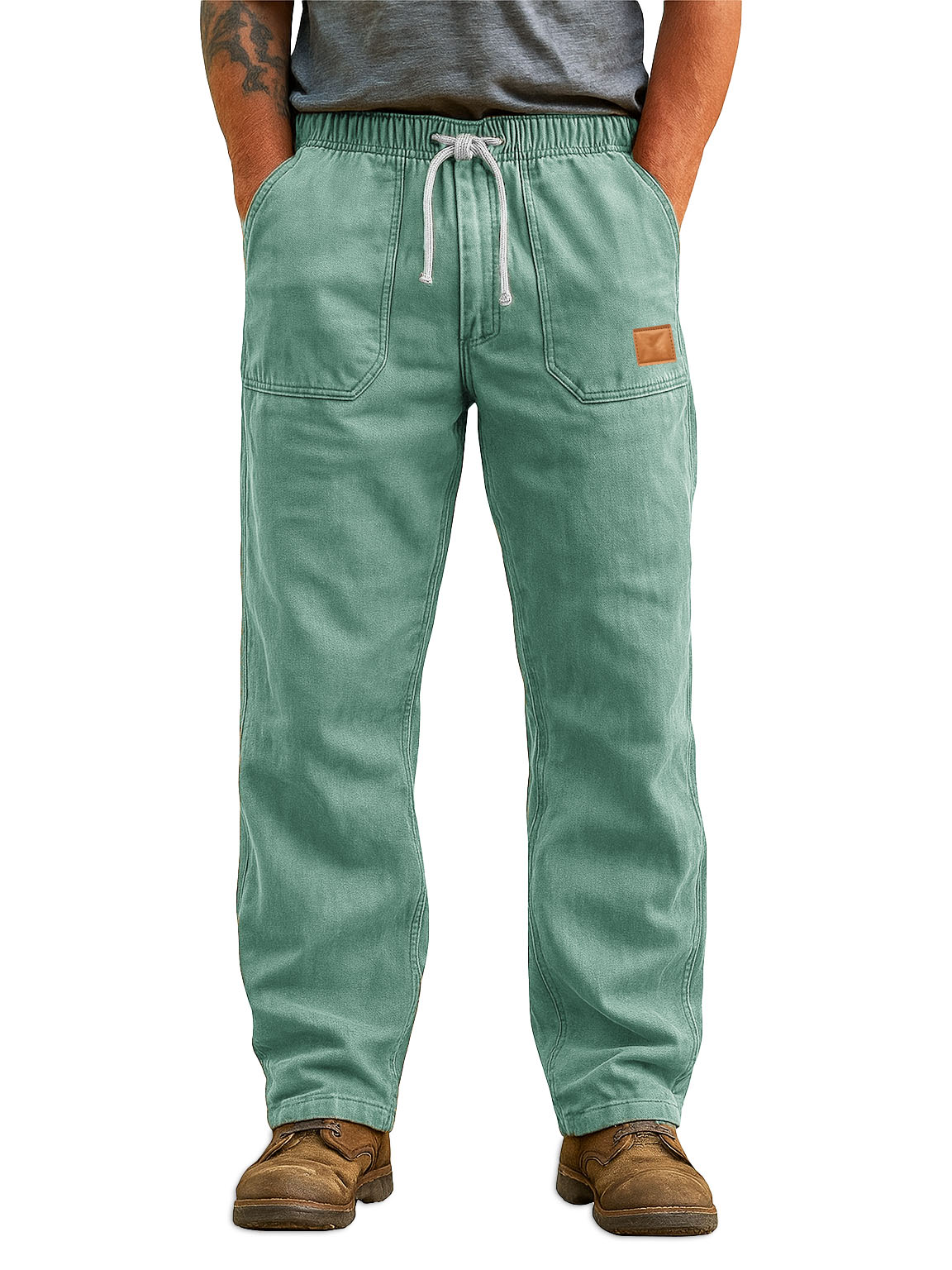 Men's Fashion Retro Outdoor Workwear Elastic Waistband Leather Pocket Trousers