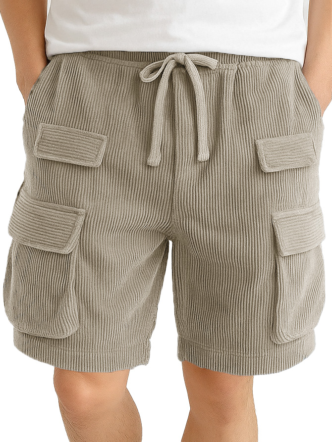 Men's Fashion Retro Outdoor Workwear Pocket Elastic Waist Drawstring Shorts