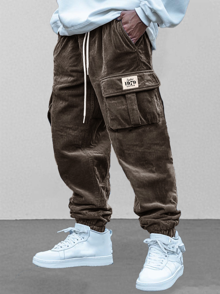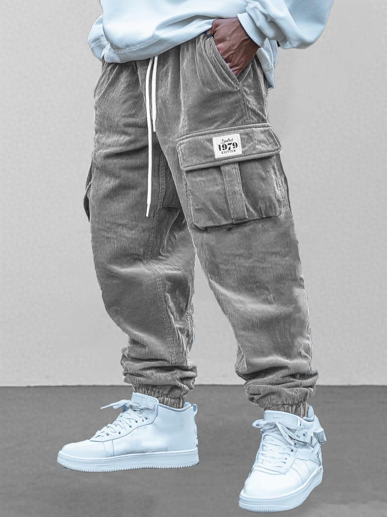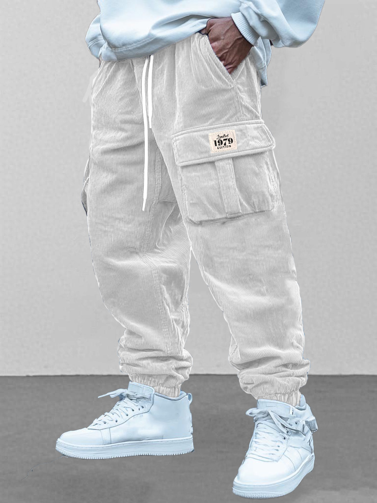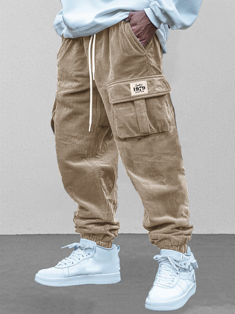 Men's Fashion Retro Workwear Pocket Elastic Drawstring Trousers