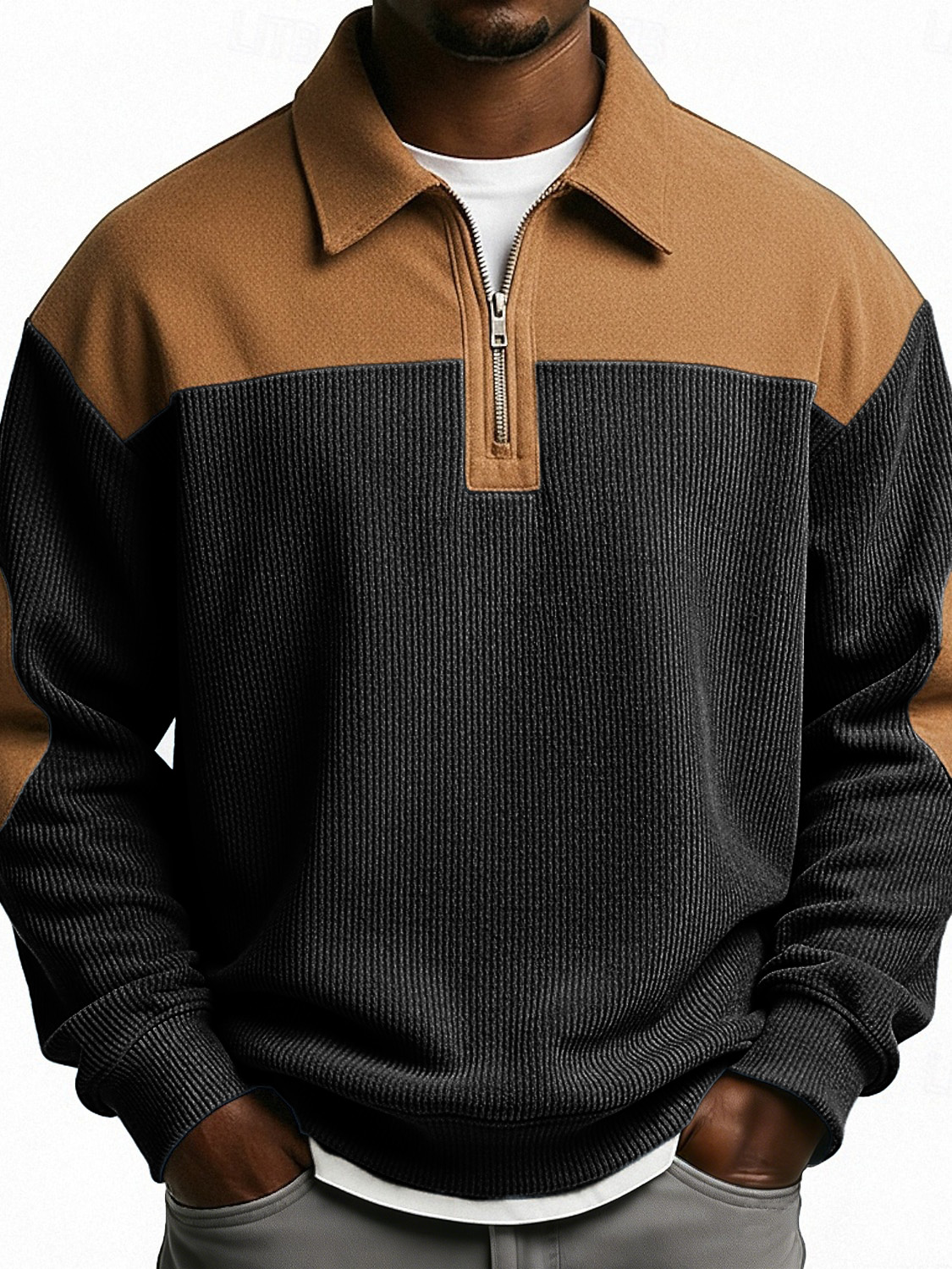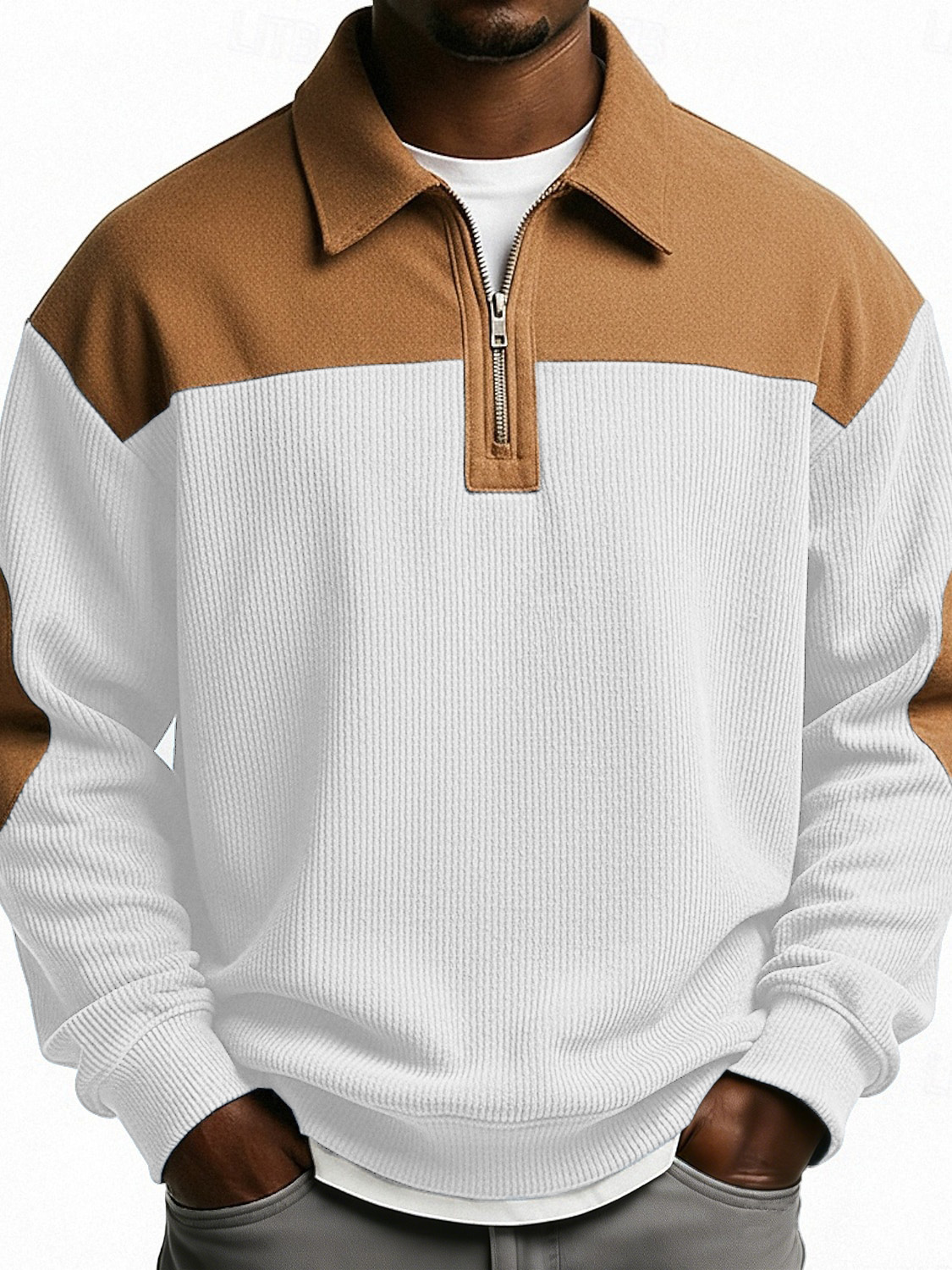 Men's Fashionable Casual Corduroy Patchwork Collared Long-Sleeved Top