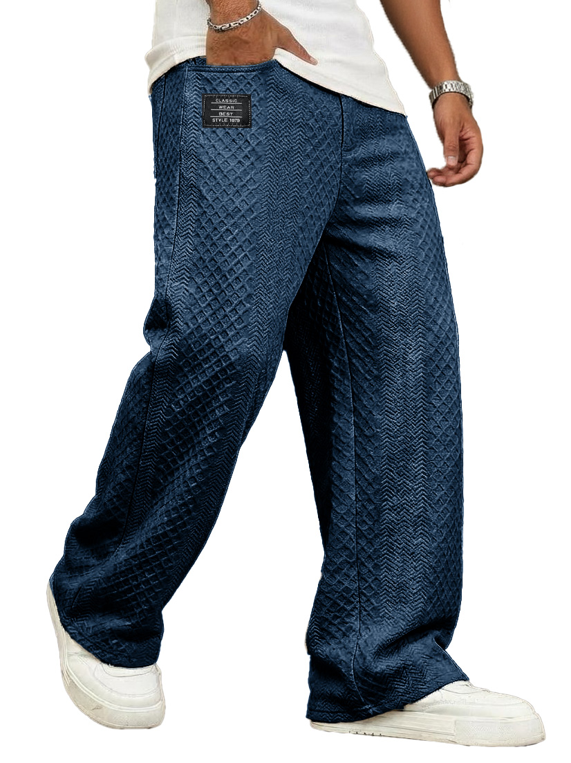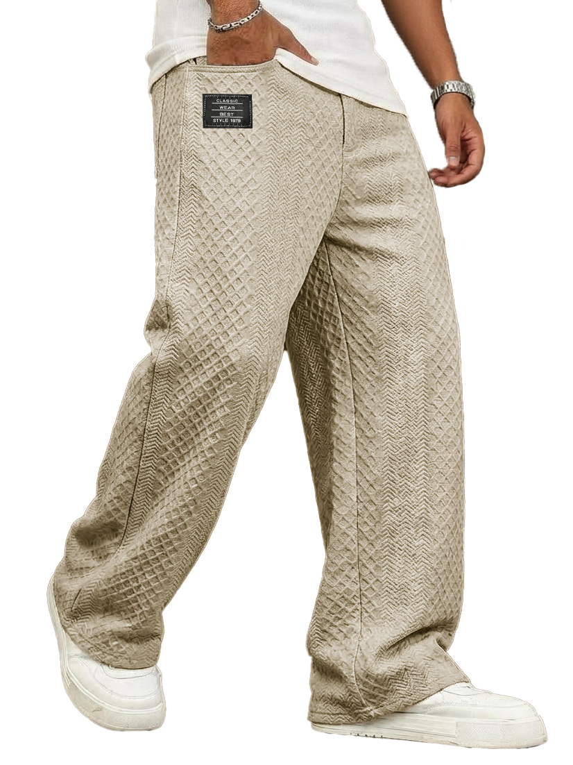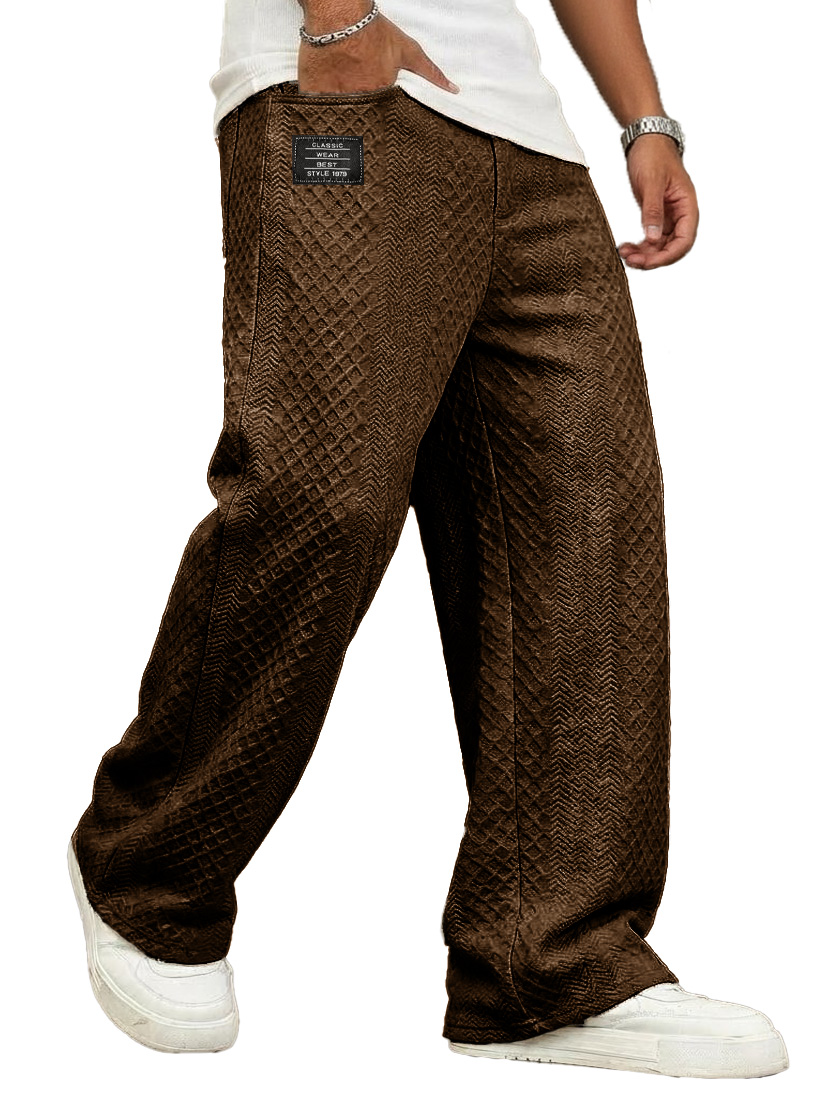 Men's Fashionable Casual Jacquard Fabric Loose Pocket Trousers