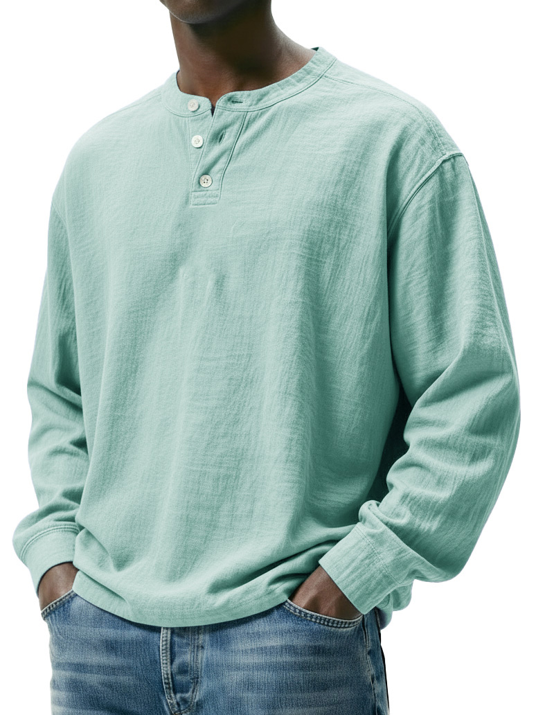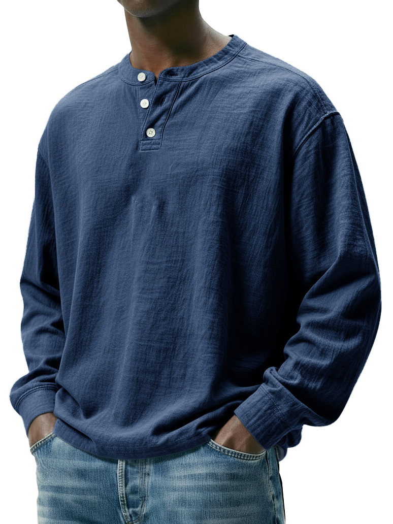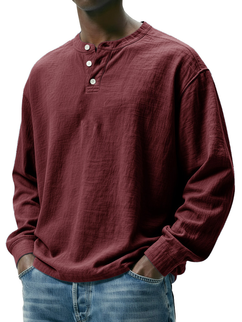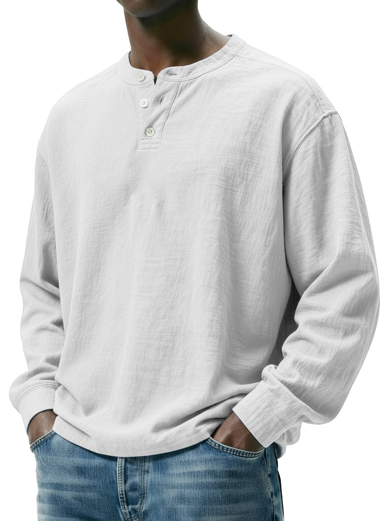 Men's Fashionable Casual Linen Fabric Long-sleeved Henley Shirt
