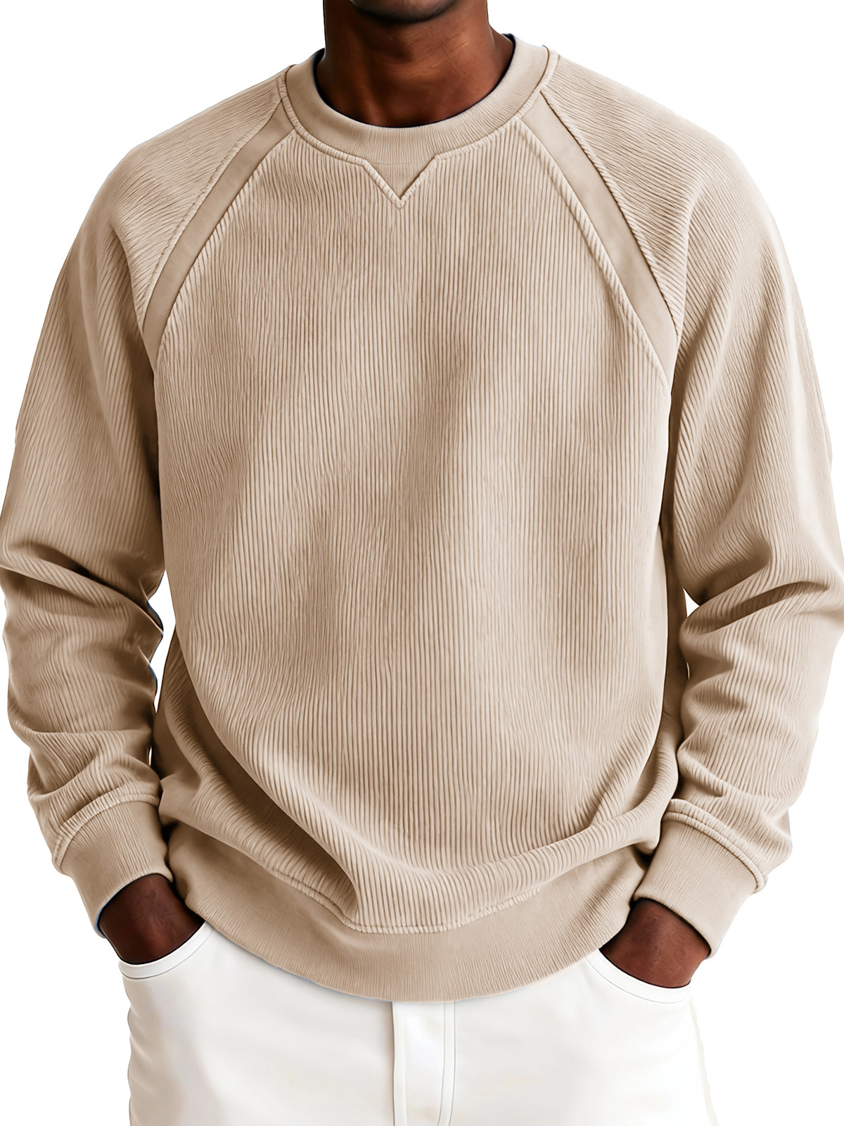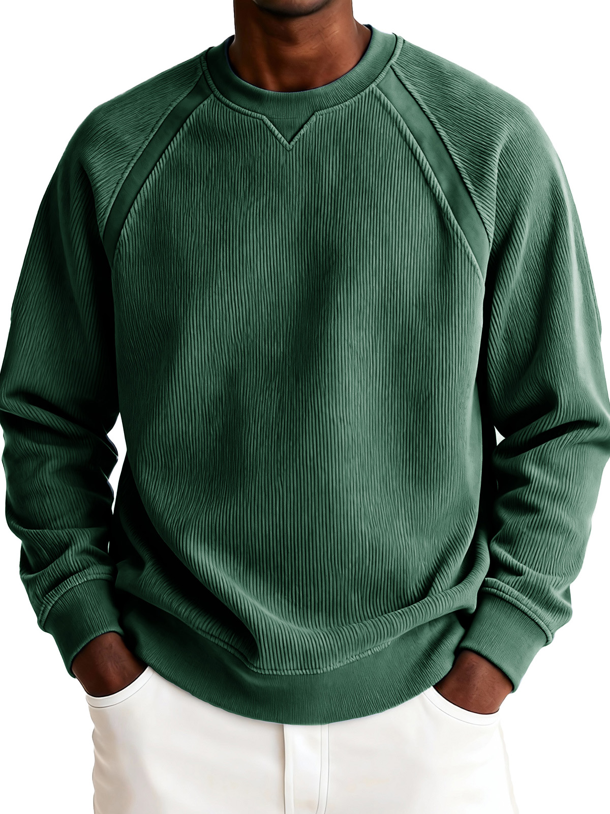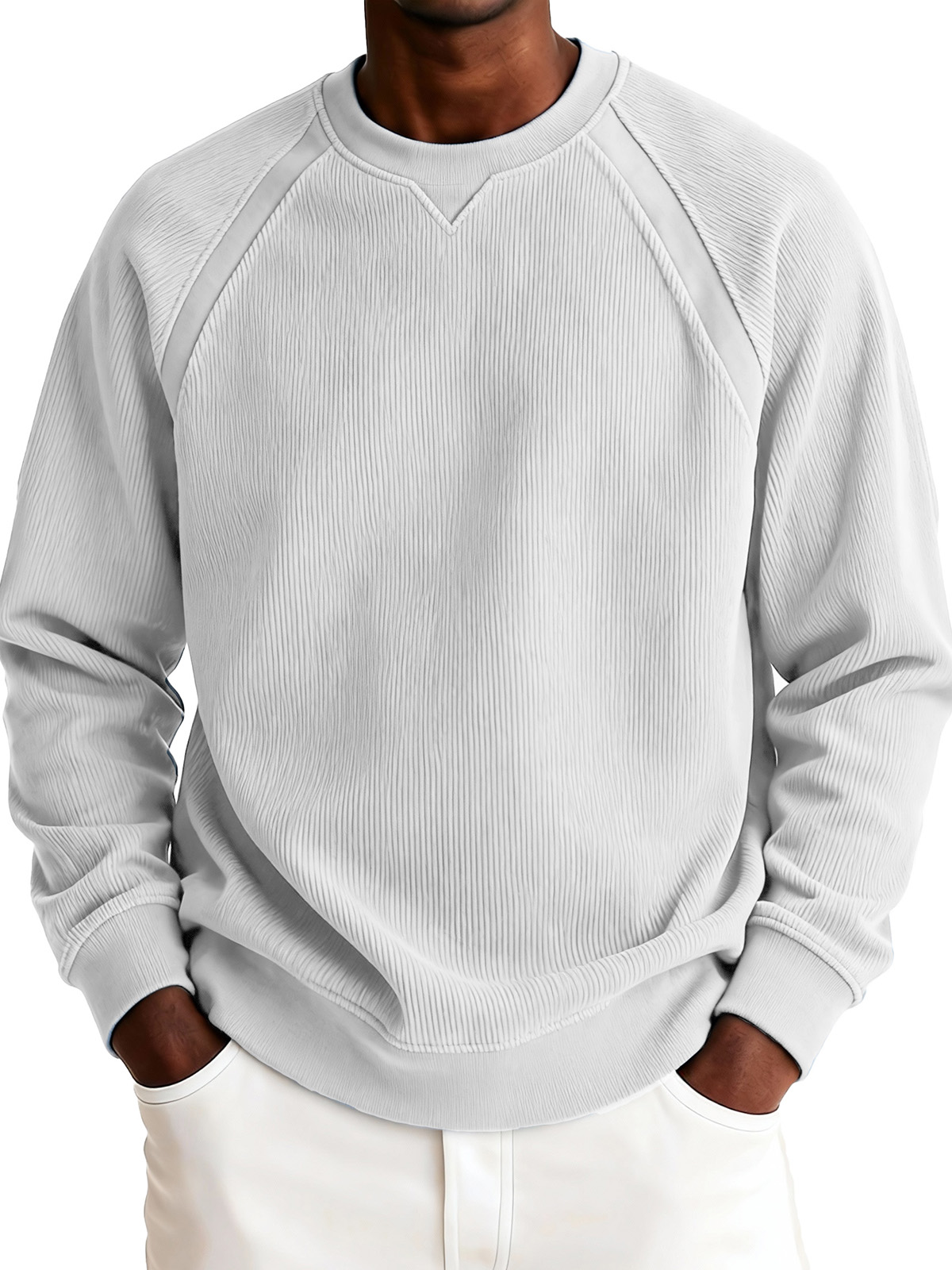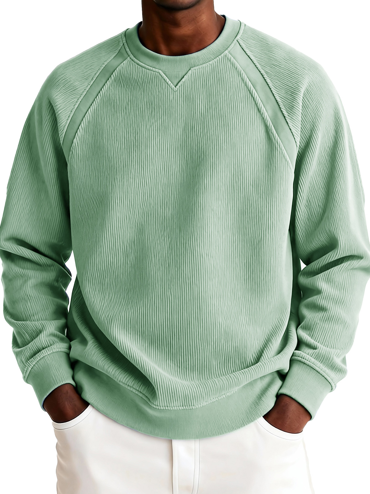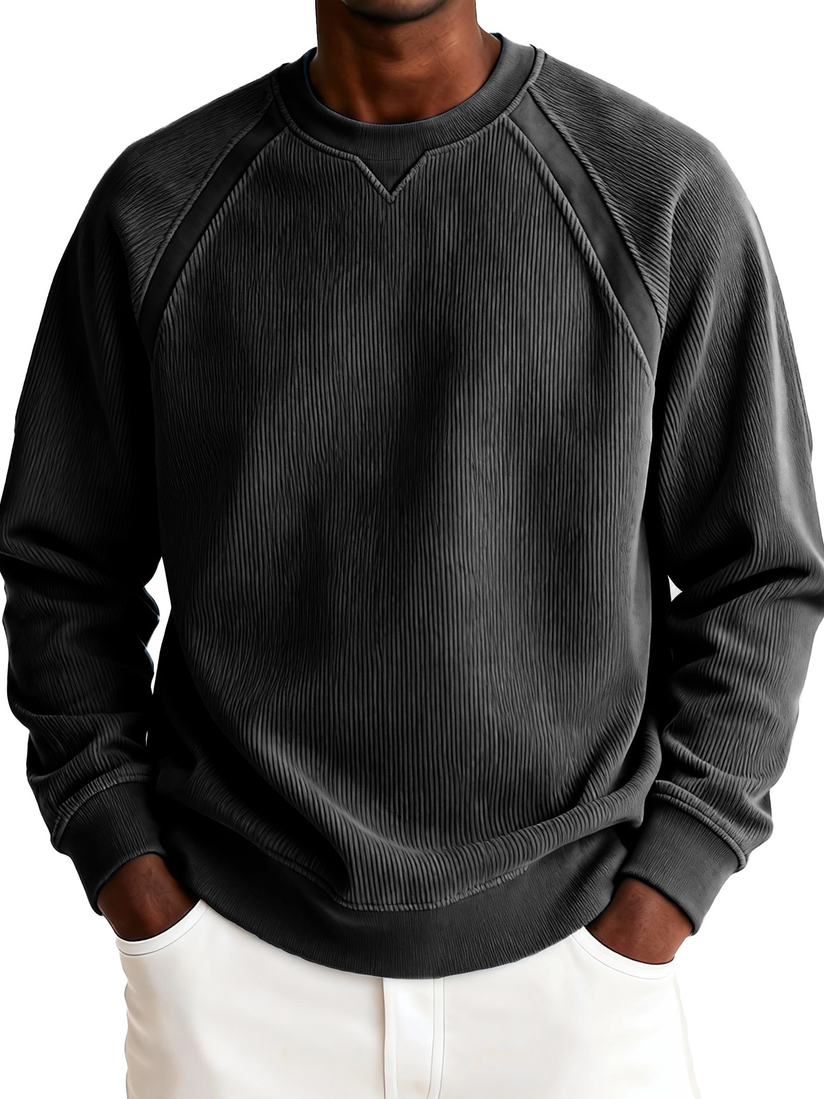 Men's Fashionable Casual Ribbed Corduroy Crew Neck Long-sleeved Top