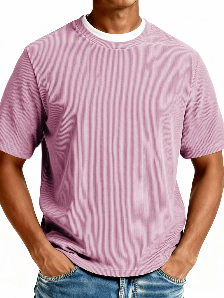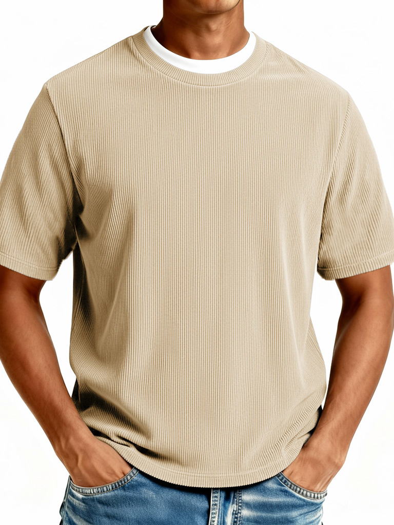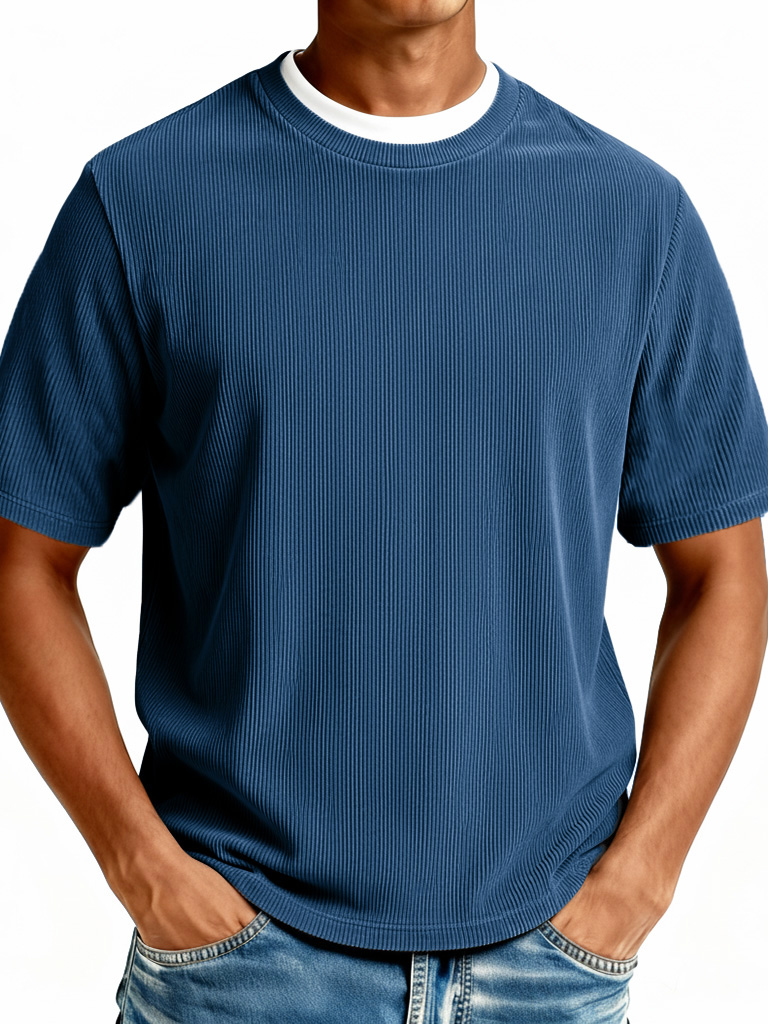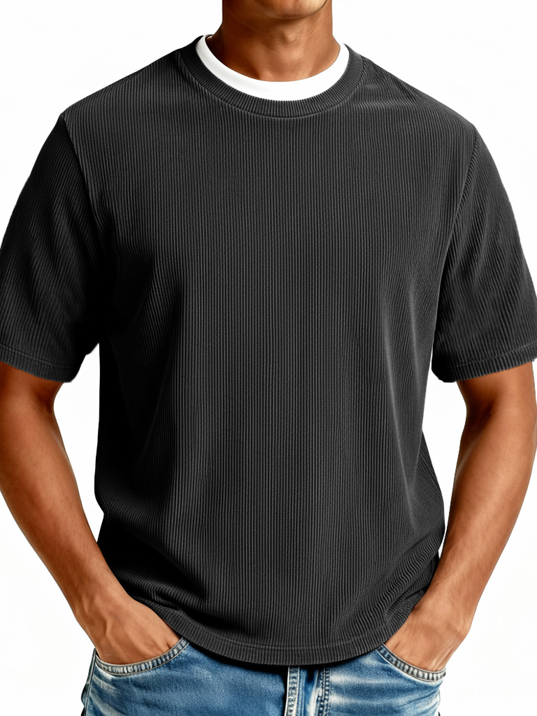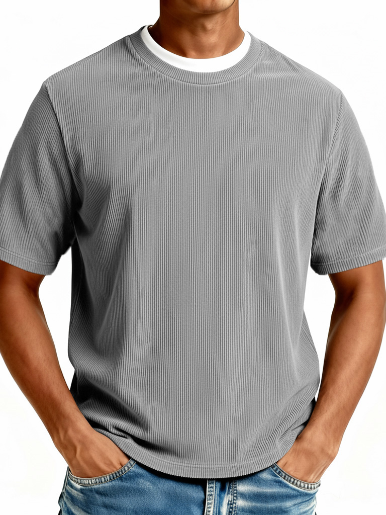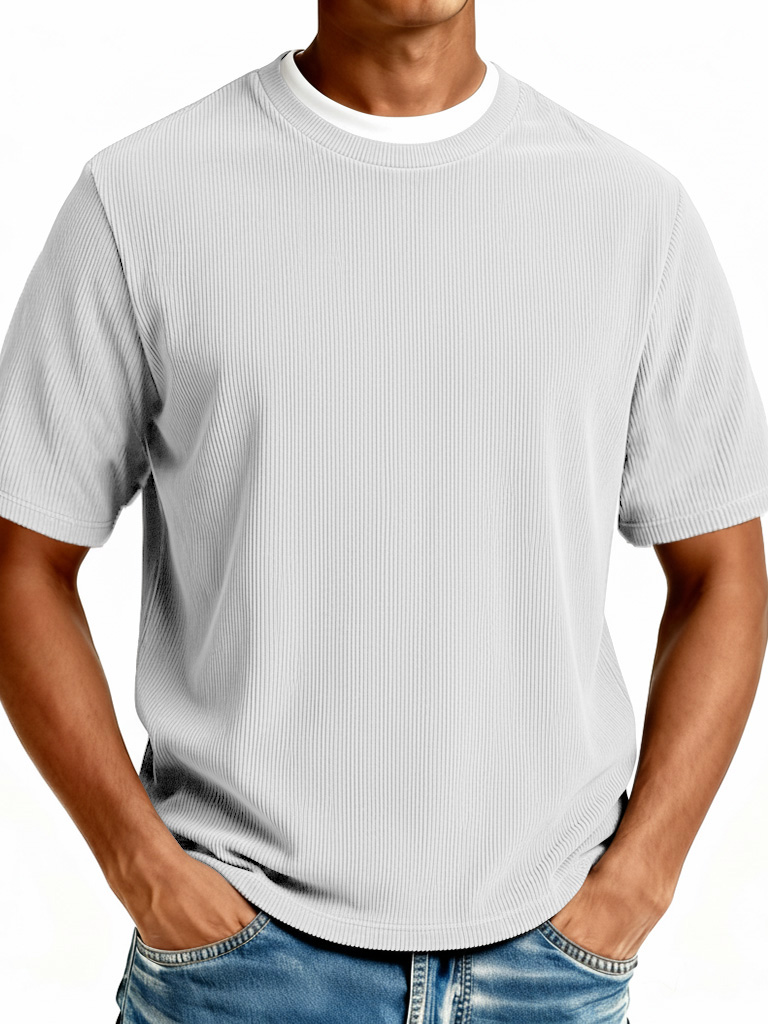Men's Fashionable Casual Ribbed Fabric Faux Two-Piece Short-Sleeve Crew Neck T-Shirt