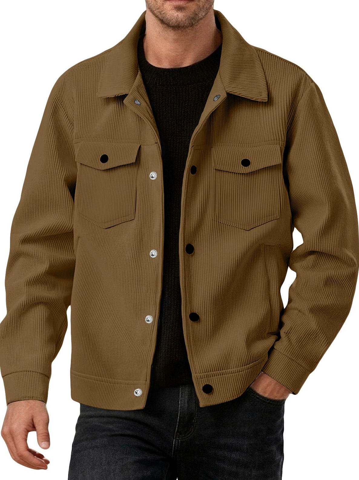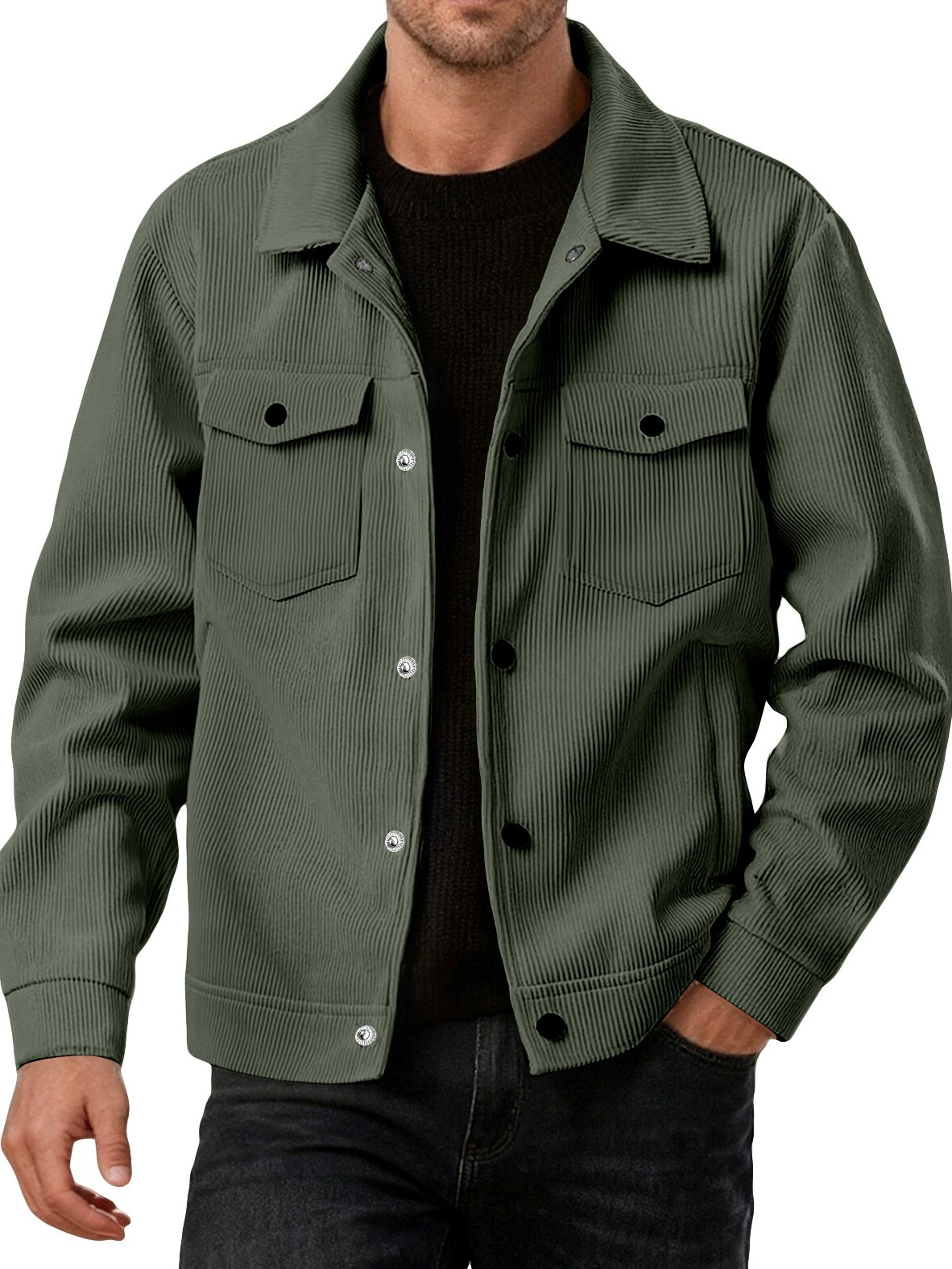 Men's Fashionable Casual Ribbed Fabric Long-Sleeved Pocket Jacket