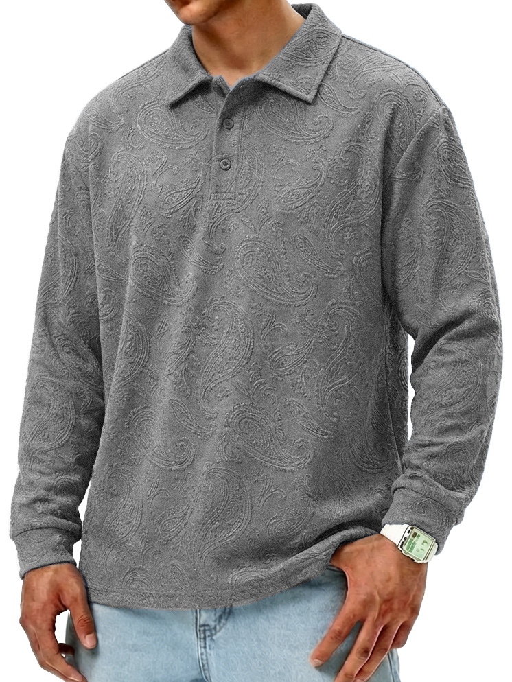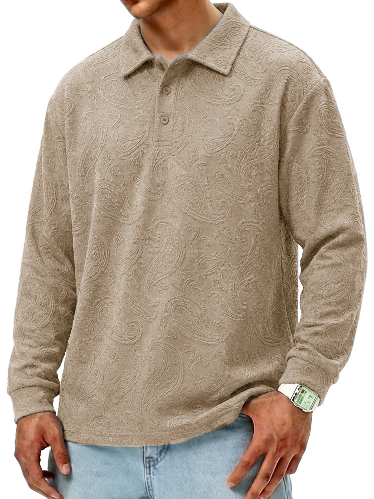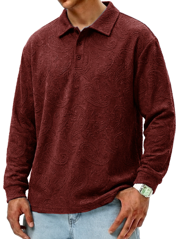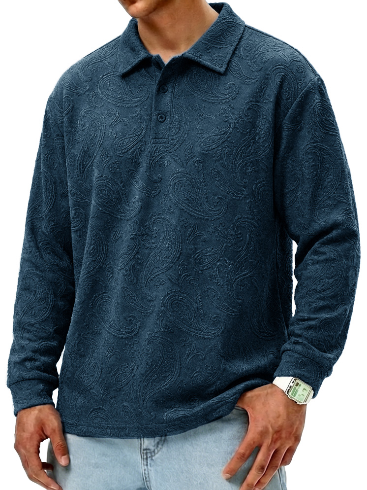 Men's Fashionable Retro Paisley Fabric Loose-Fit Collar Polo Shirt
