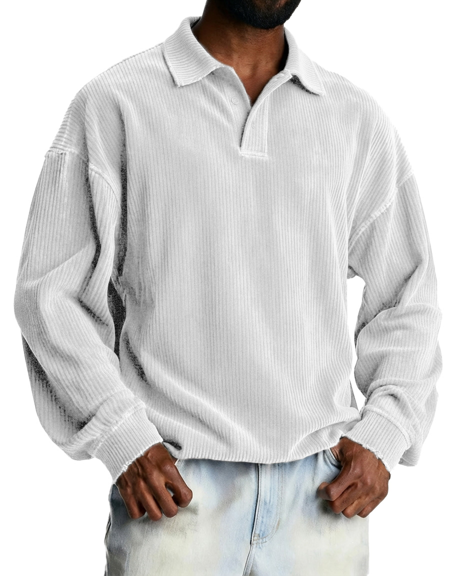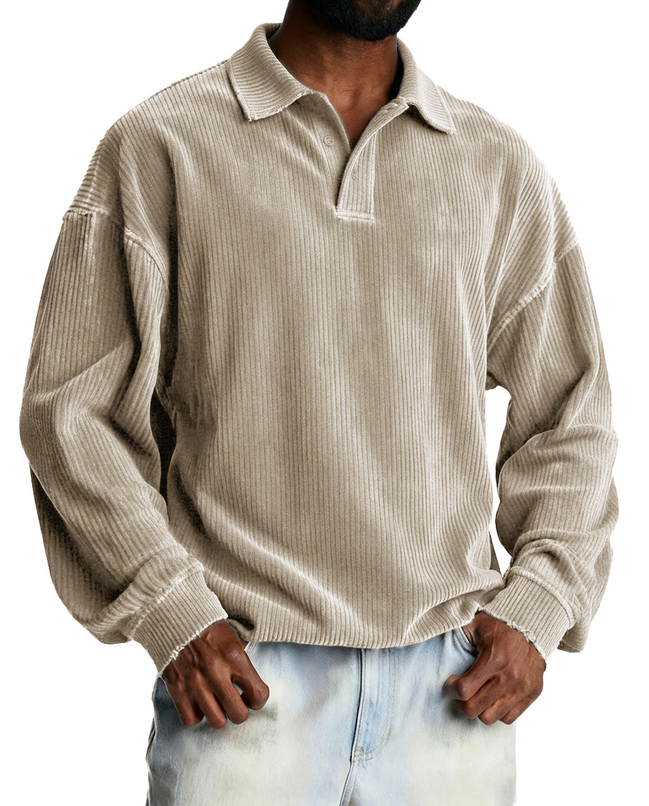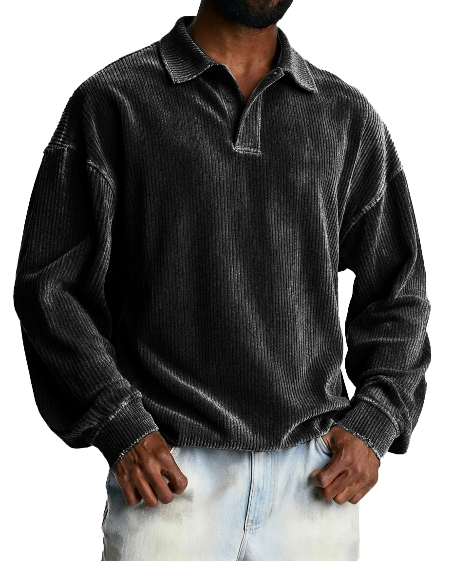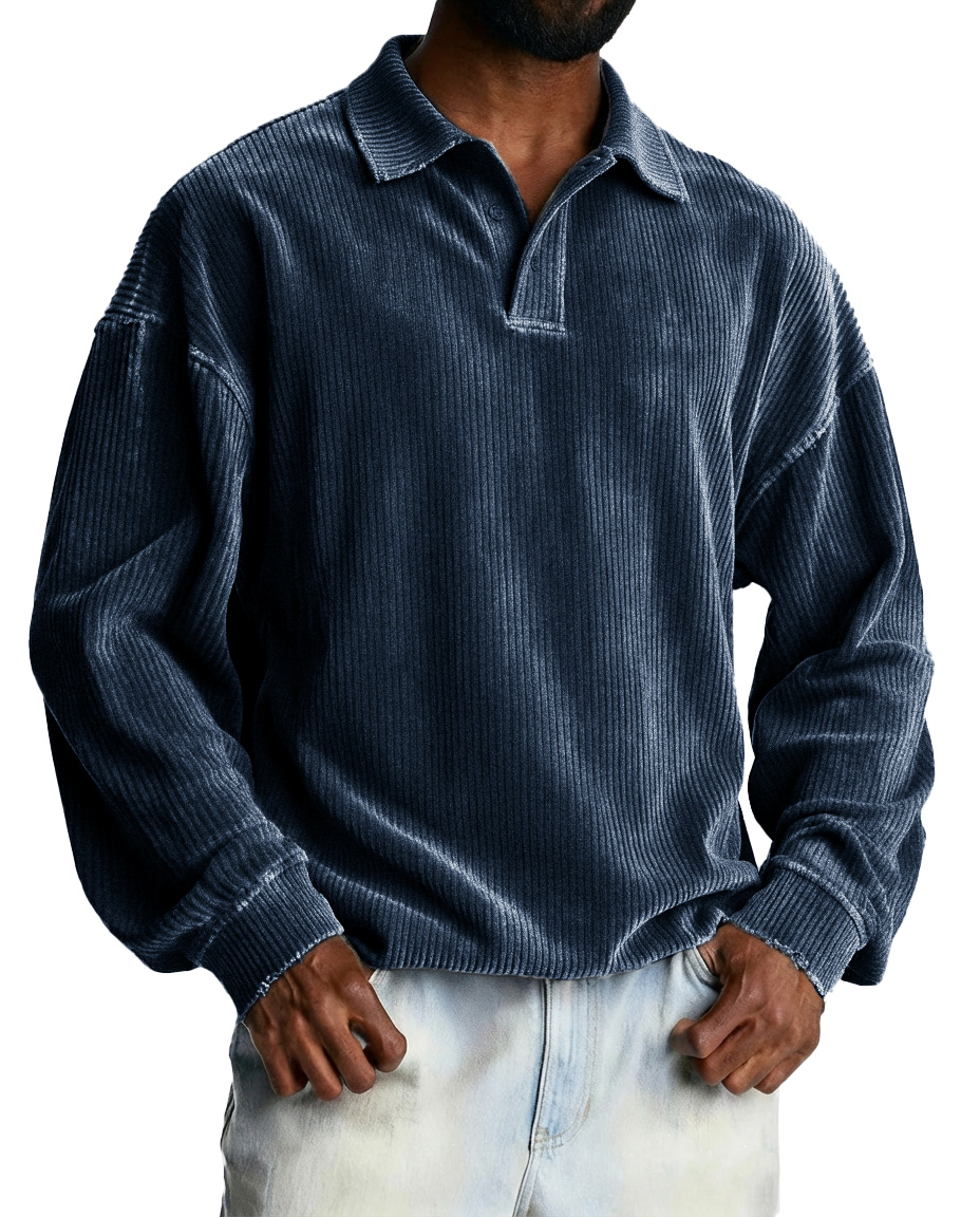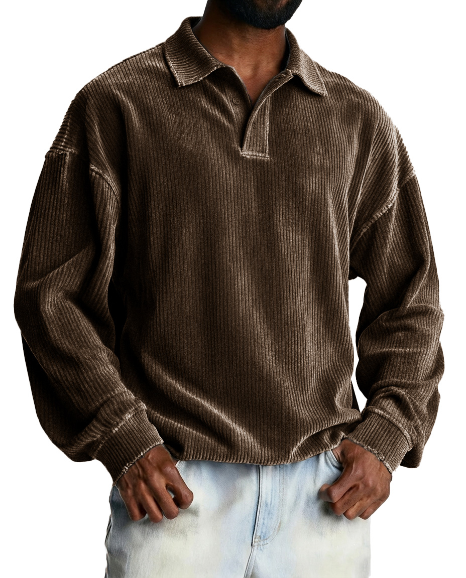 Men's Fashionable Retro Striped Fabric Loose-Fit Collar Polo Shirt
