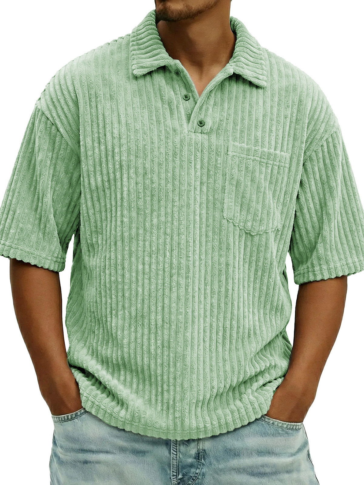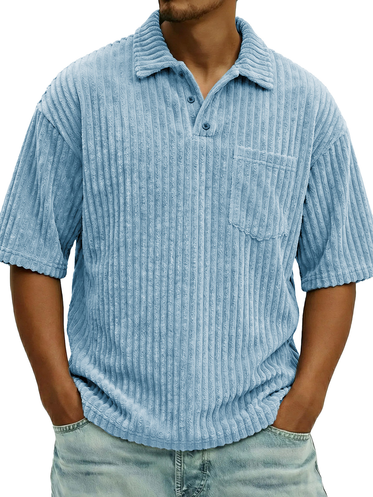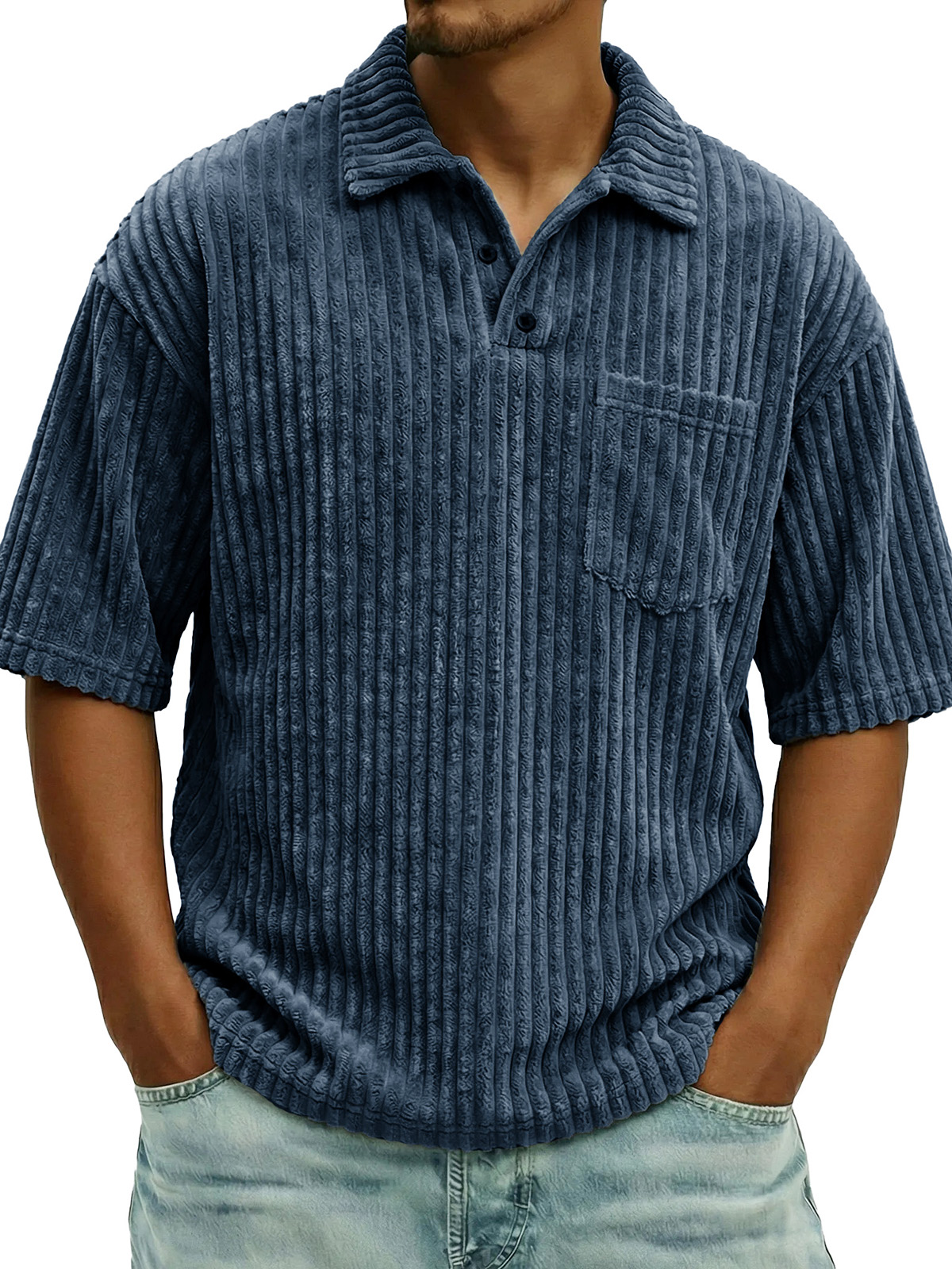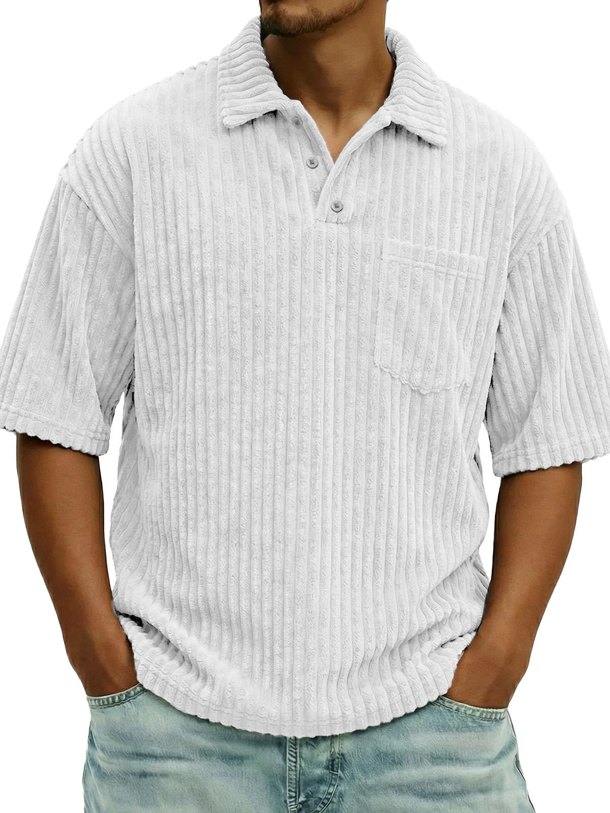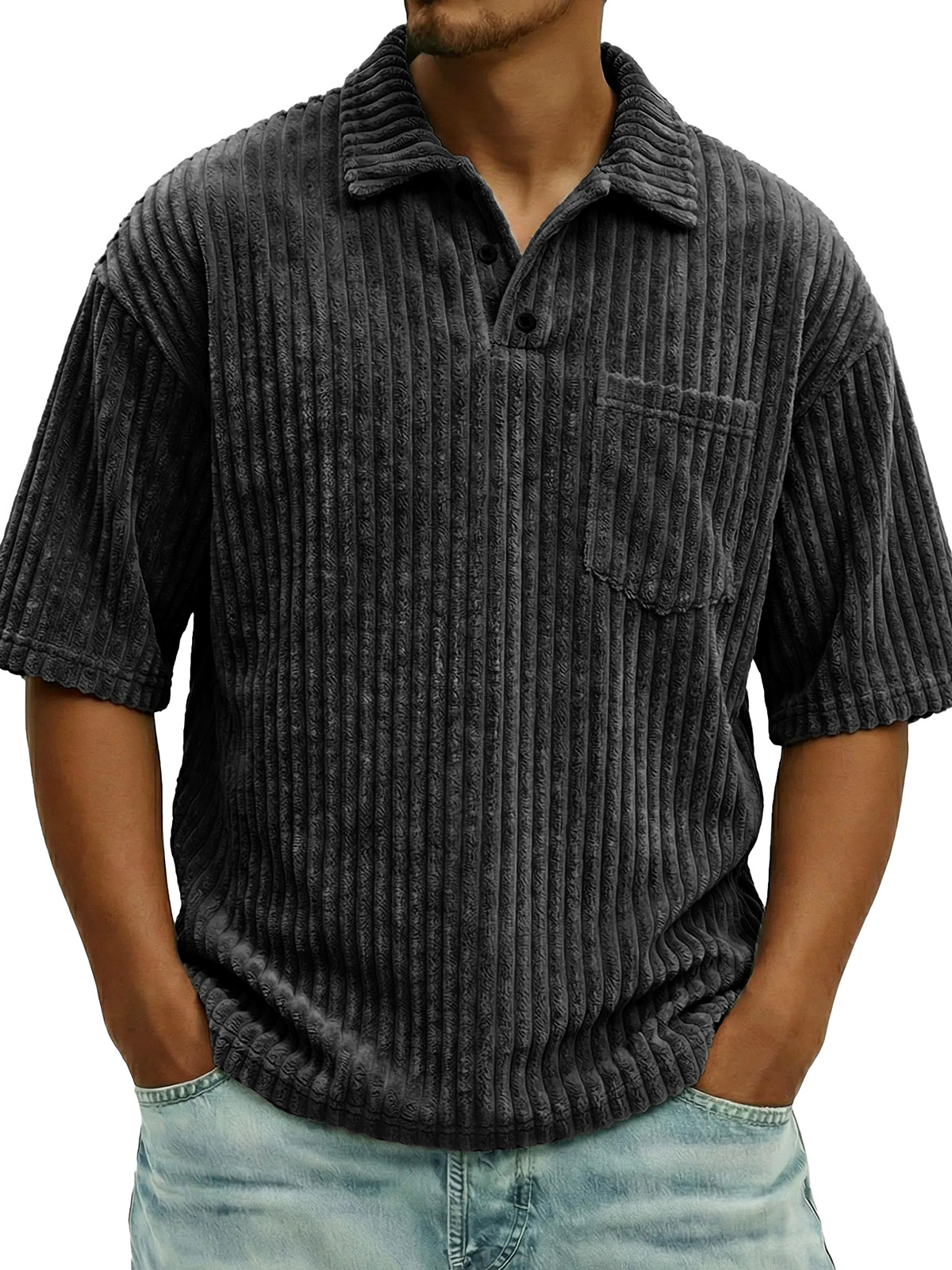Men's Fashionable Ribbed Pocket Collar Short-Sleeve Polo Shirt