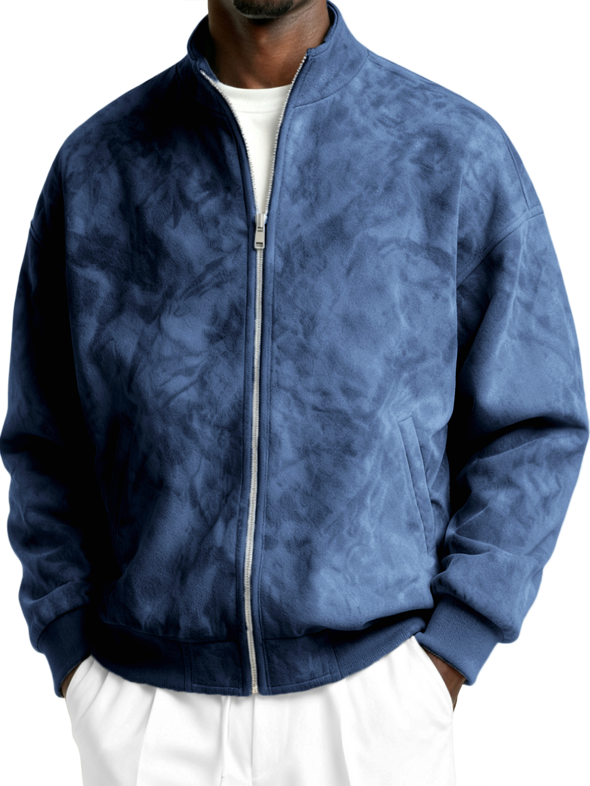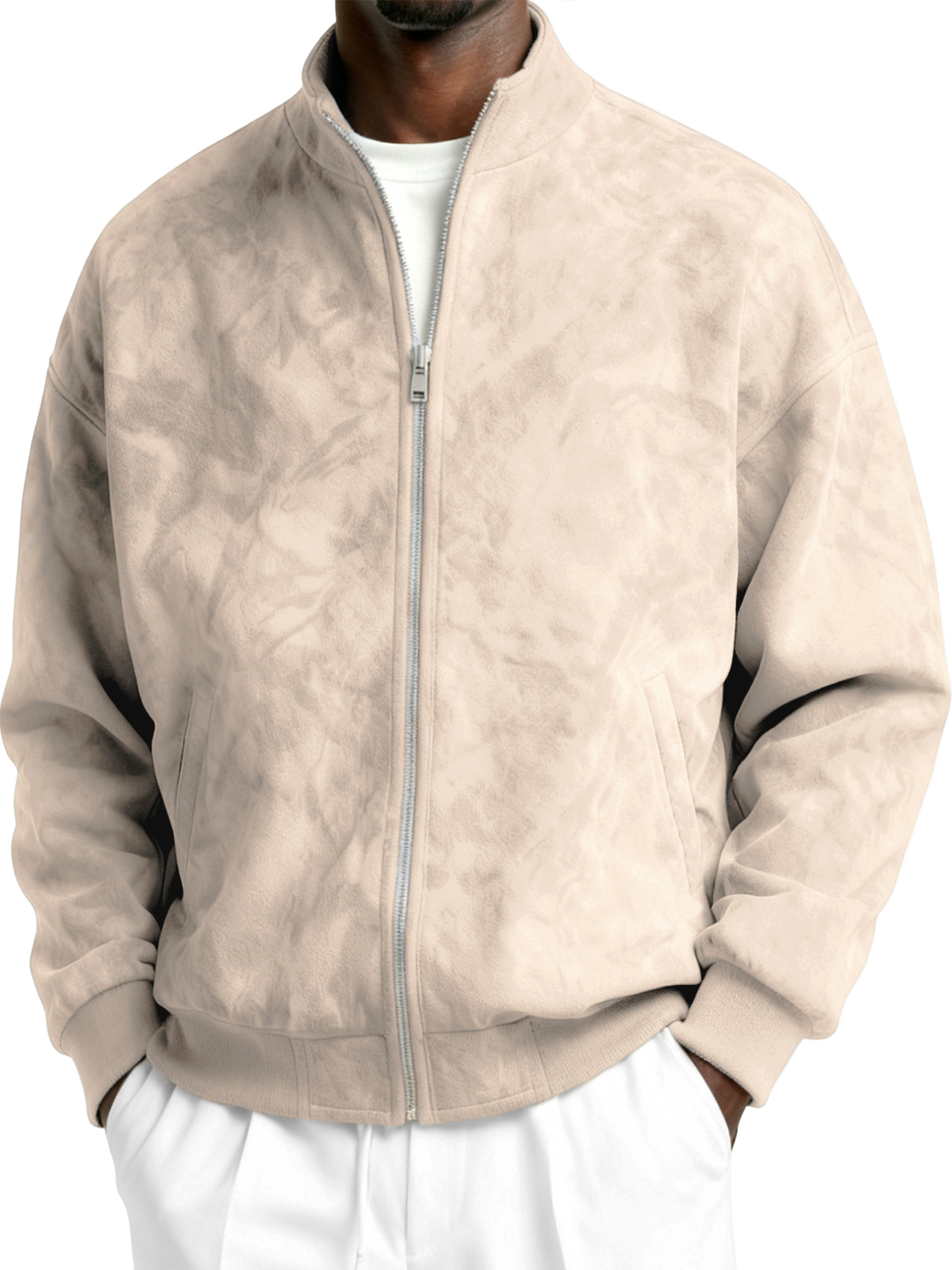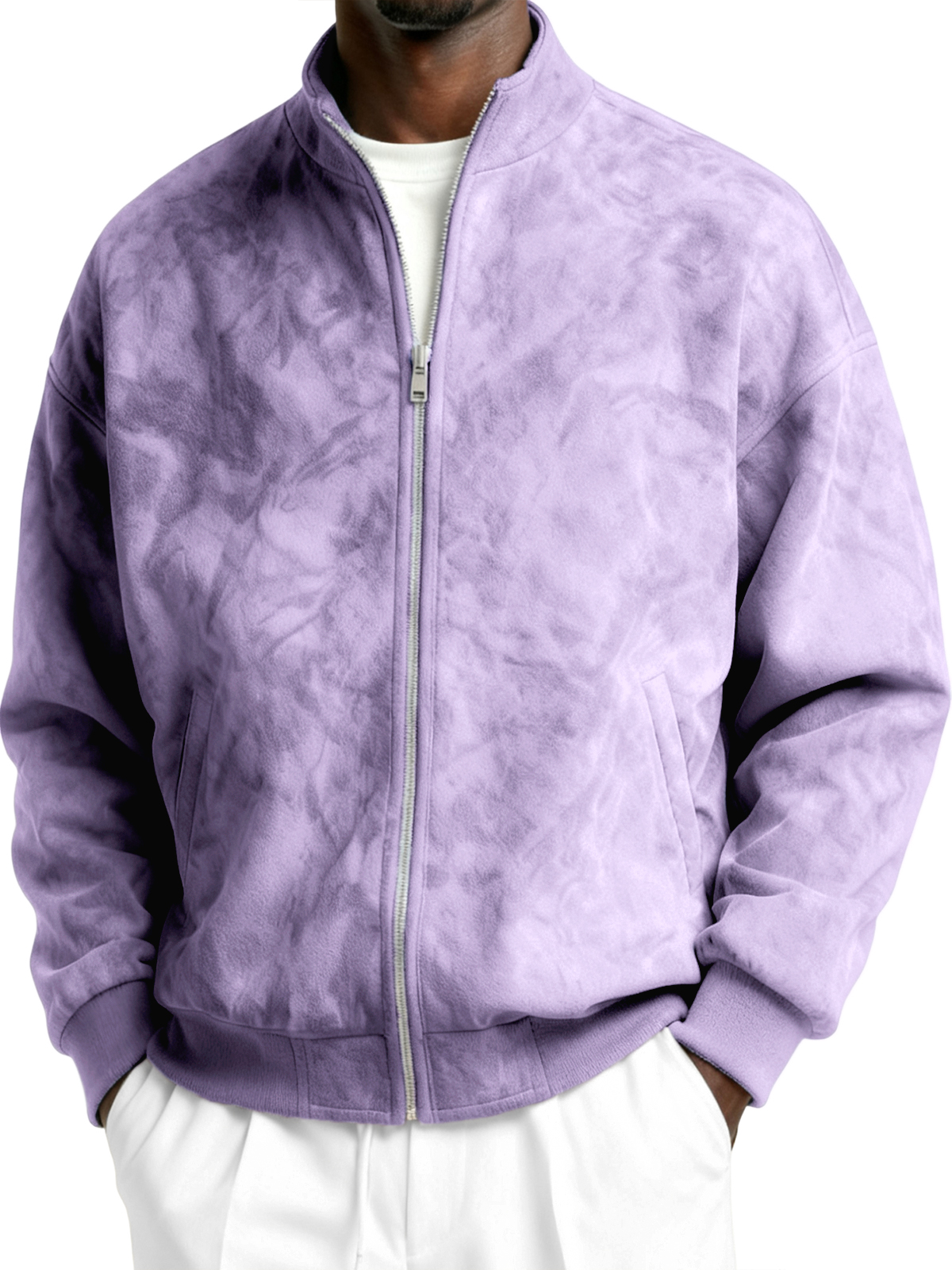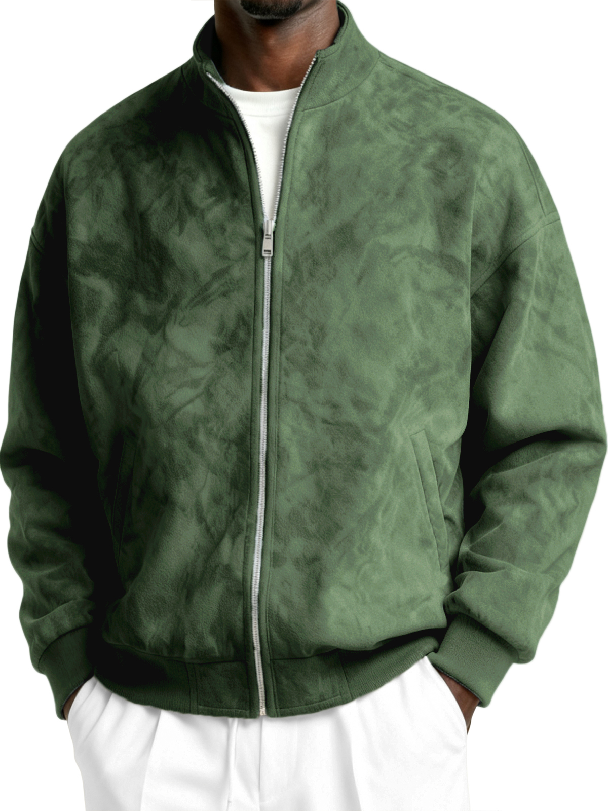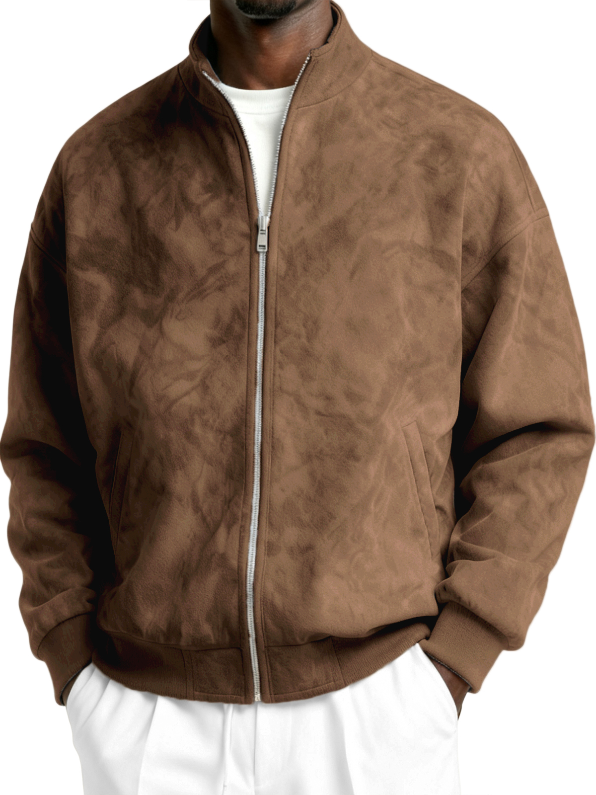 Men's Faxu Suede Textured Comfort Zip-Up Jacket