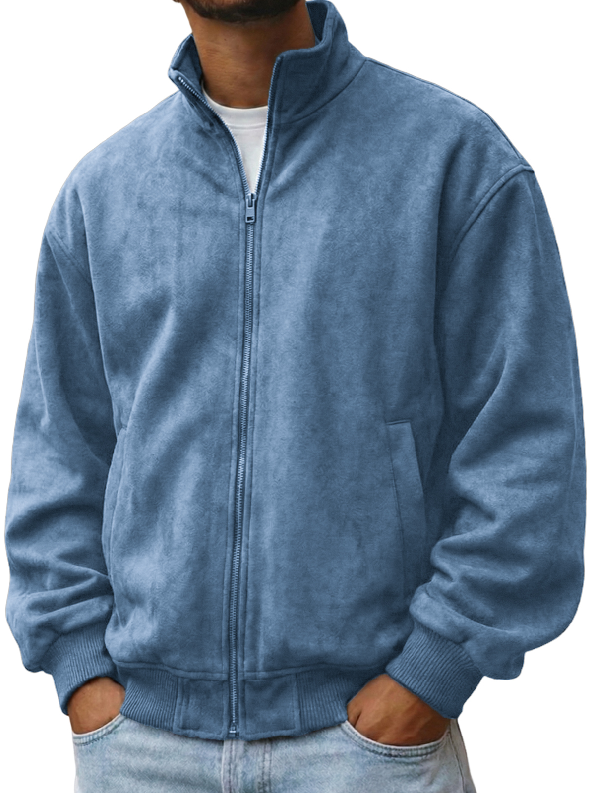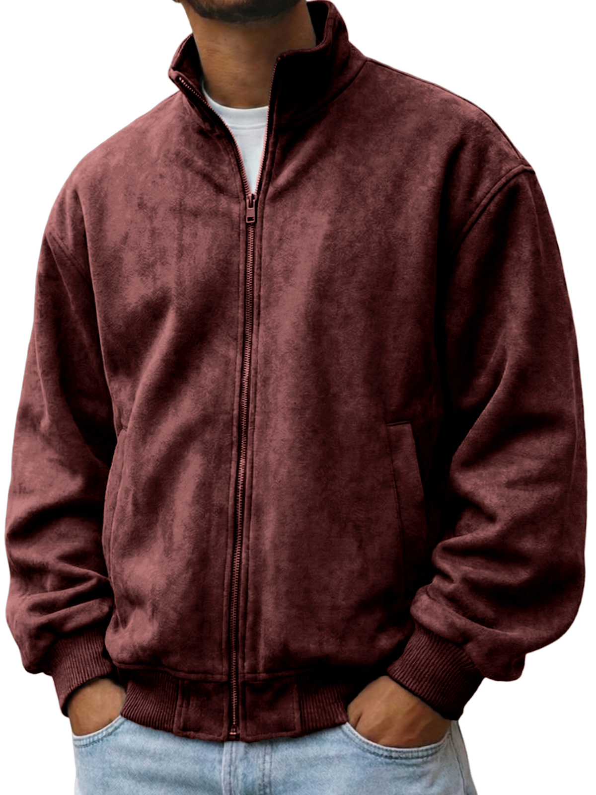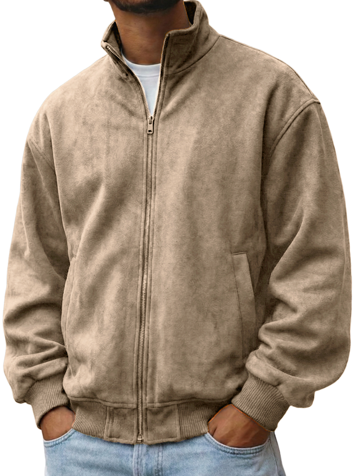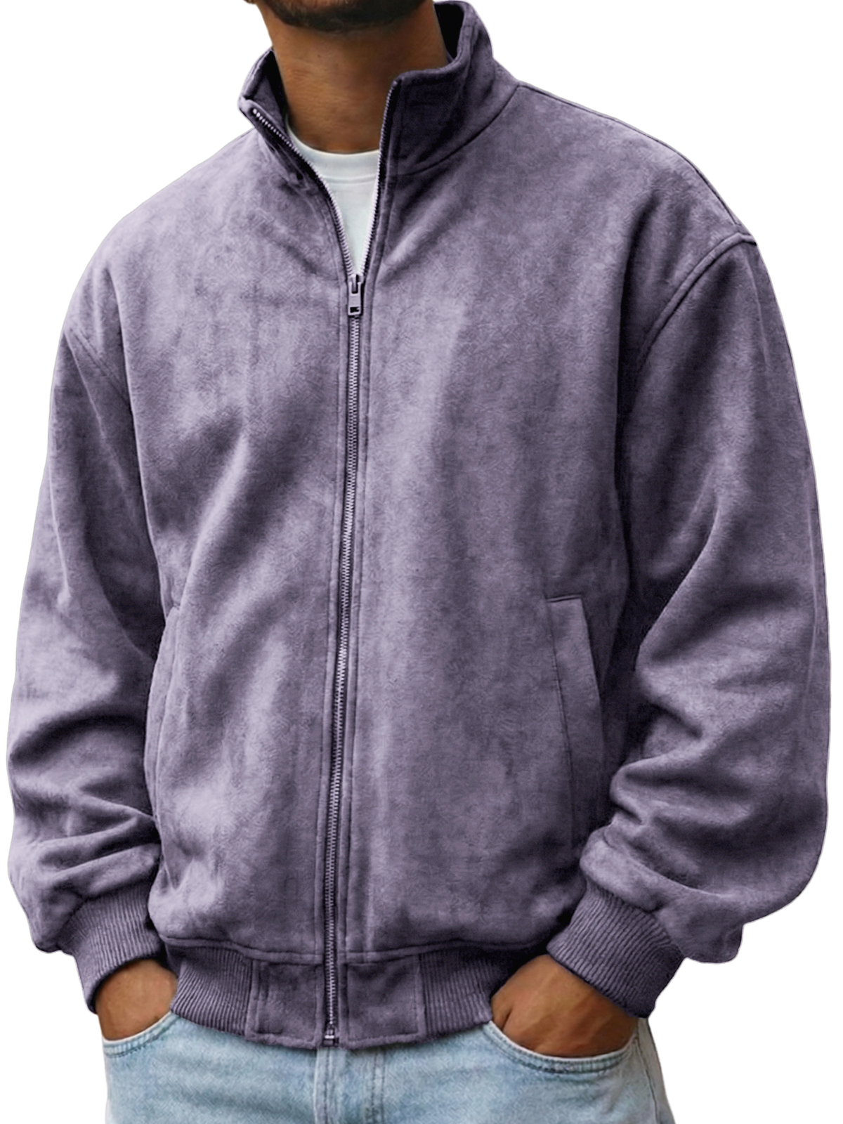 Men's Faxu Suede Textured Comfort Zip-Up Jacket