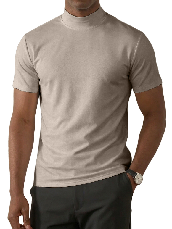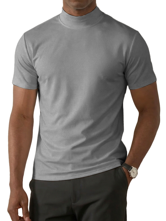 Men's High-Neck Slim Fit Casual Short-Sleeve T-Shirt