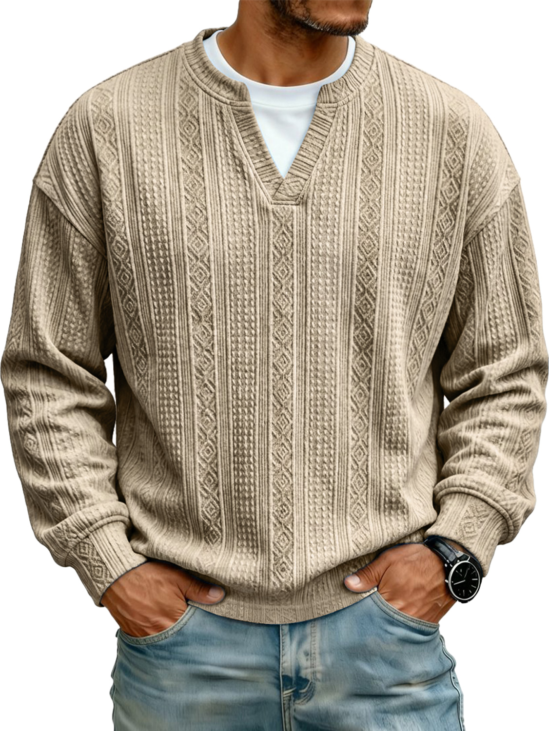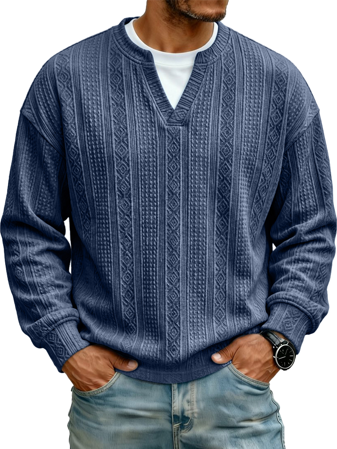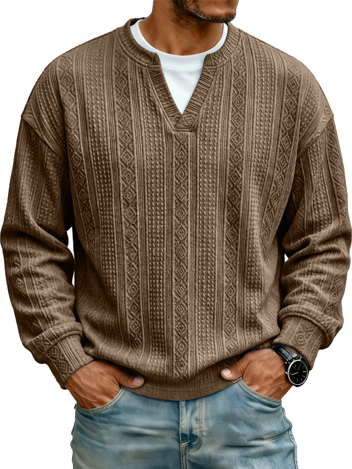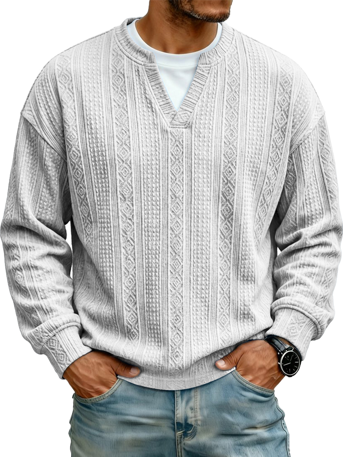 Men's Jacquard Faux Two-piece Casual Long-sleeved T-shi