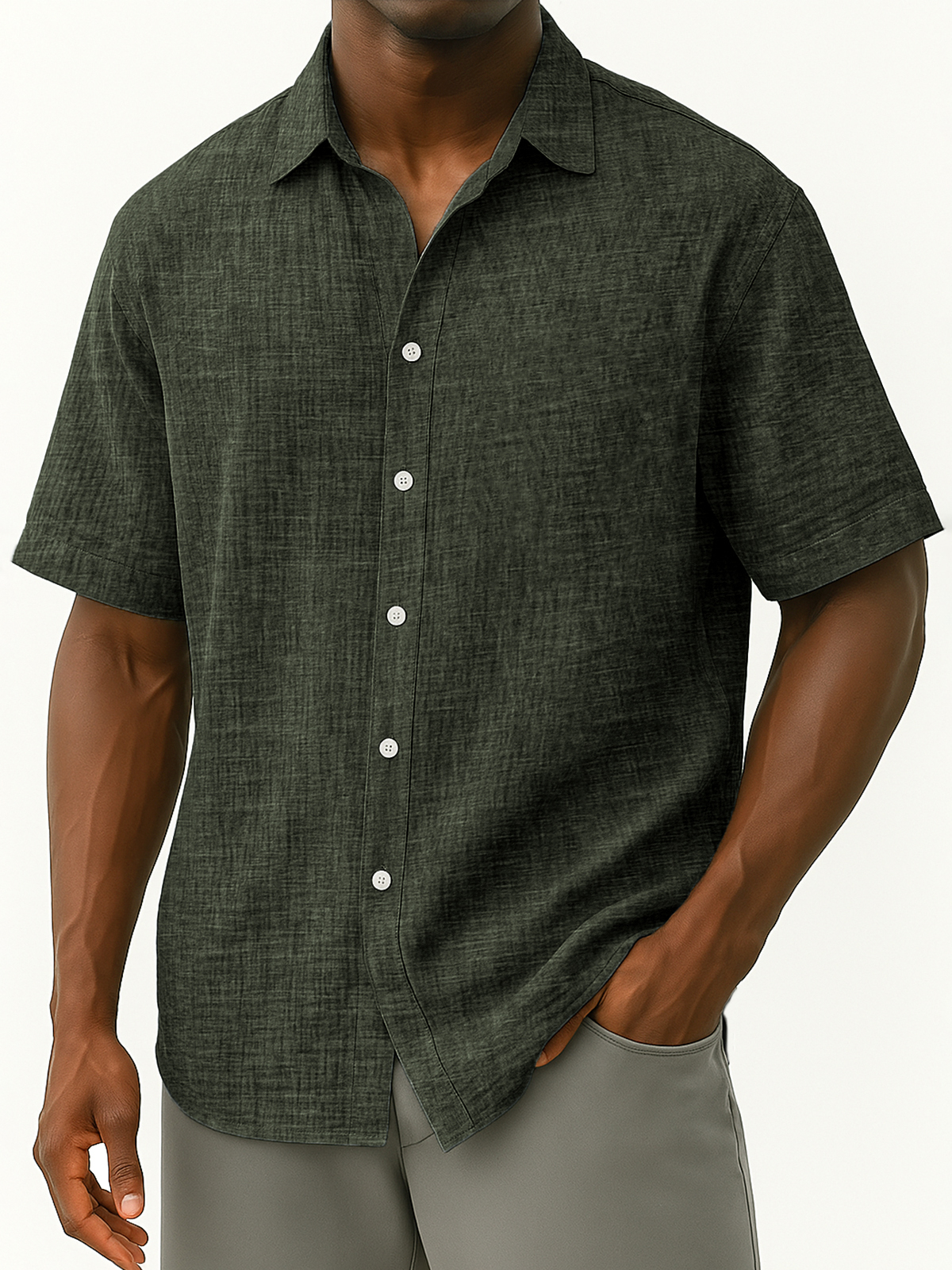 Men's Linen Breathable Loose Casual Daily Loose Button-down Short-sleeved Shirt