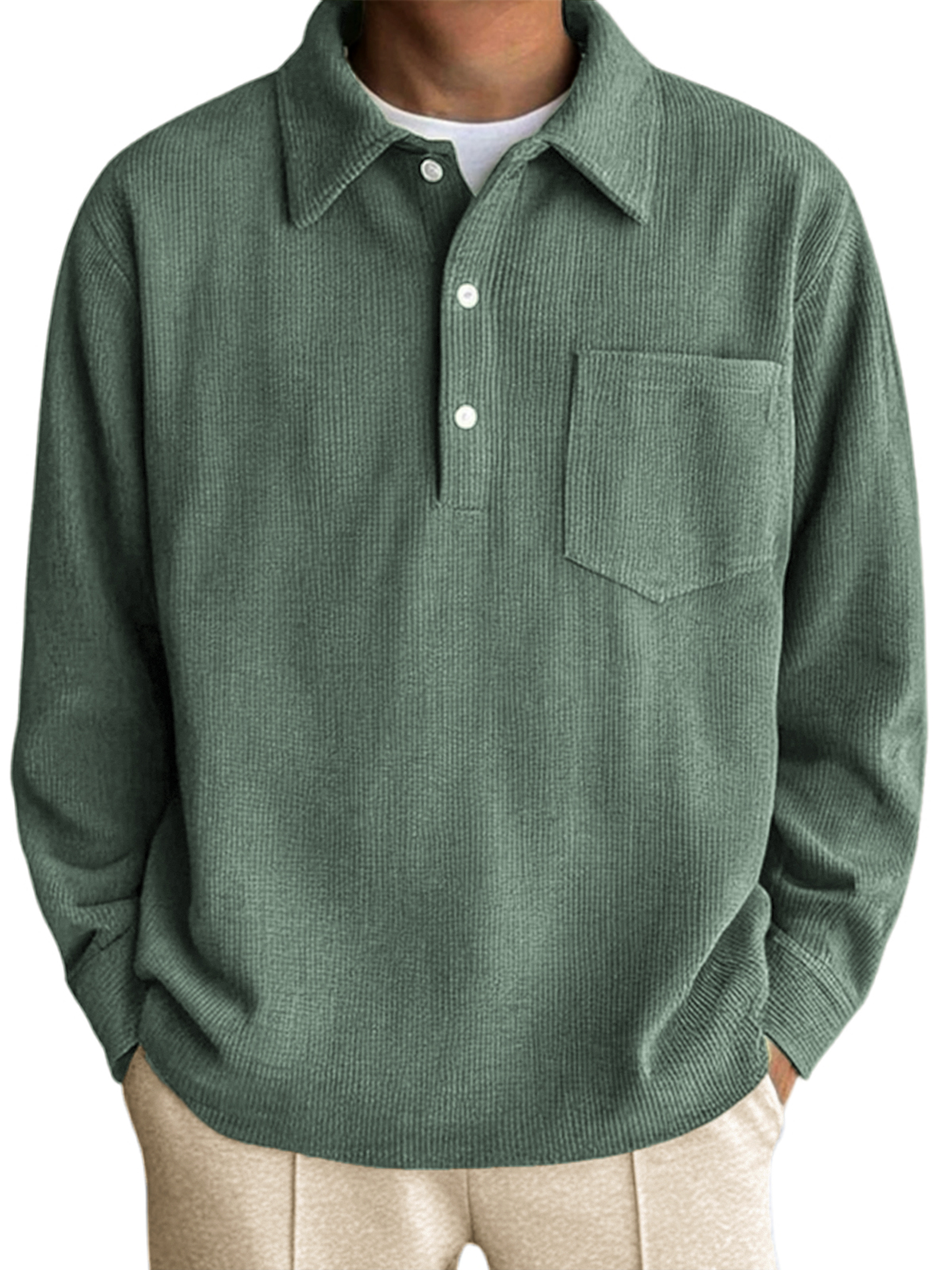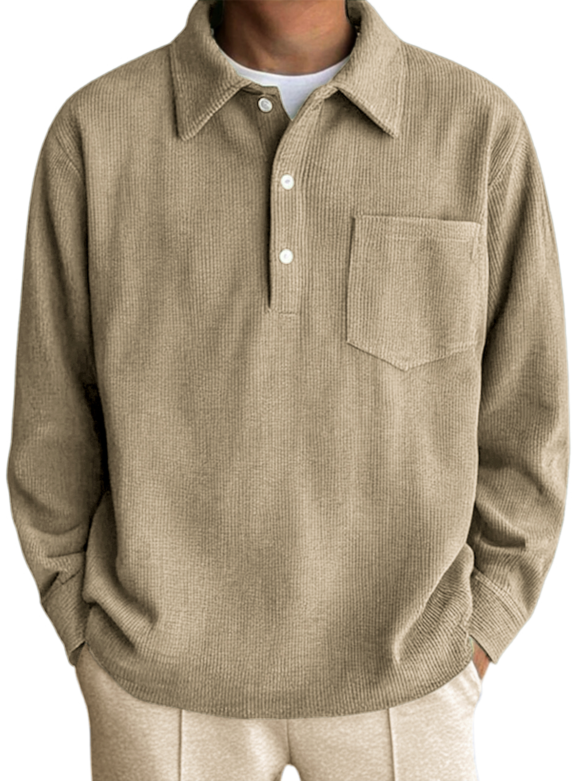 Men's Long Sleeve Pocket Polo Shirt with Vertical Stripes