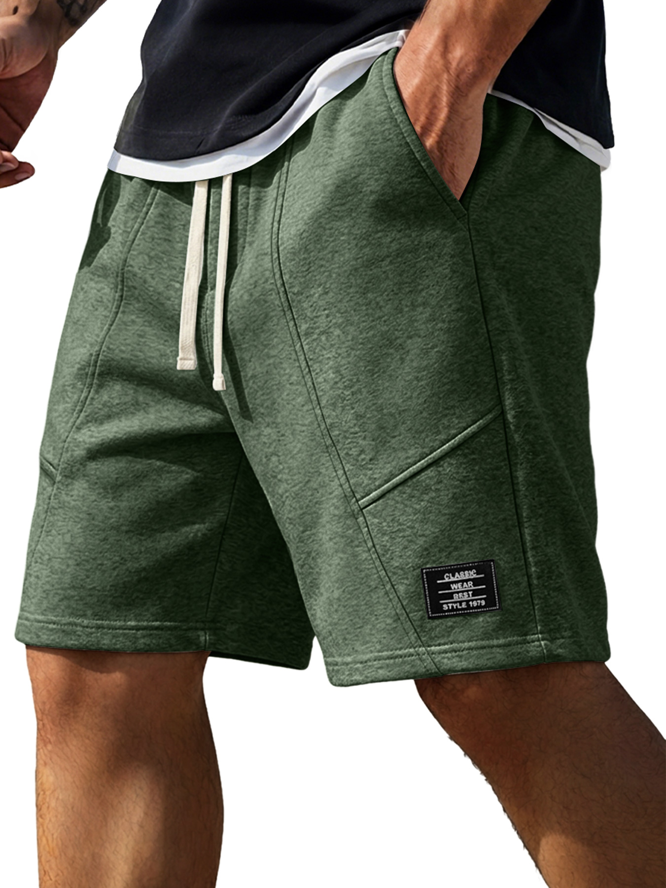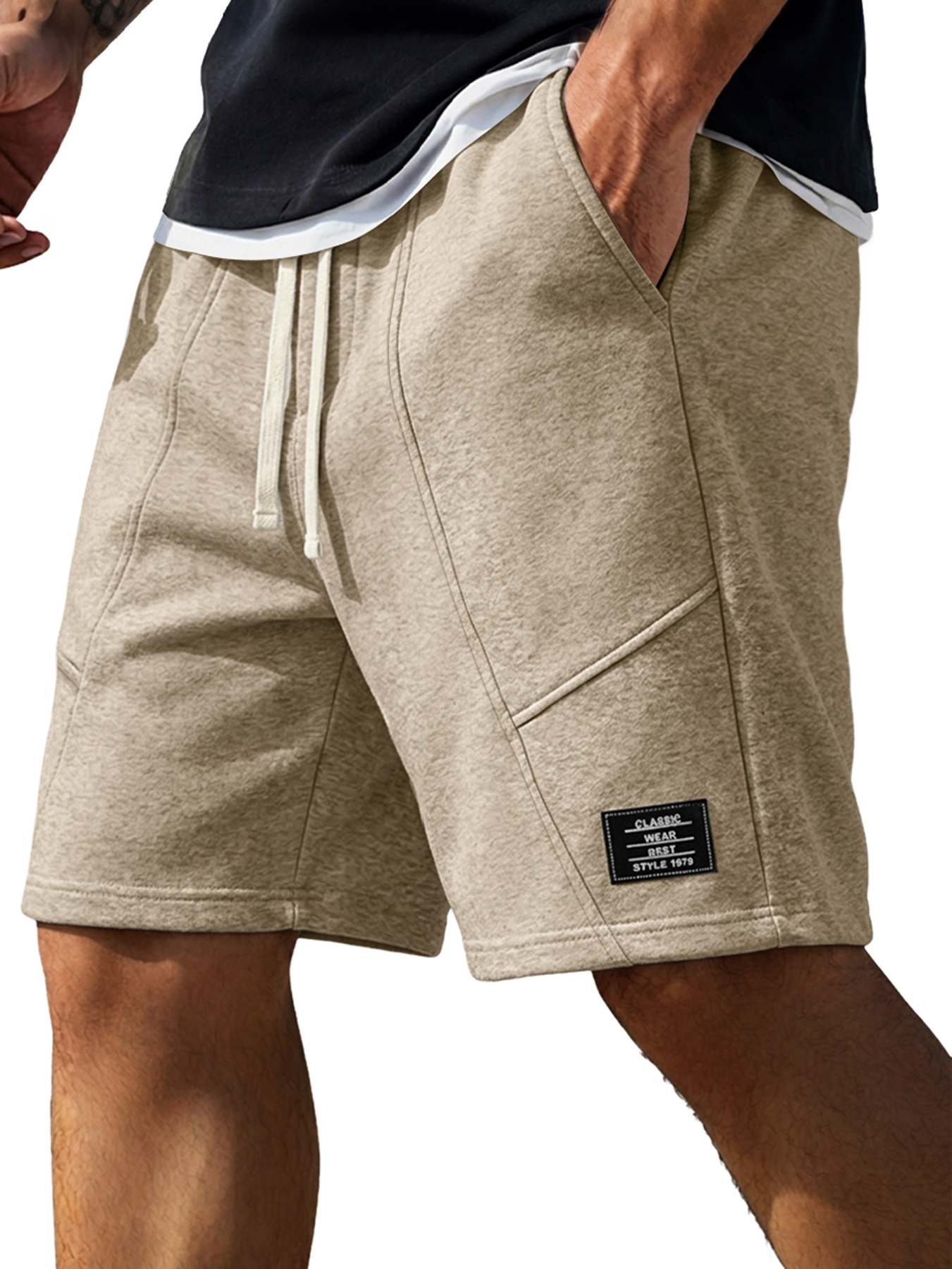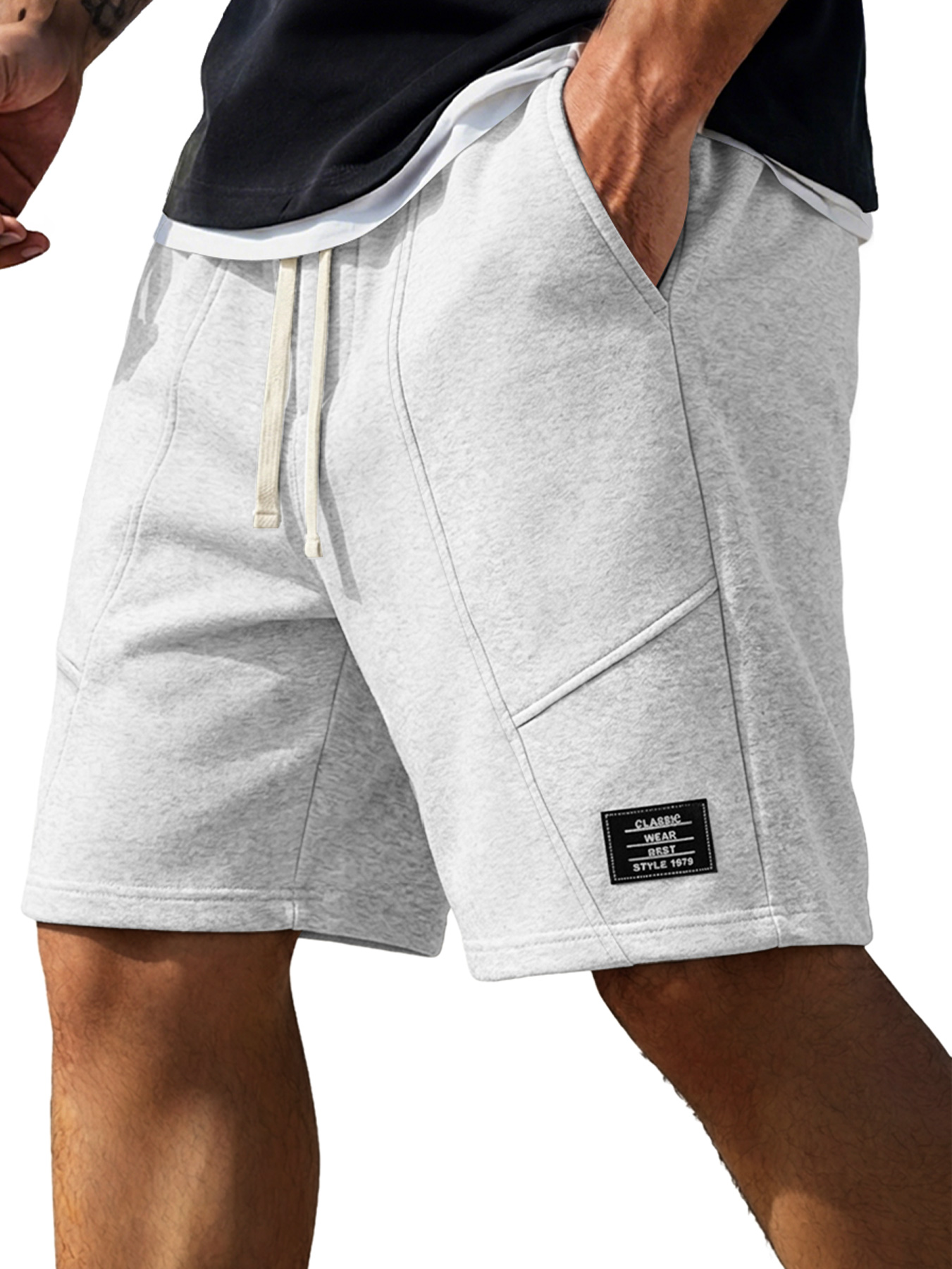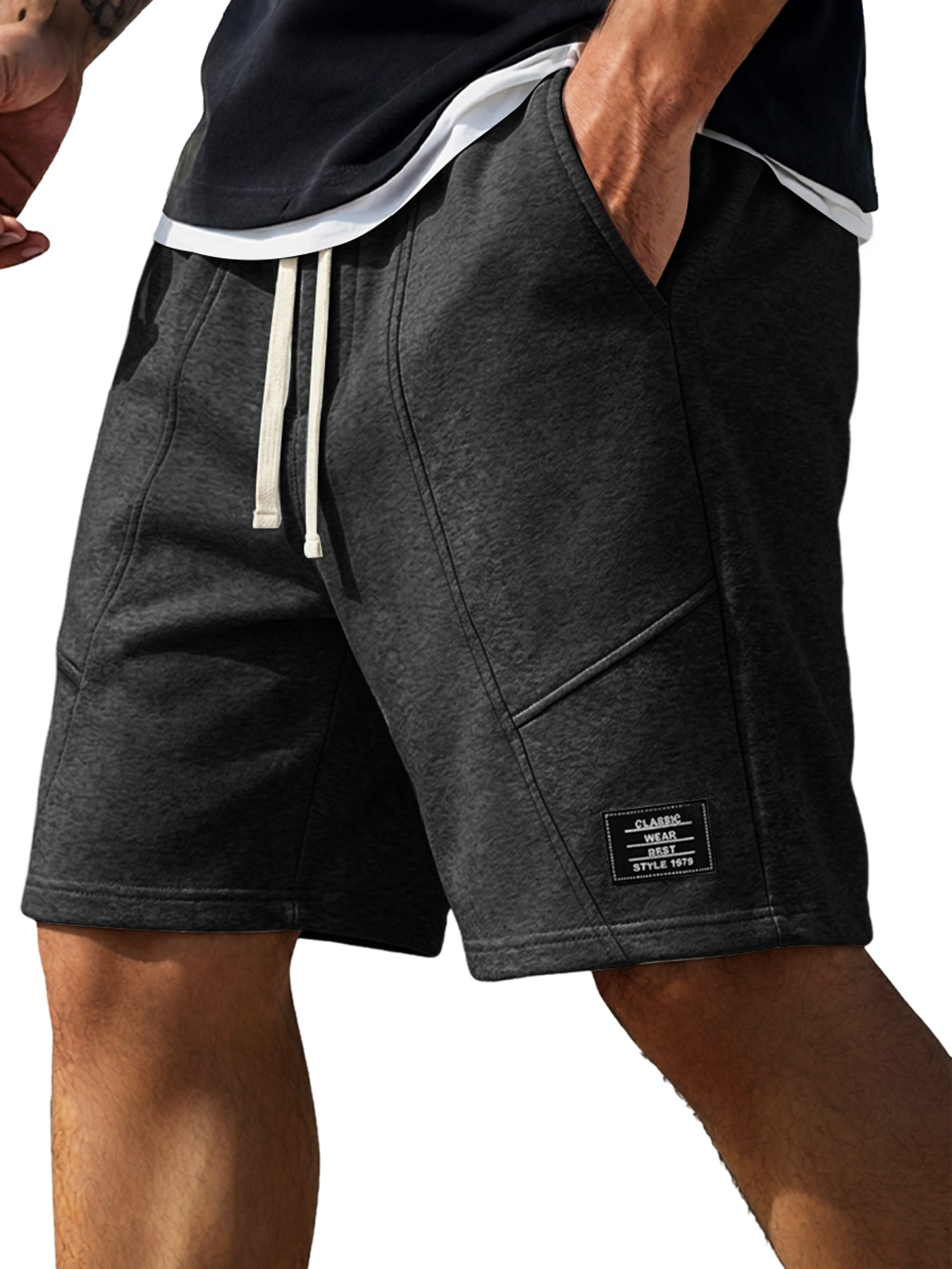 Men's Minimalist Deconstructed Design Embroidered Logo Casual Shorts