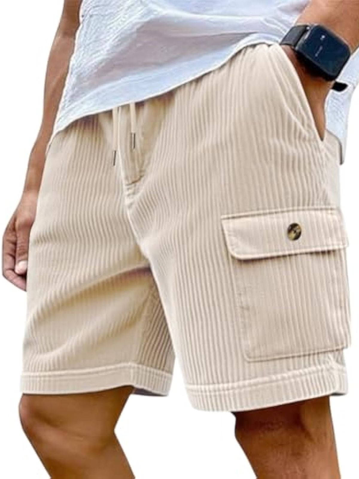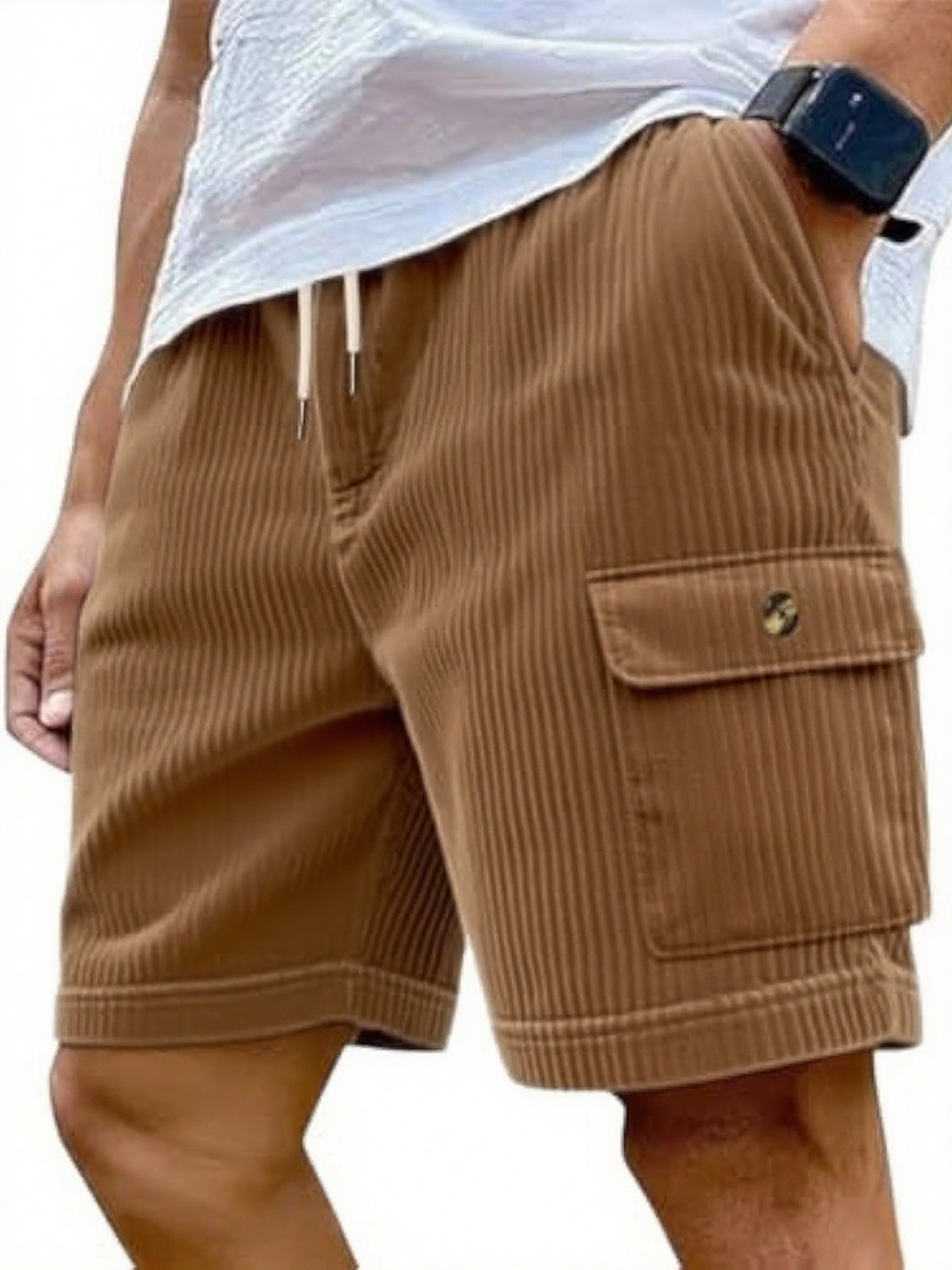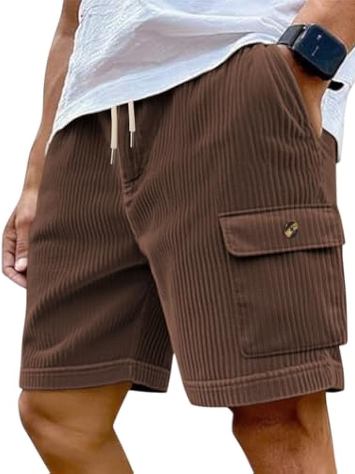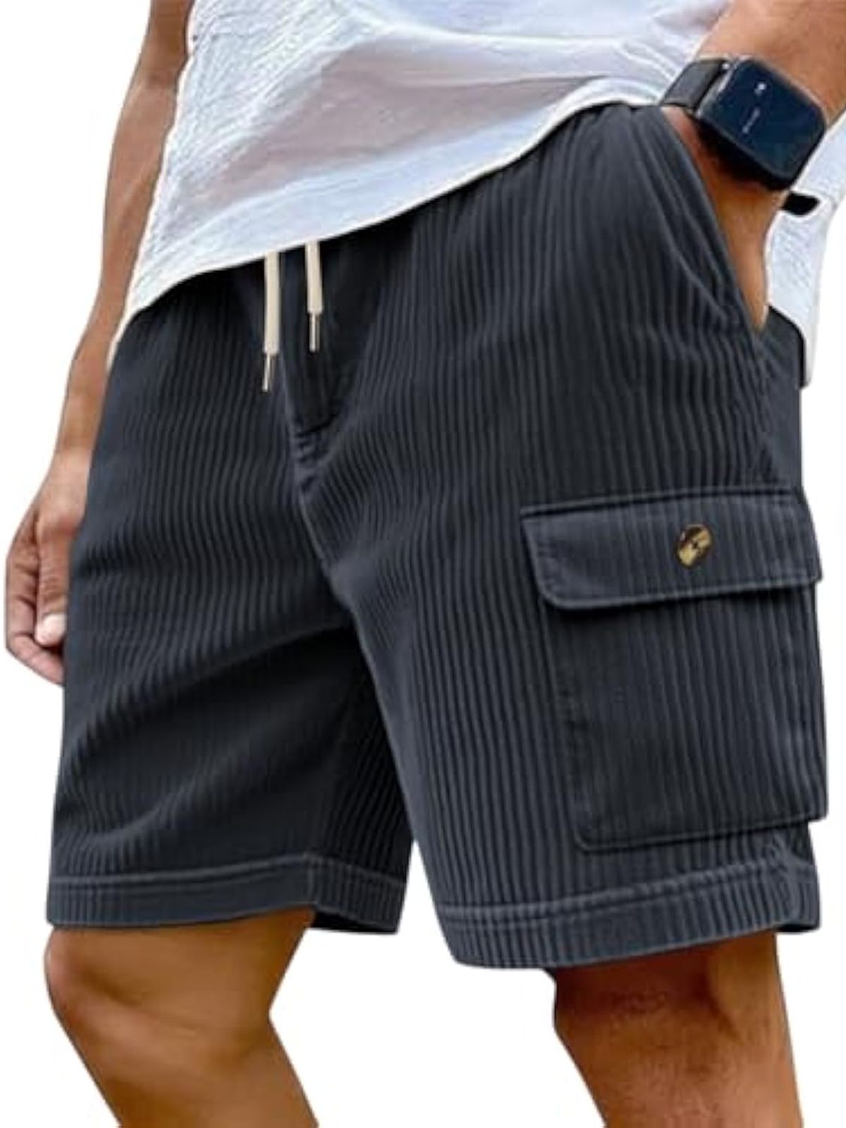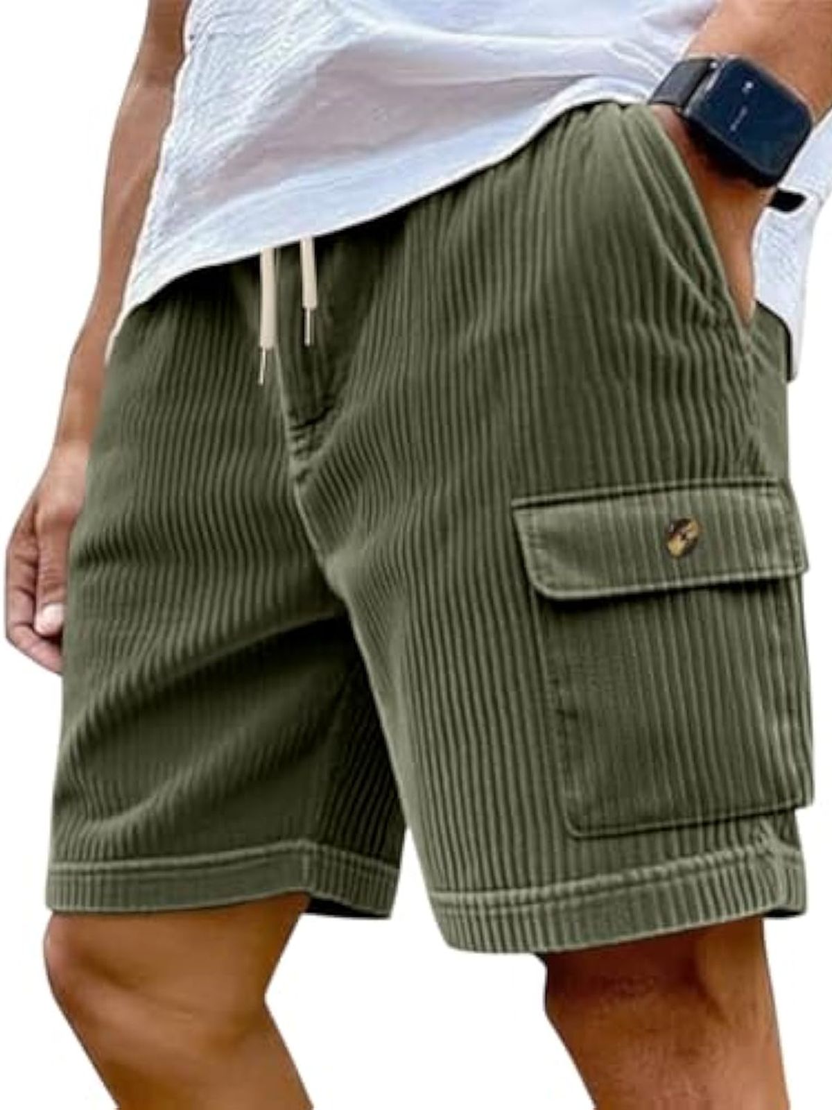 Men's Multi-pocket Corduroy Practical and Stylish Lace-up Stretch Loose Everyday Shorts