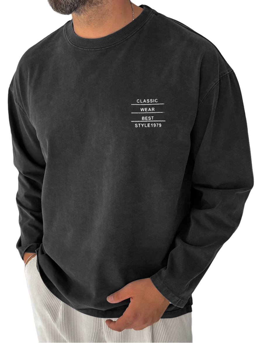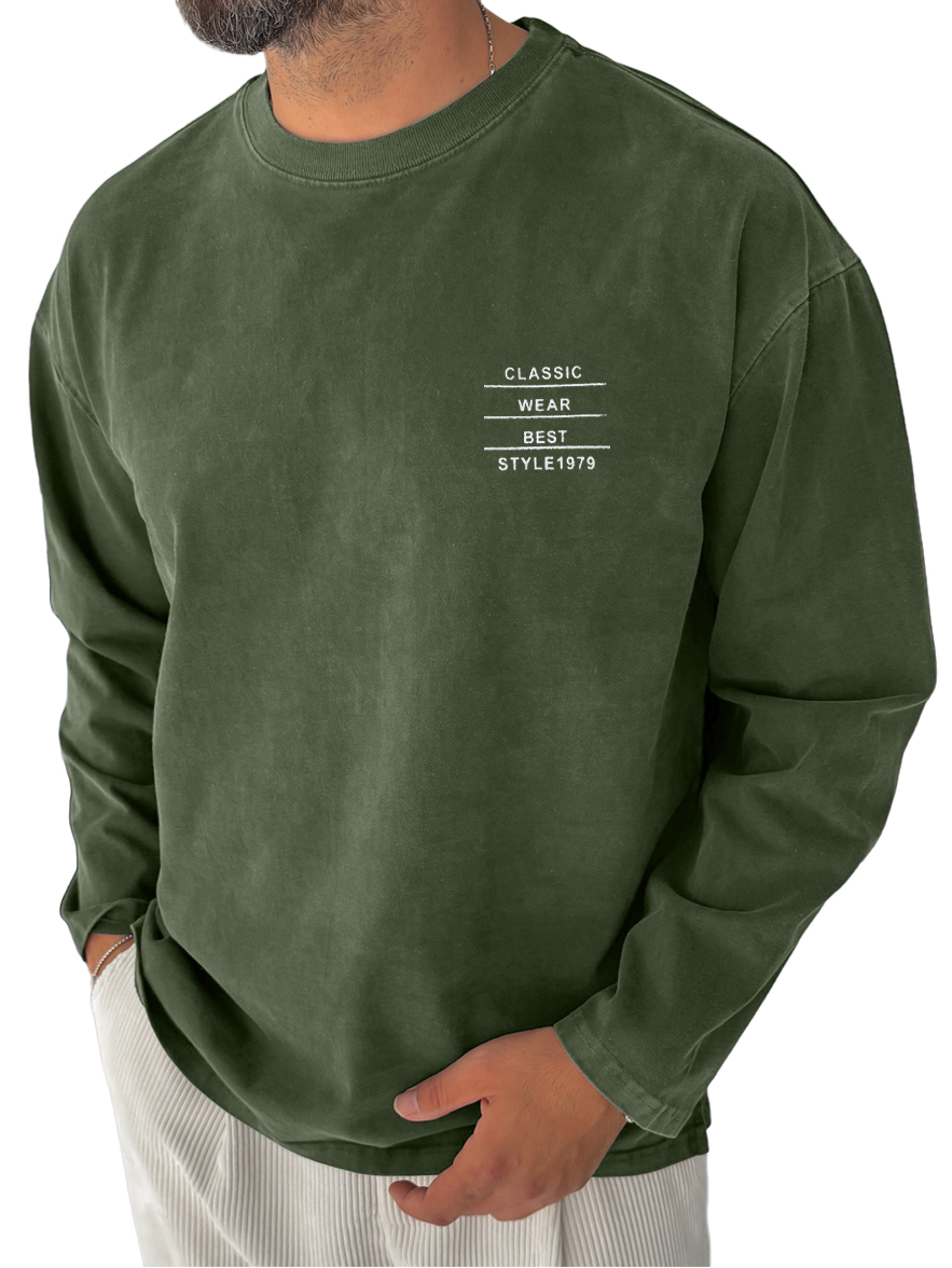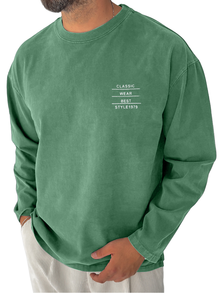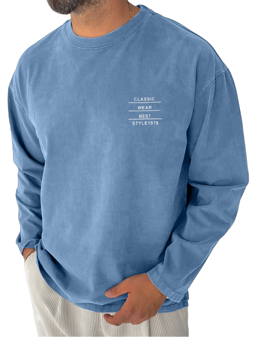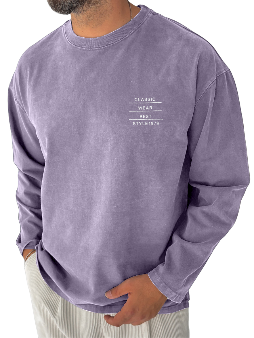Men's Pure Cotton Washed Retro Distressed Casual Round Neck Long-sleeved T-shirt