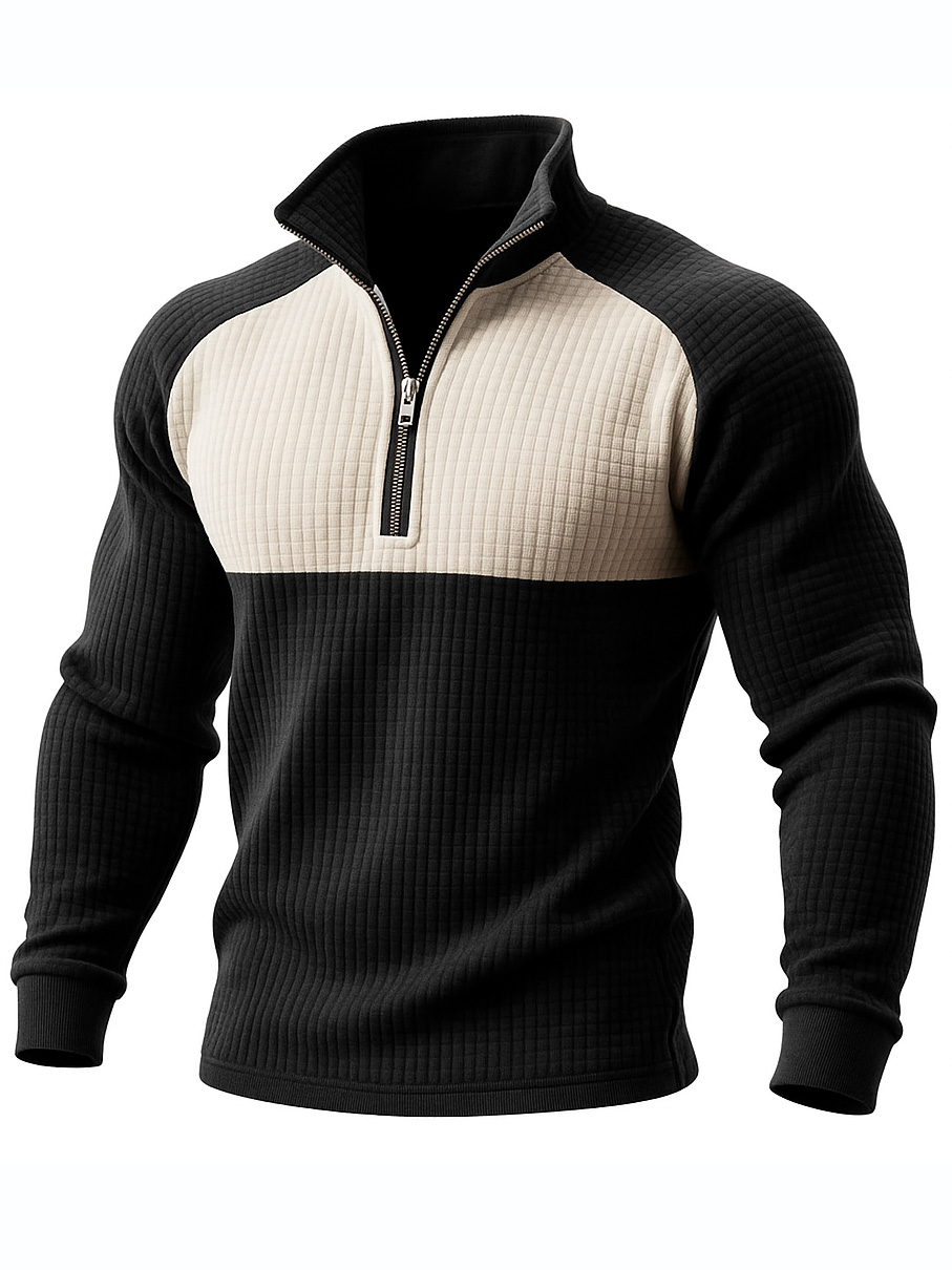 Men's Retro Casual Waffle Quarter-Zip Stand-up Collar Sweatshirt