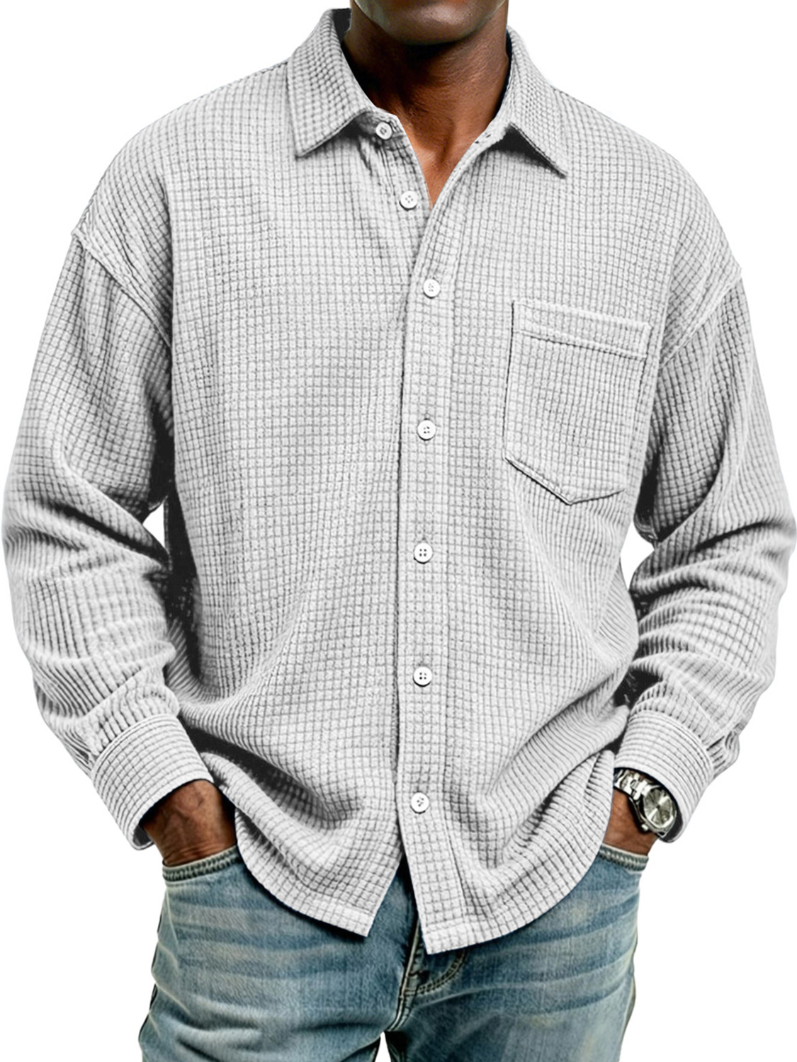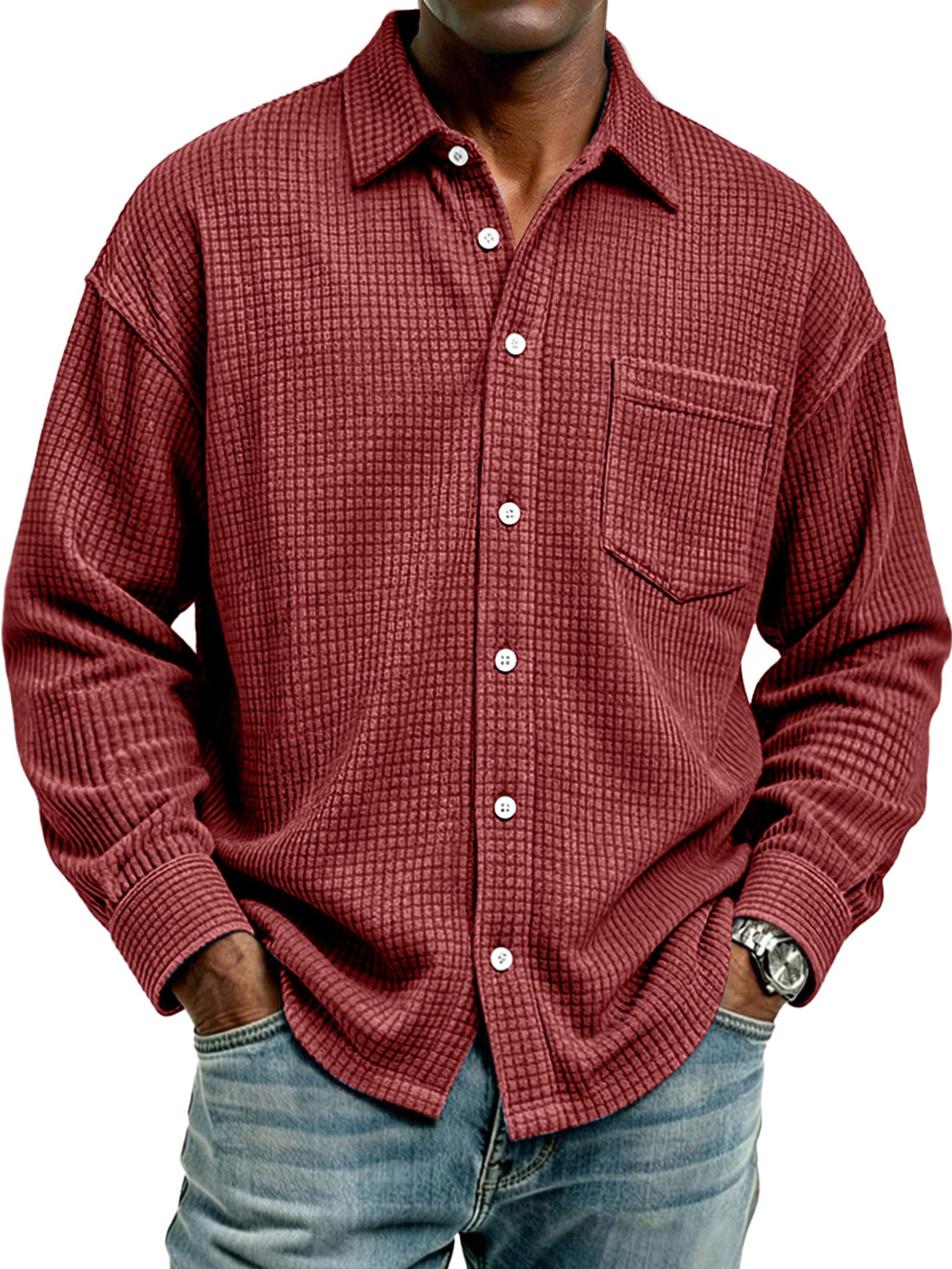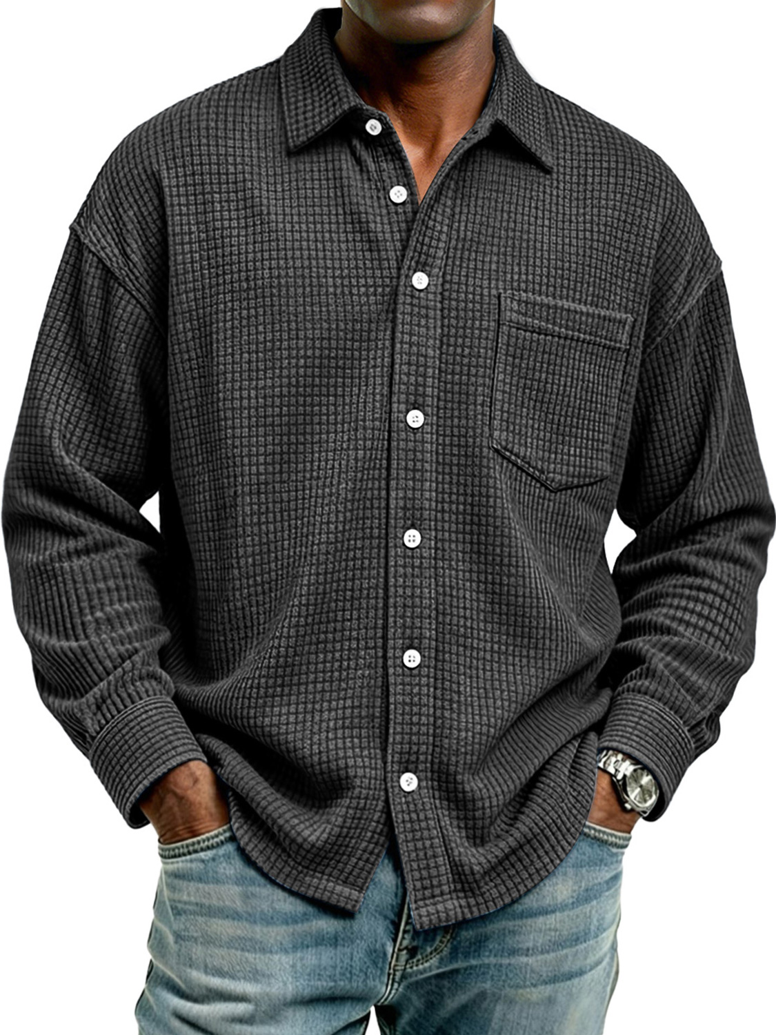 Men's Retro Corduroy Check Casual Pocket Long-Sleeve Shirt
