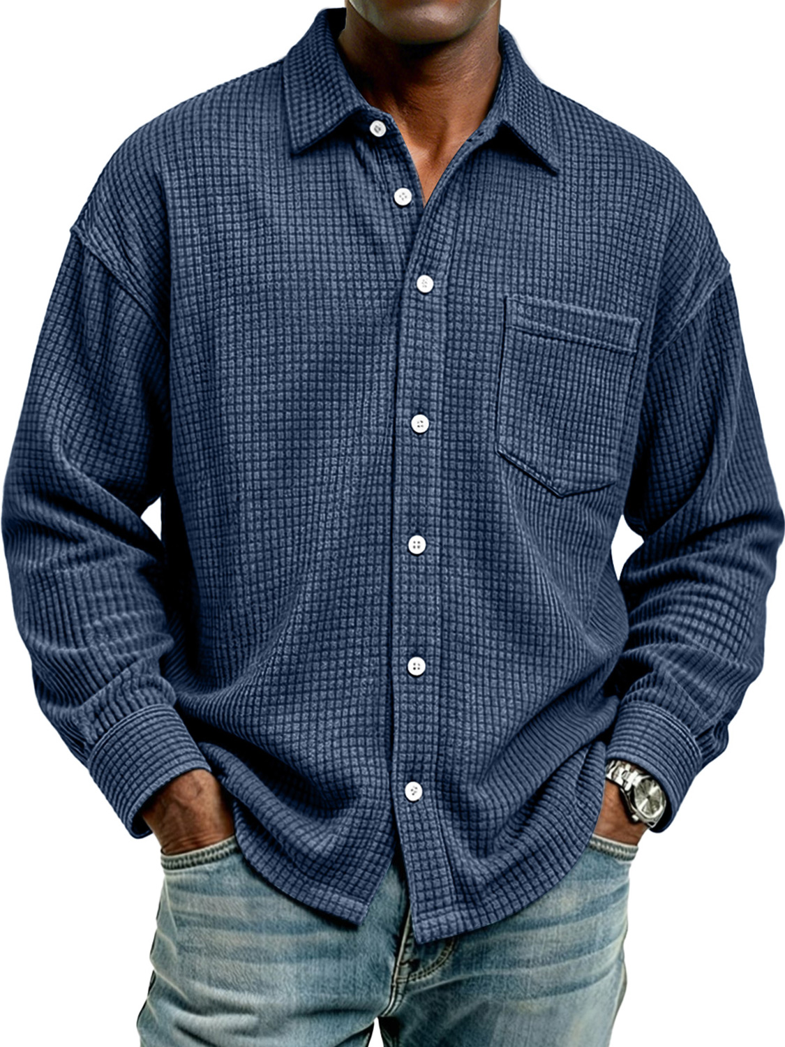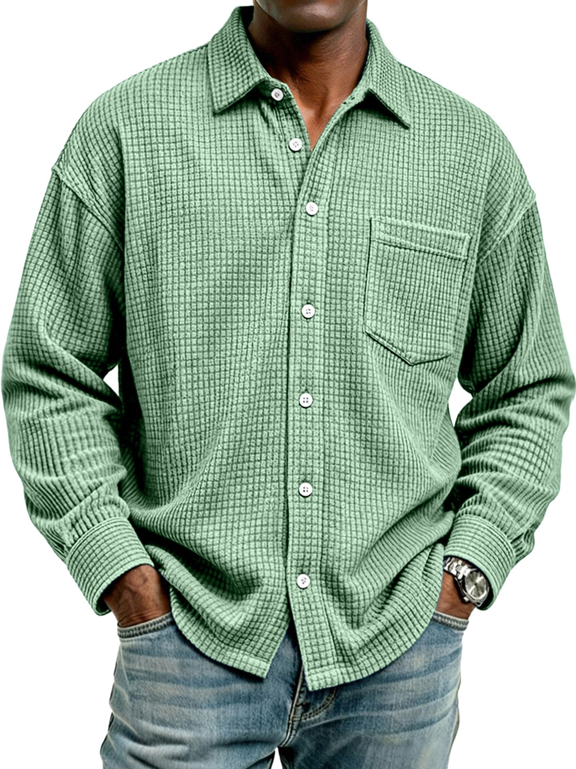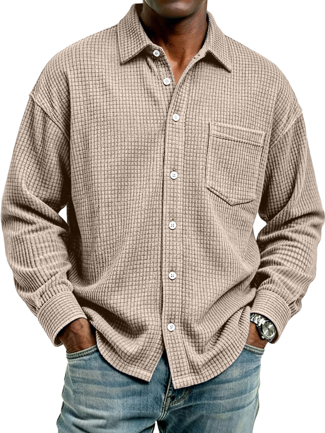 Men's Retro Corduroy Check Casual Pocket Long-Sleeve Shirt