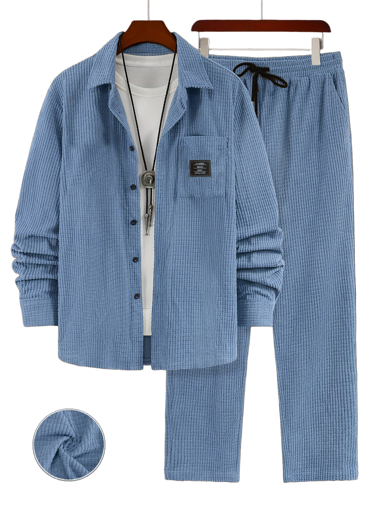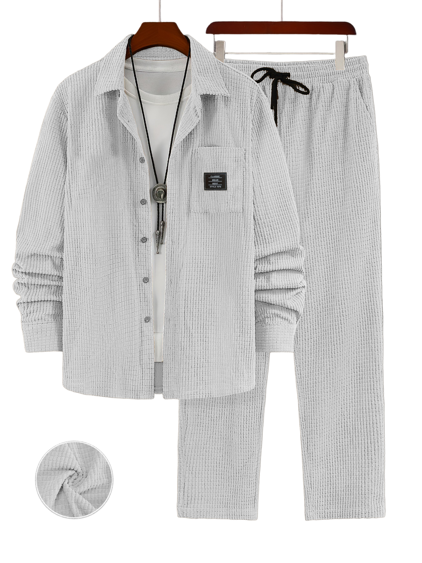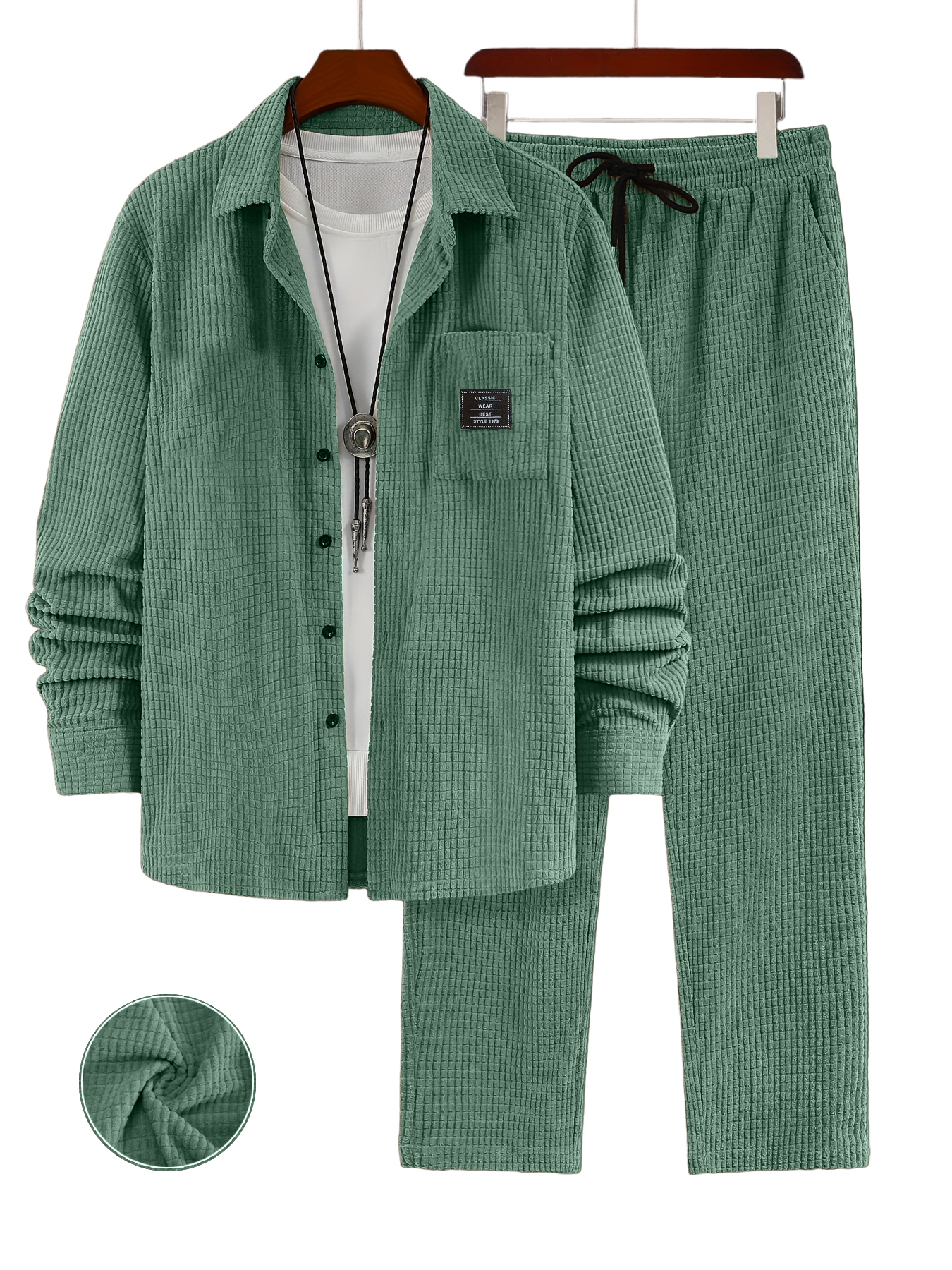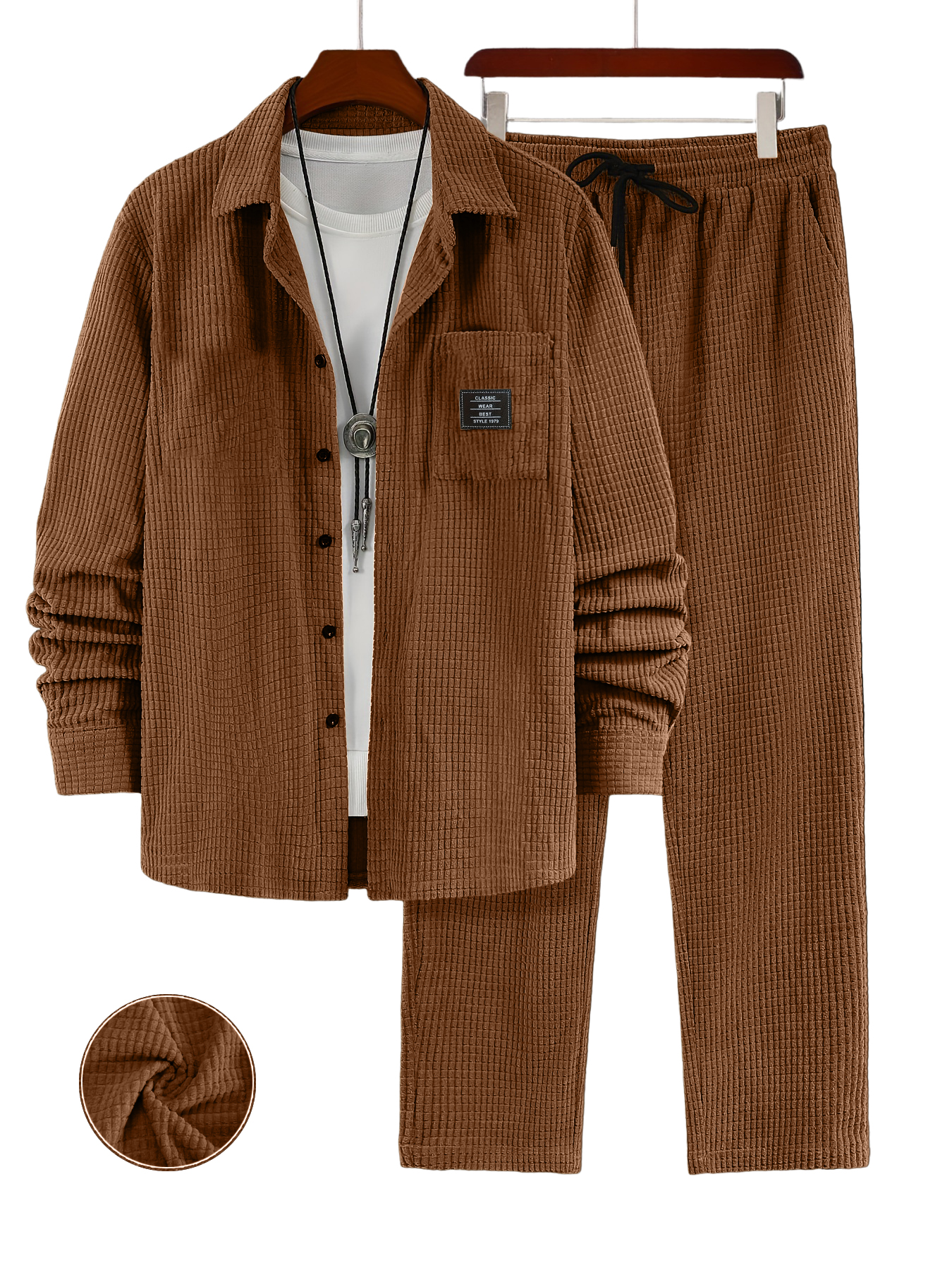 Men's Retro Corduroy Long-Sleeved Shirt and Pants Set OOTD