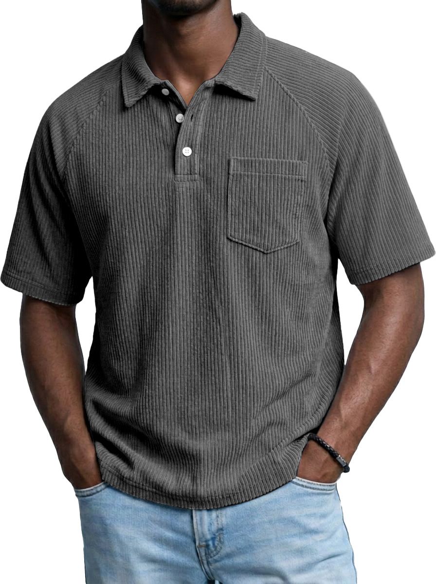 Men's Retro Corduroy Raglan Sleeve Short Sleeve Polo Shirt