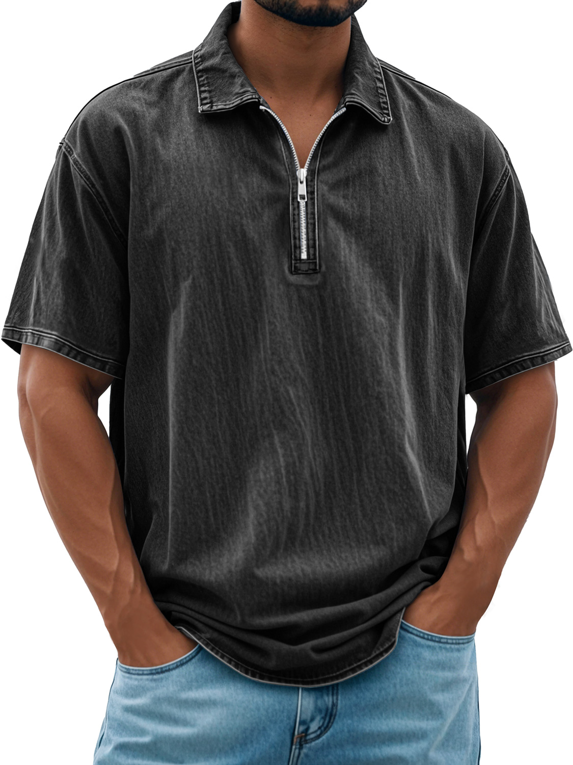 Men's Retro Daily Lapel Zipper Casual Short Sleeve POLO Shirt