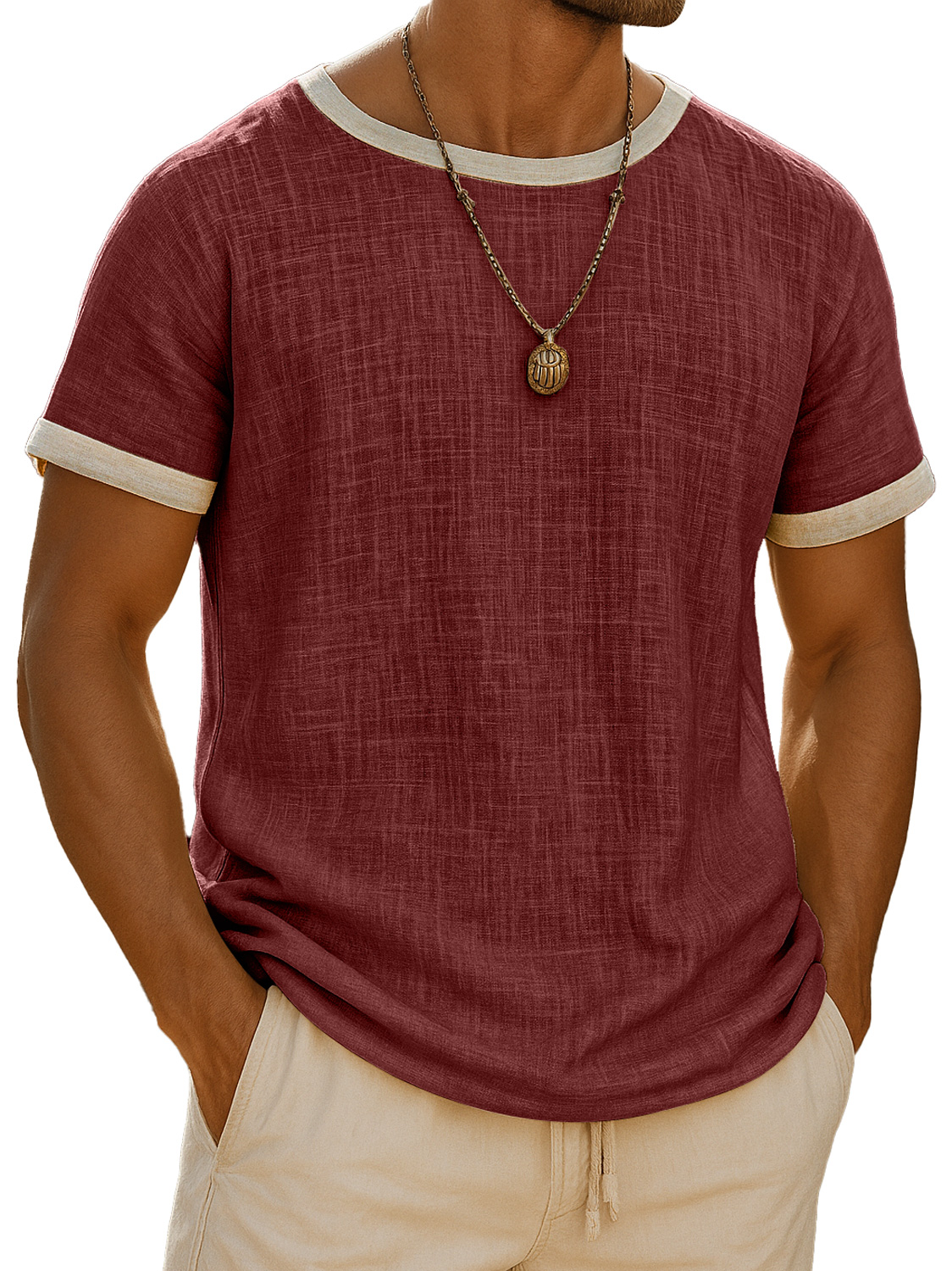 Men's Retro Daily Round Neck Colorblock Casual Short Sleeve T-shirt