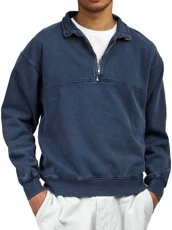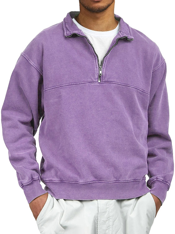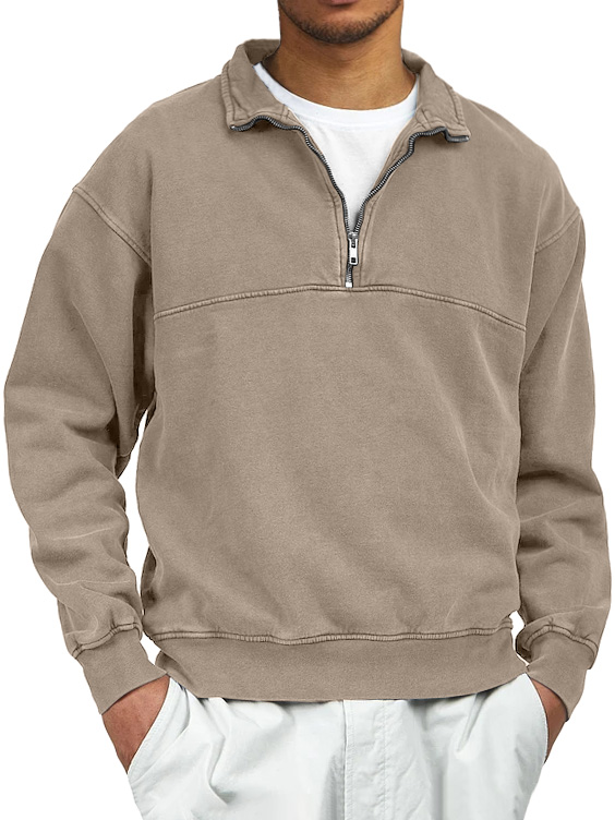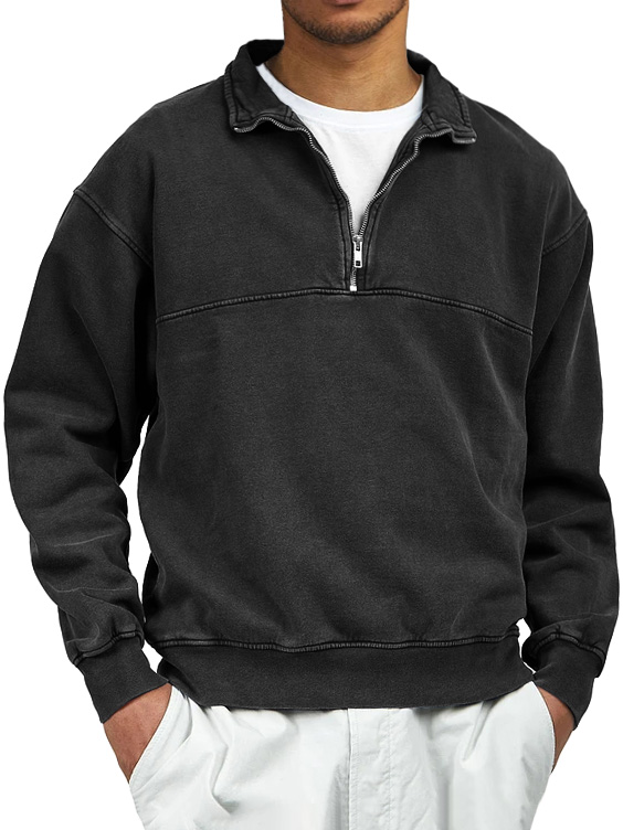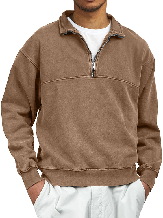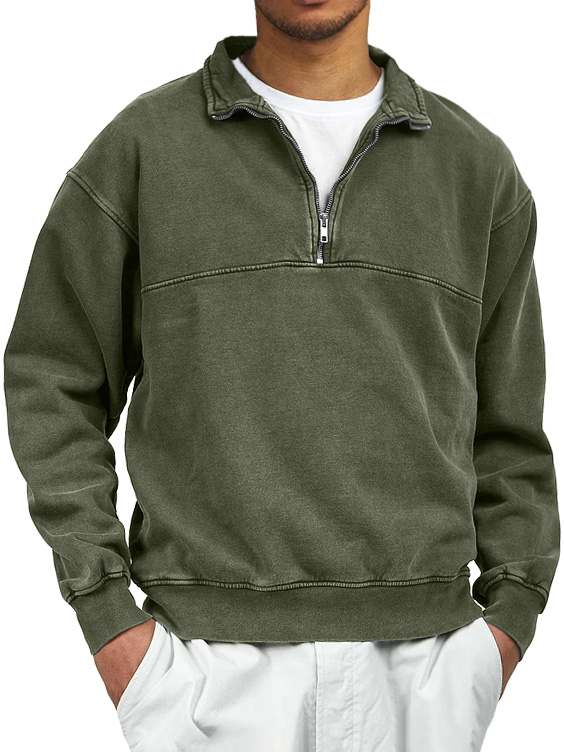 Men's Retro Distressed Quarter Zipper Stand Collar Long-Sleeve Sweatshirt