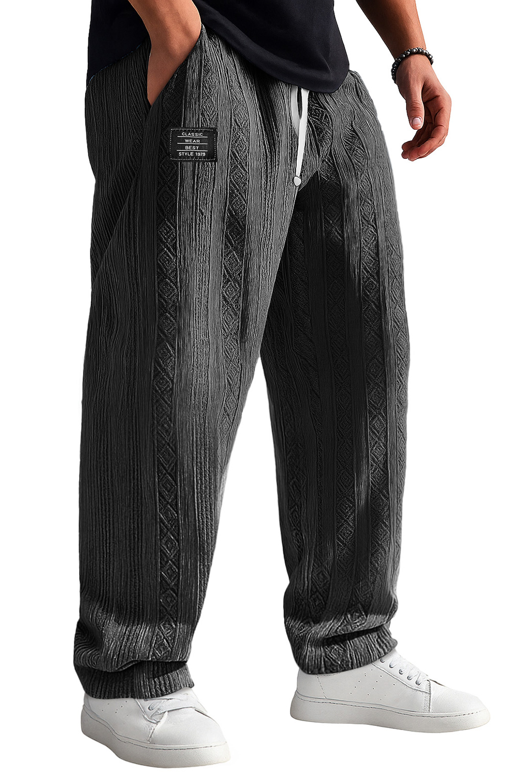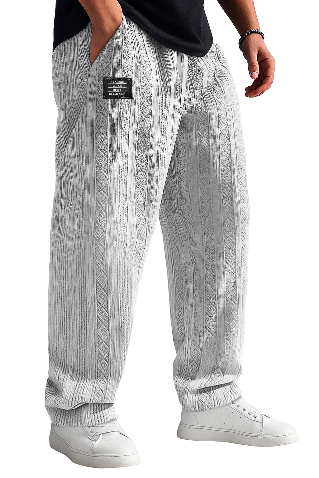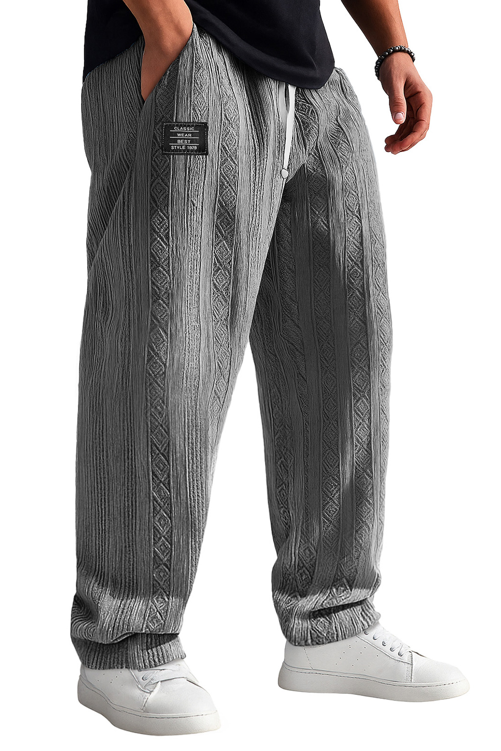 Men's Retro Jacquard Texture Embroidered Logo Casual Comfortable Trousers