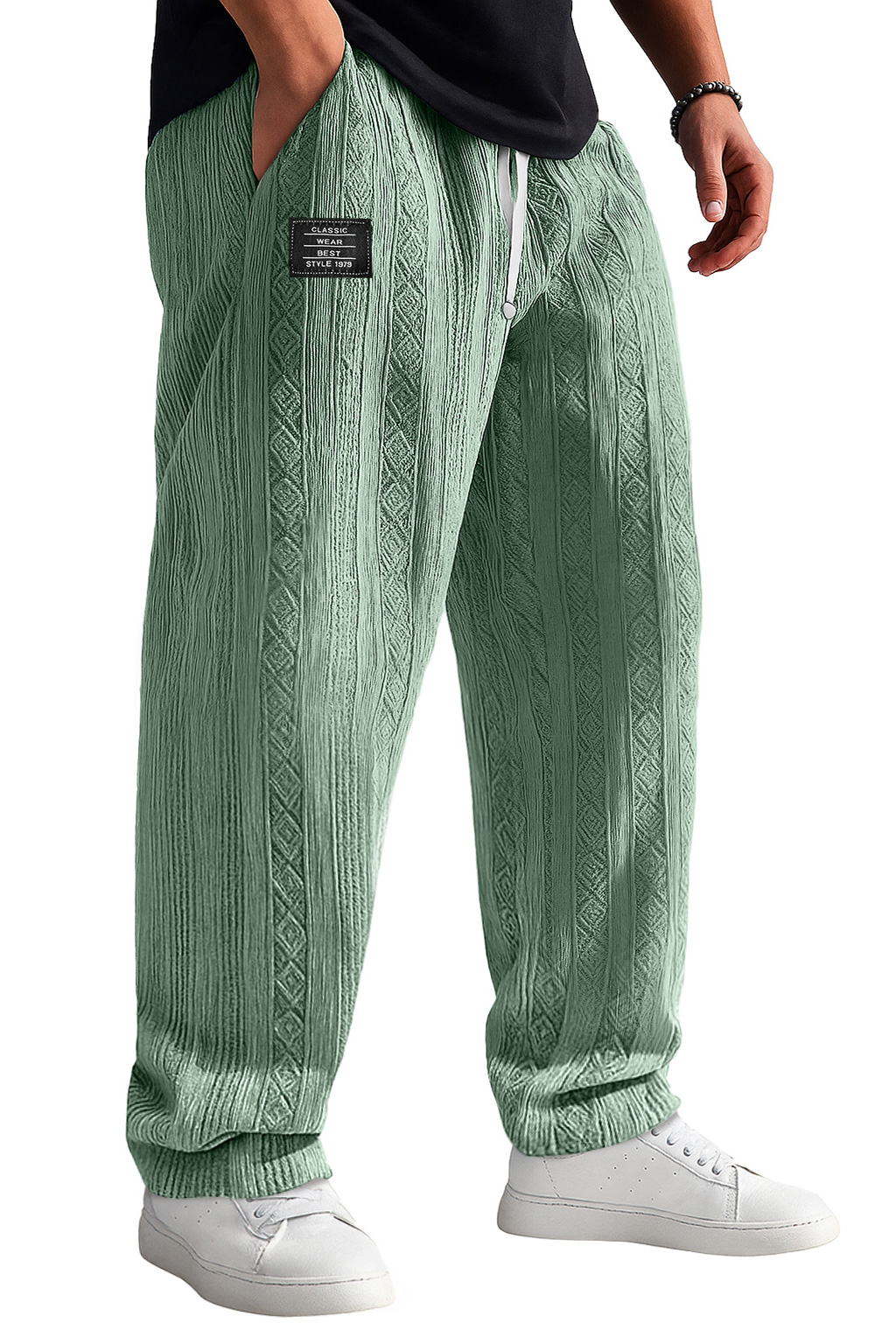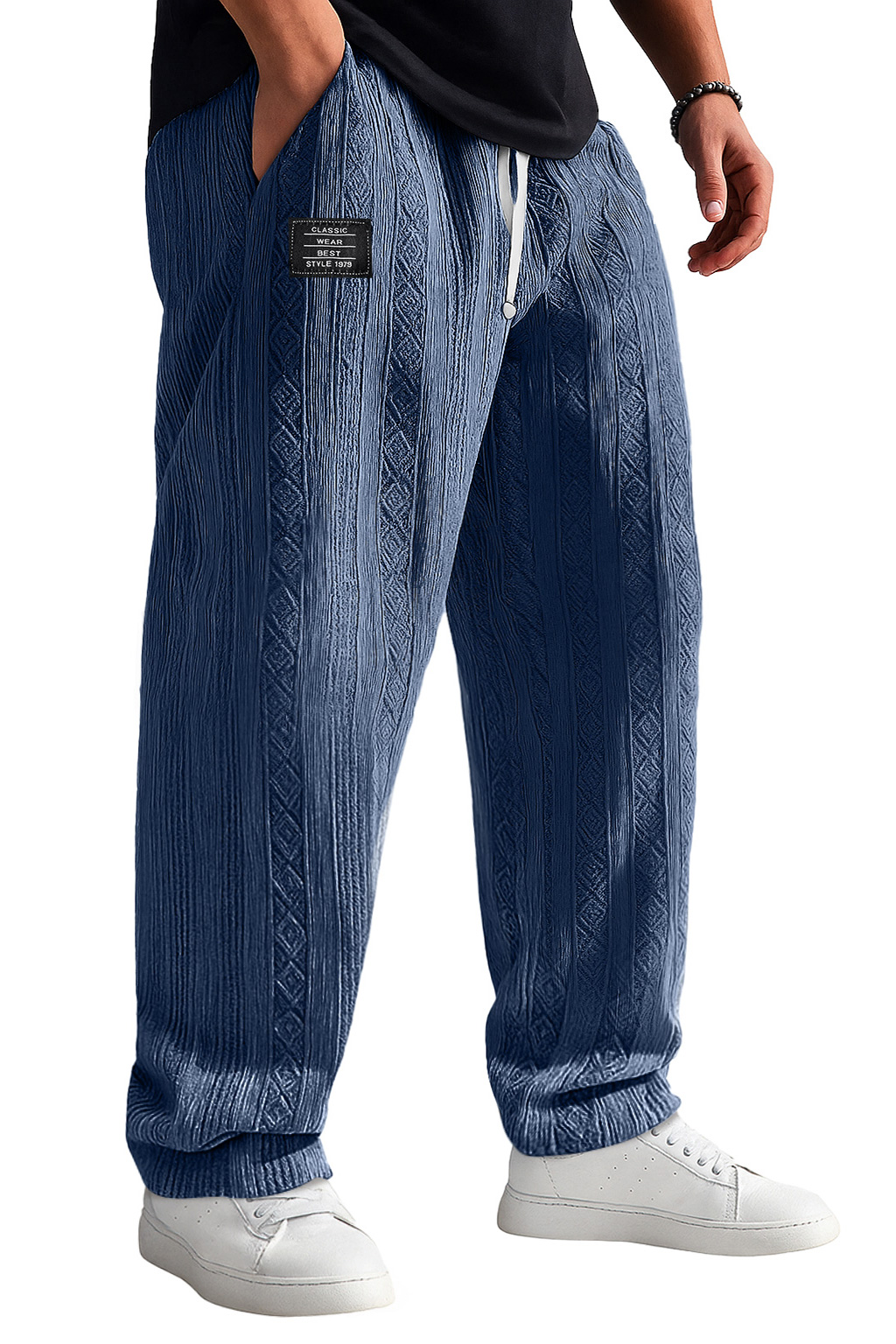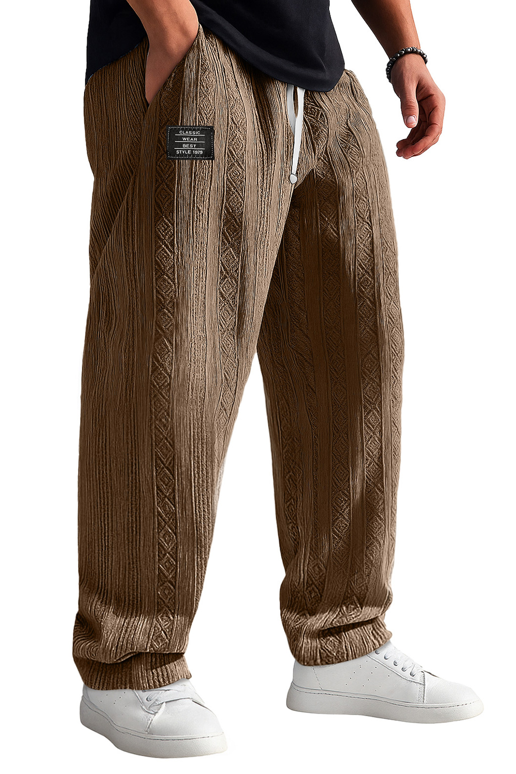 Men's Retro Jacquard Texture Embroidered Logo Casual Comfortable Trousers