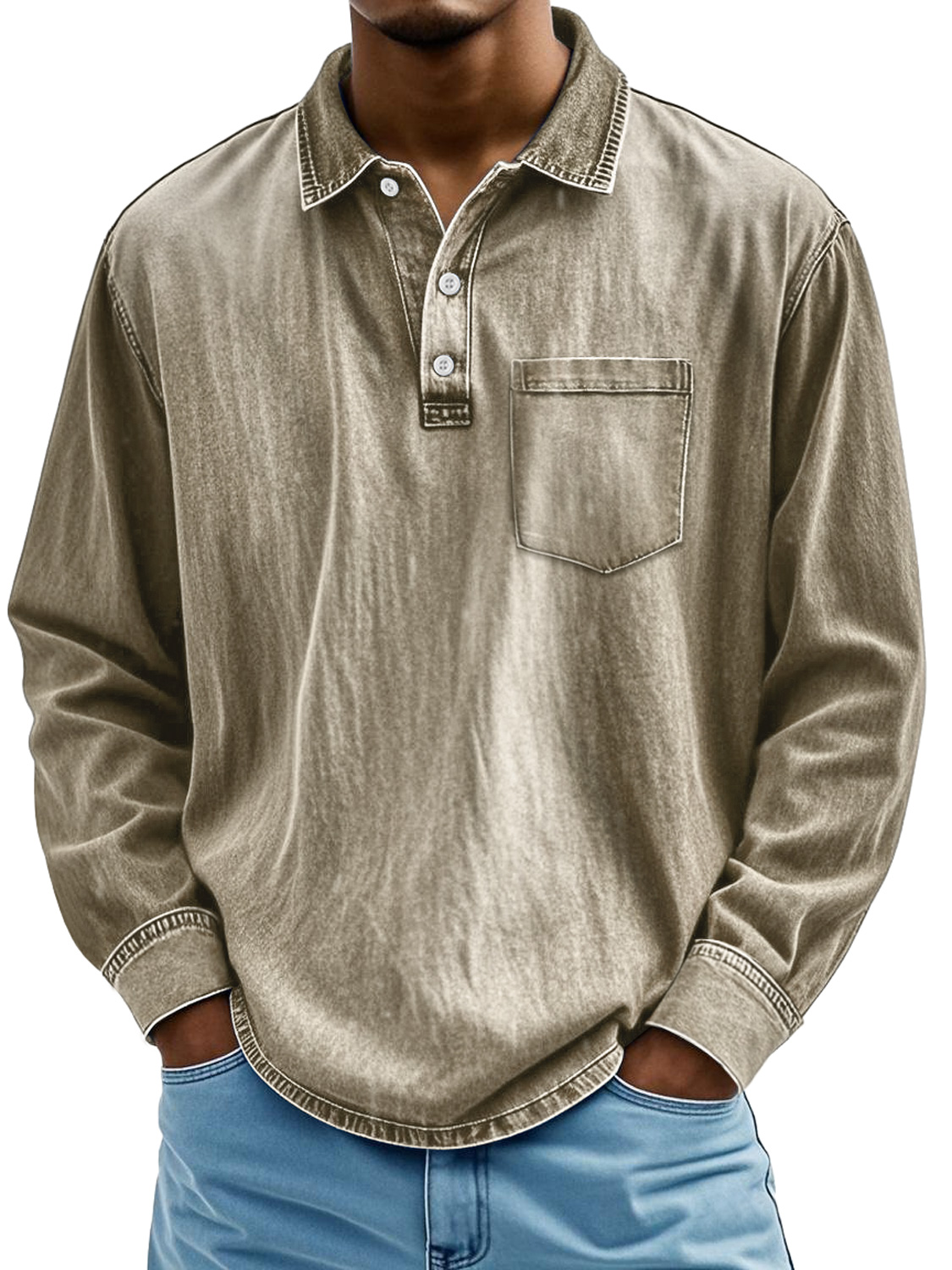 Men's Retro Lapel Button Casual Pocket Comfortable Long Sleeve Polo Shirt