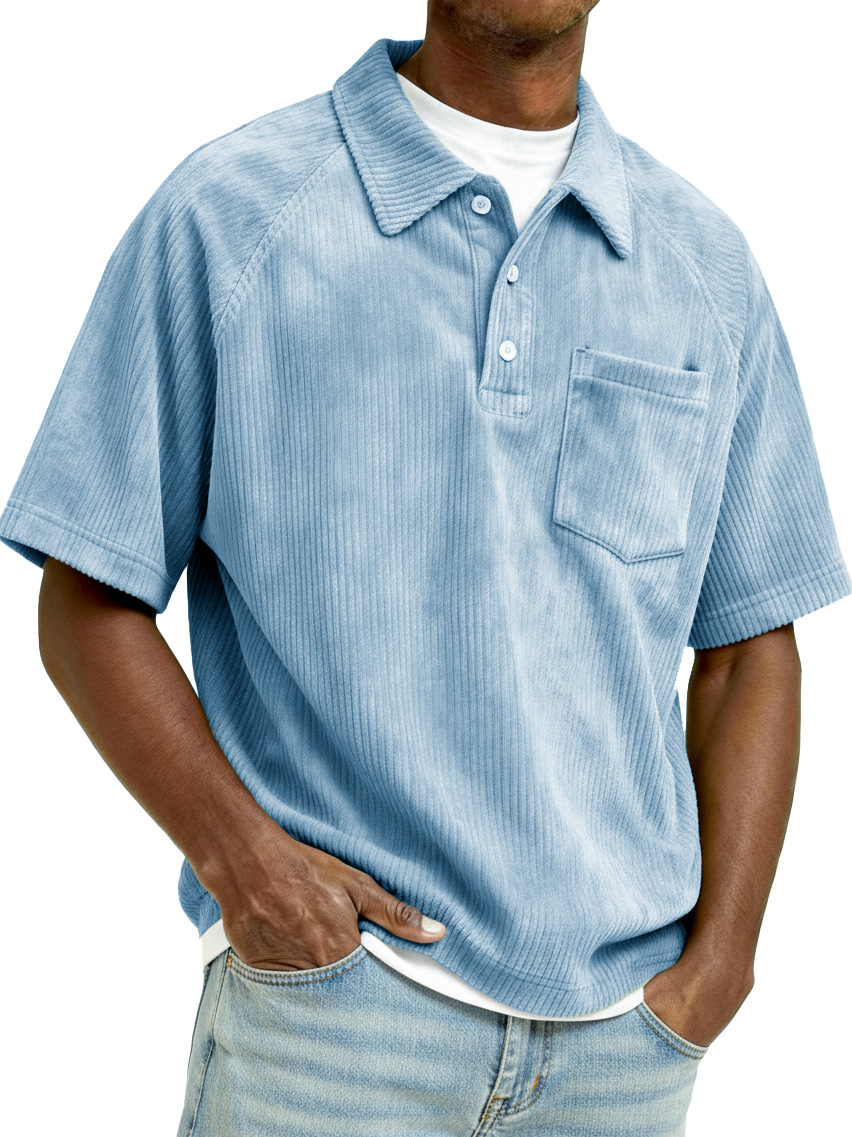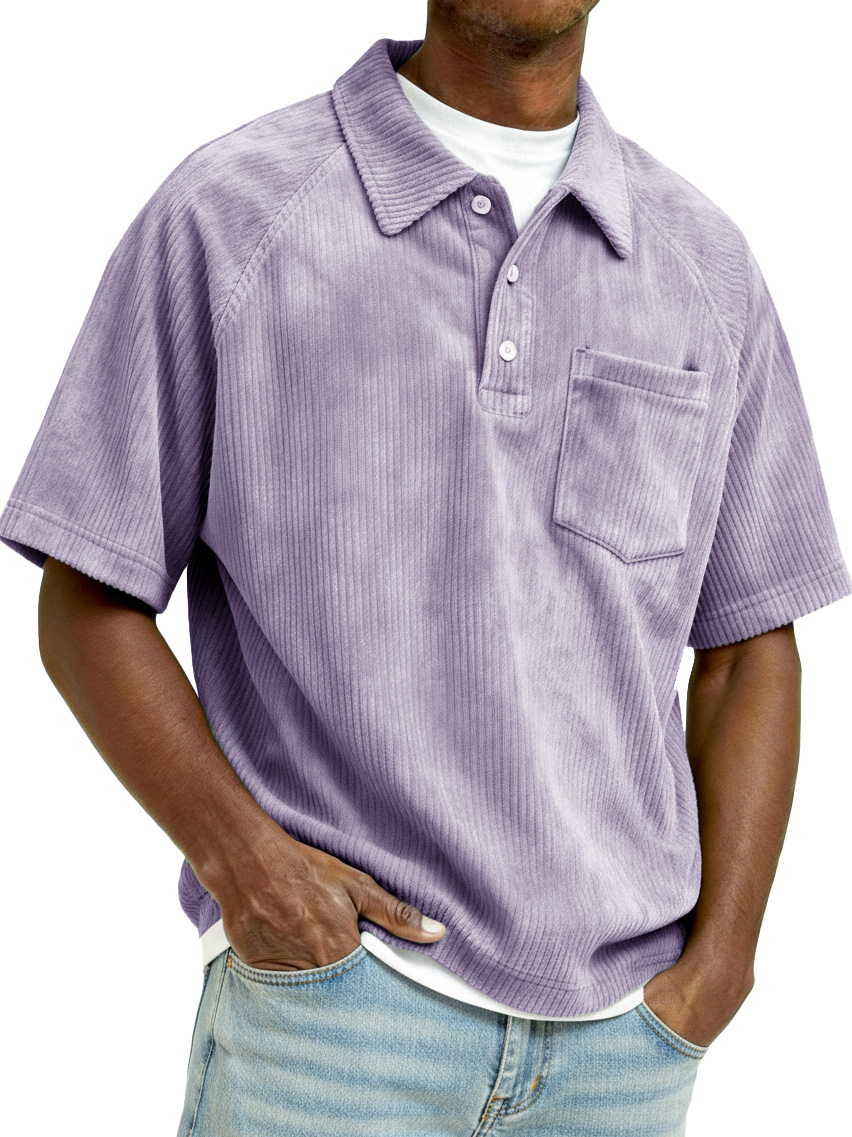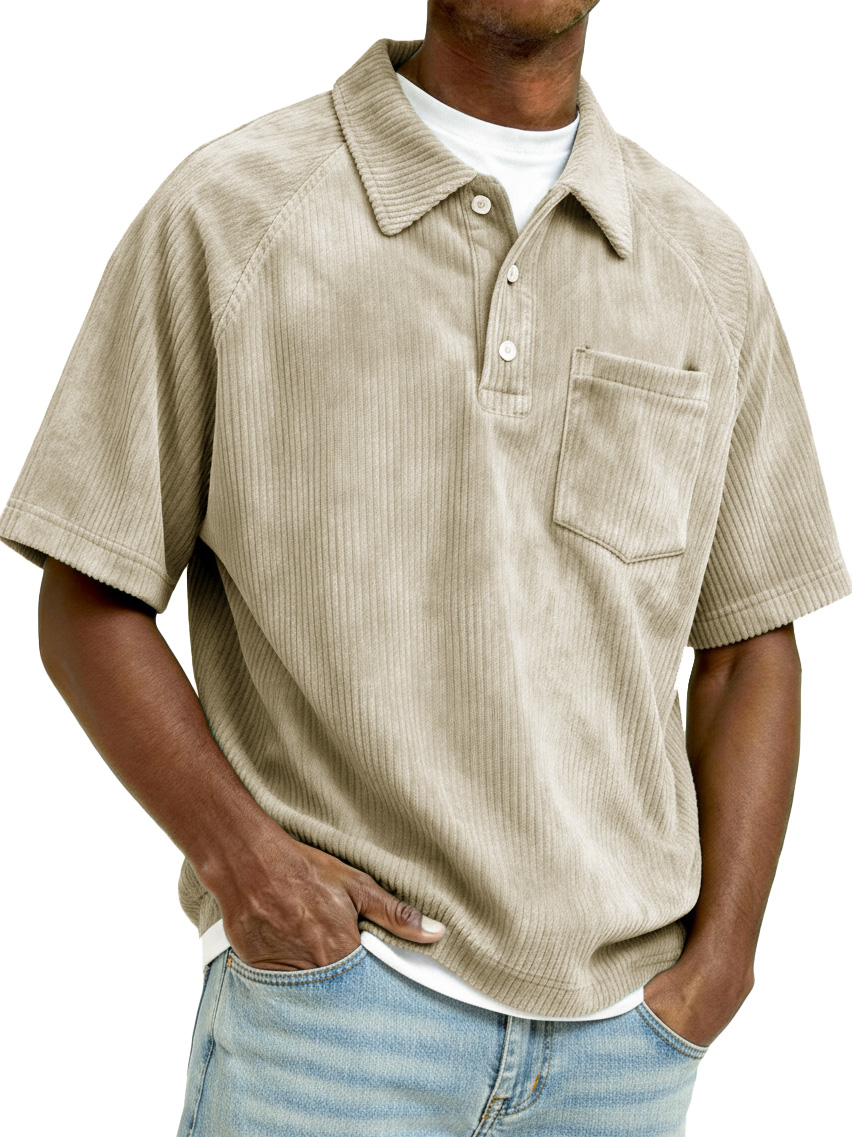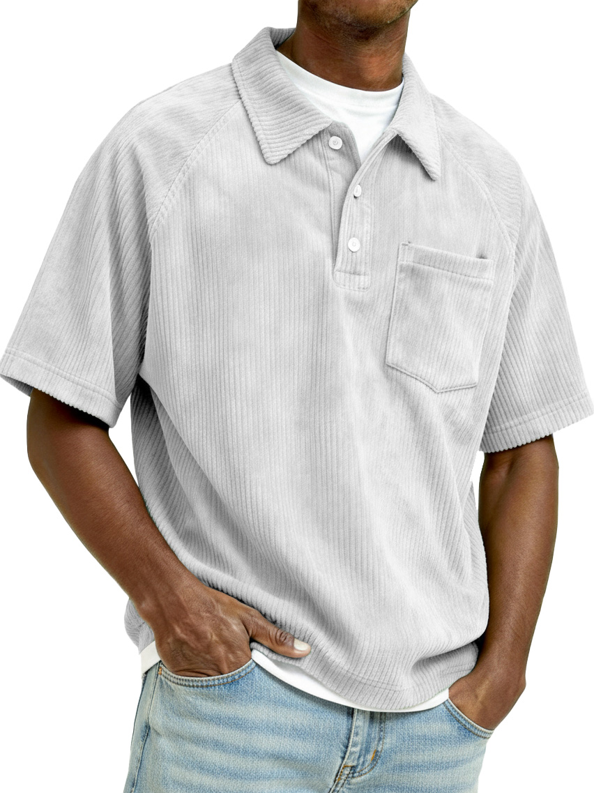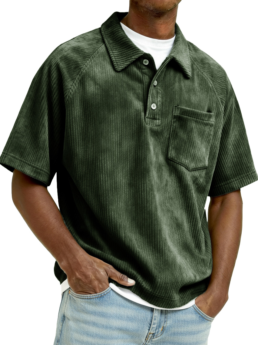 Men's Retro Raglan Corduroy Loose Pocket Short-Sleeve Polo Shirt