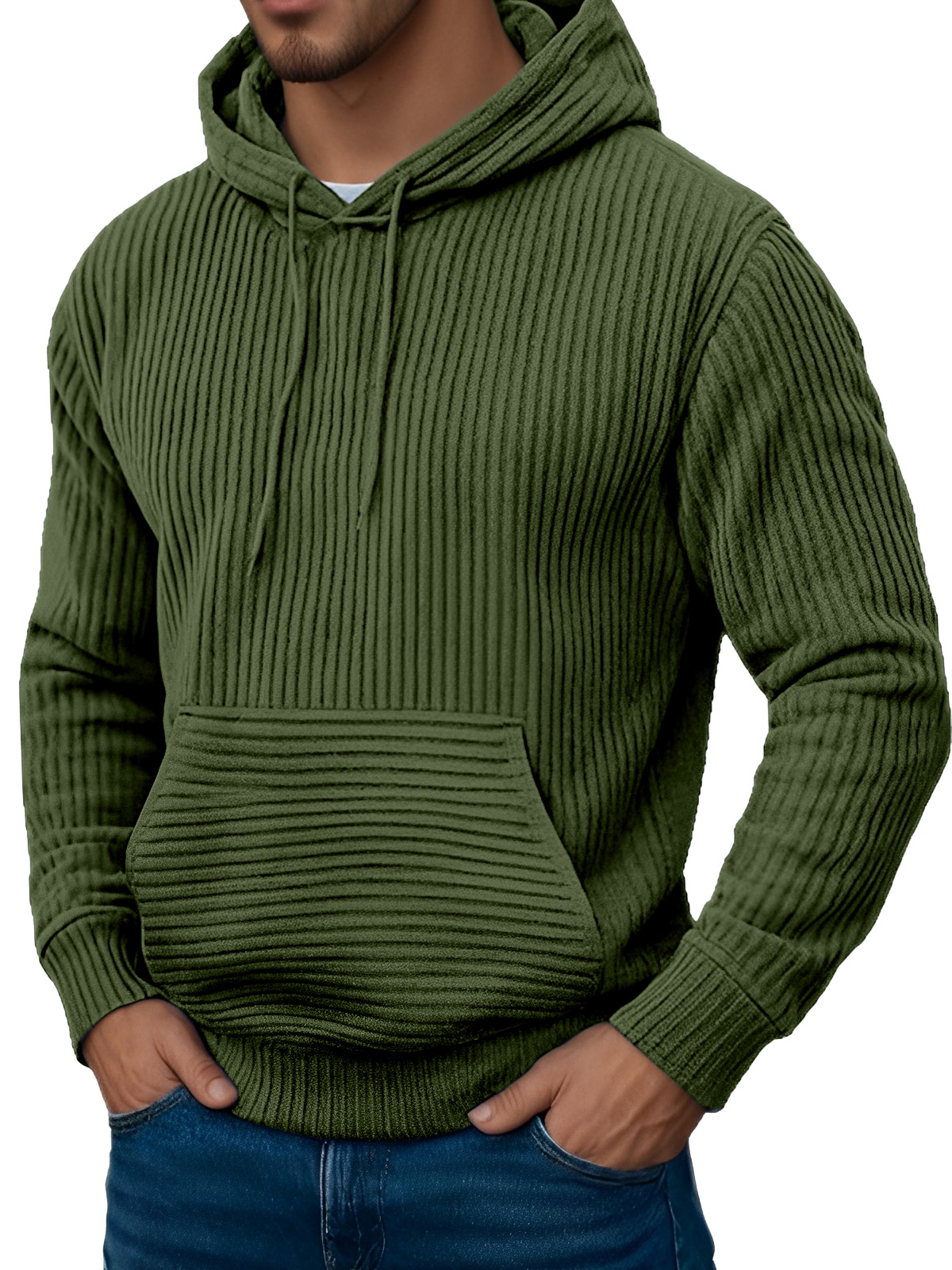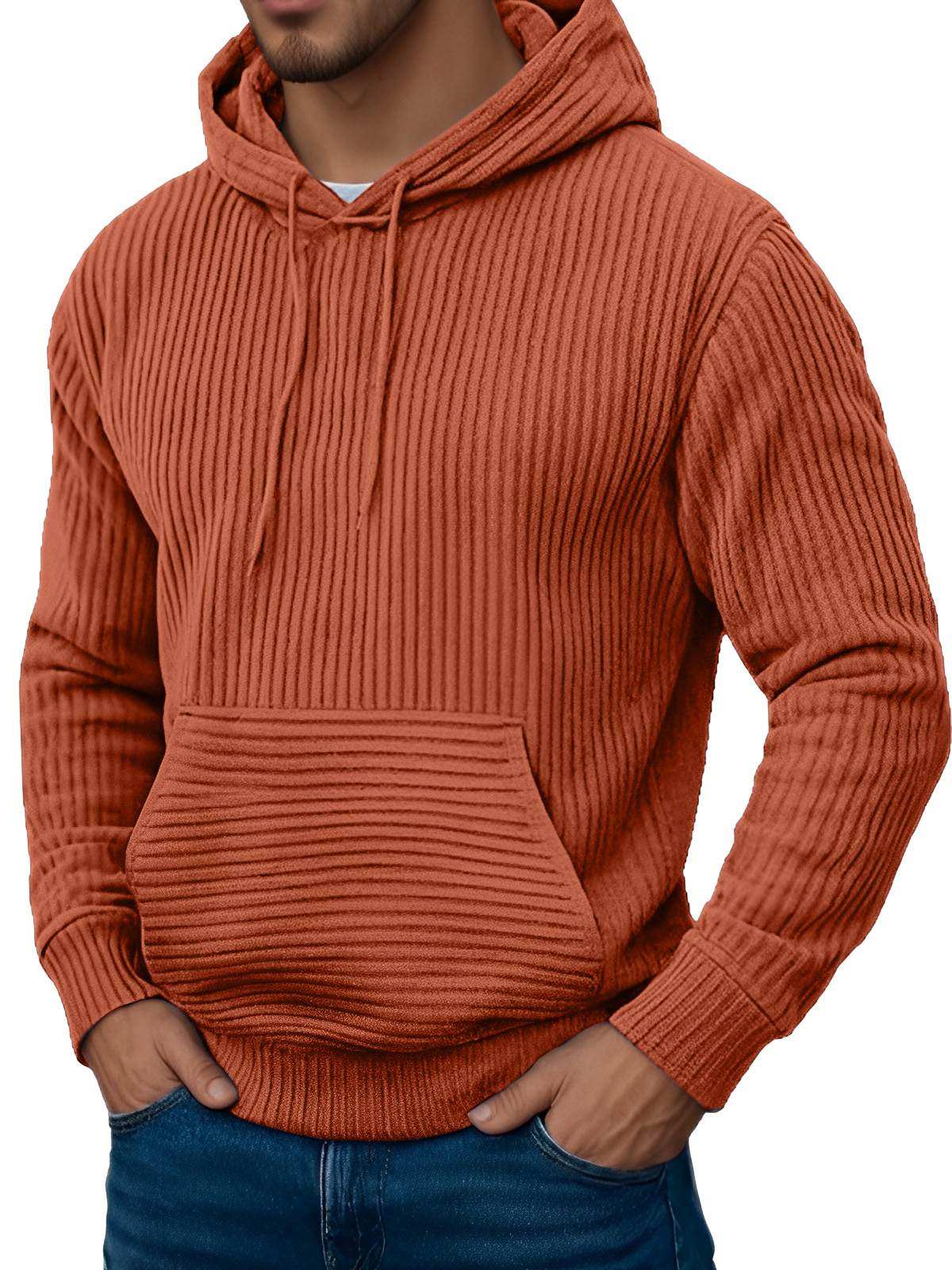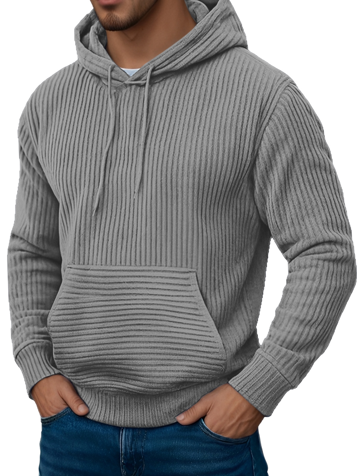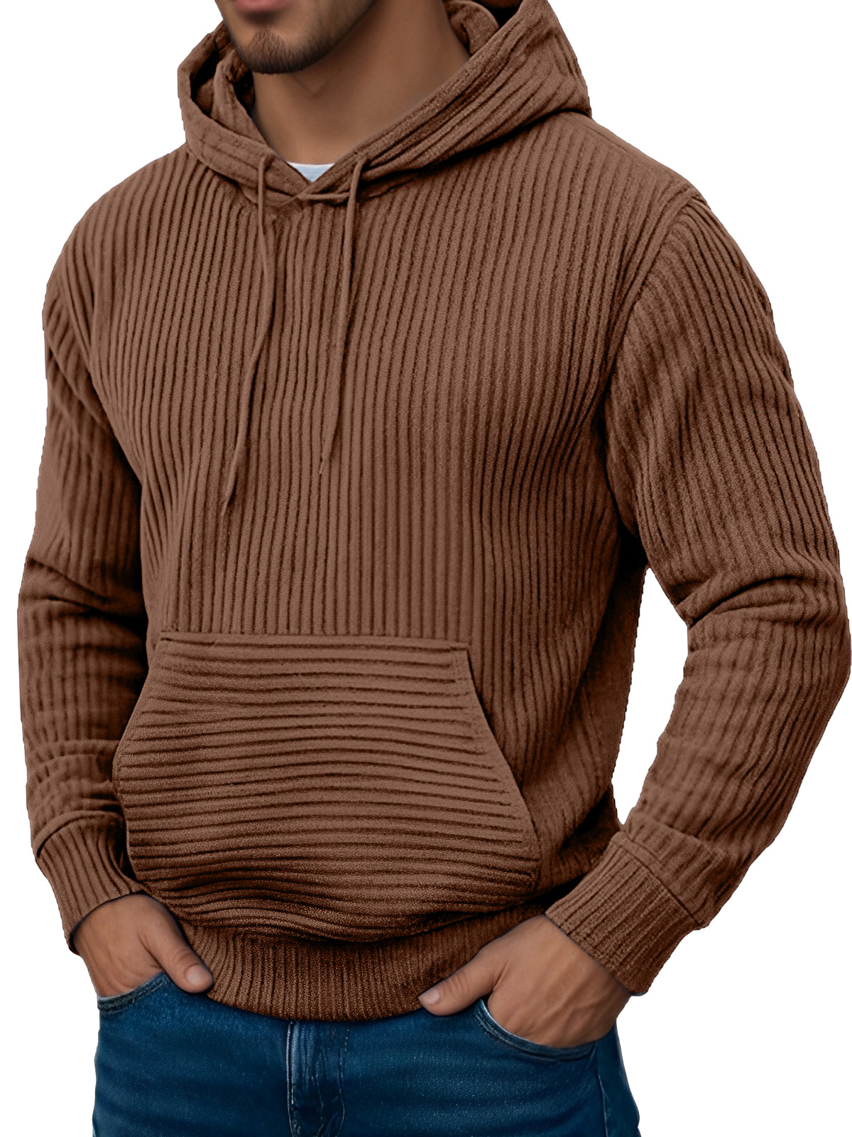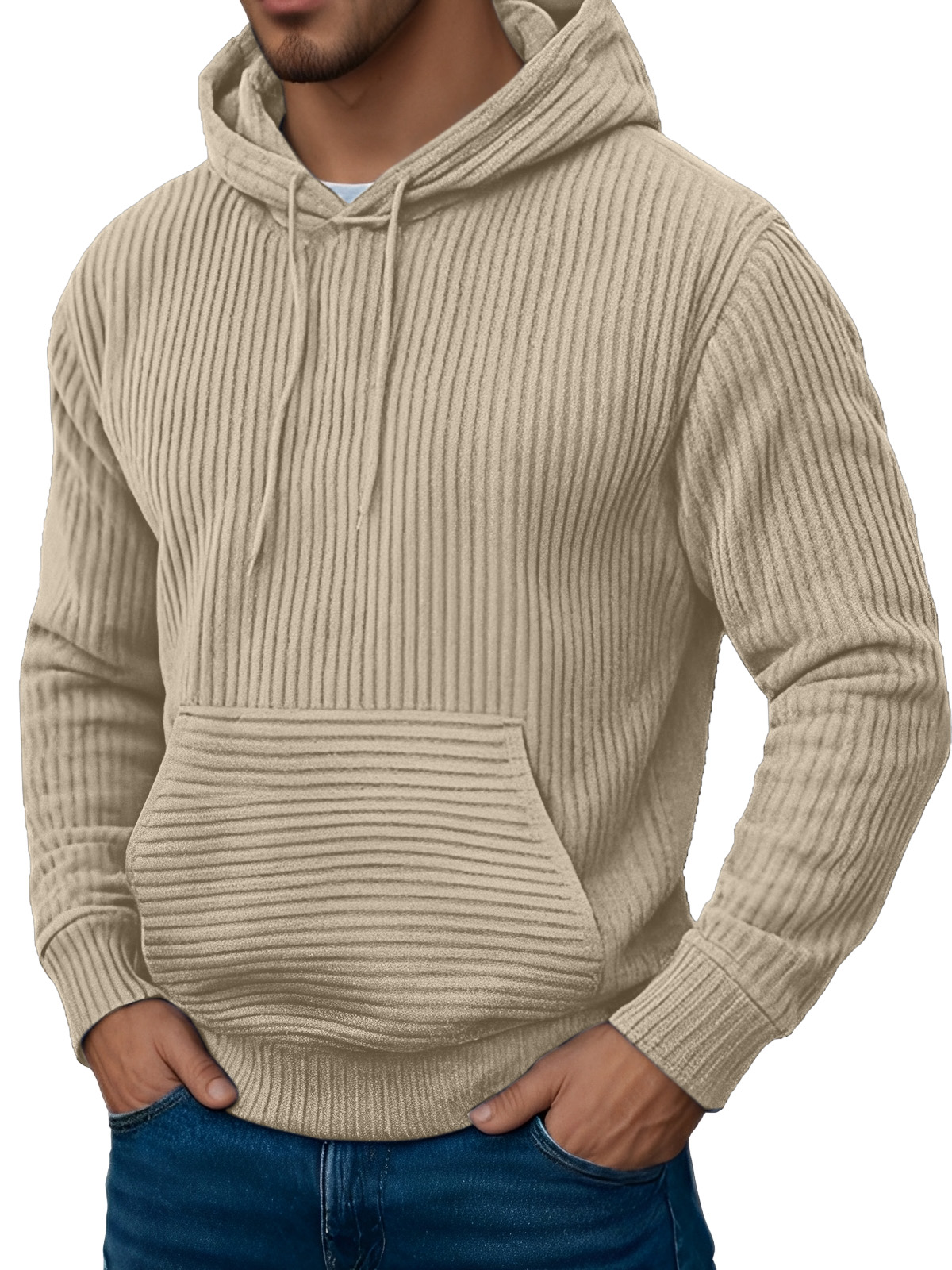 Men's Retro Simple Solid Color Jacquard Long-sleeved Hooded Sweatshirt