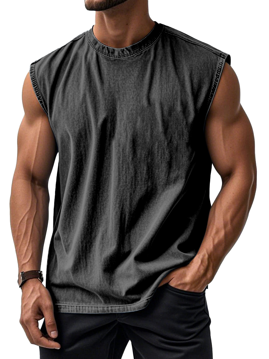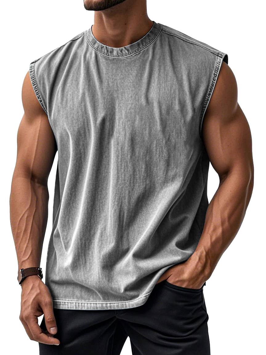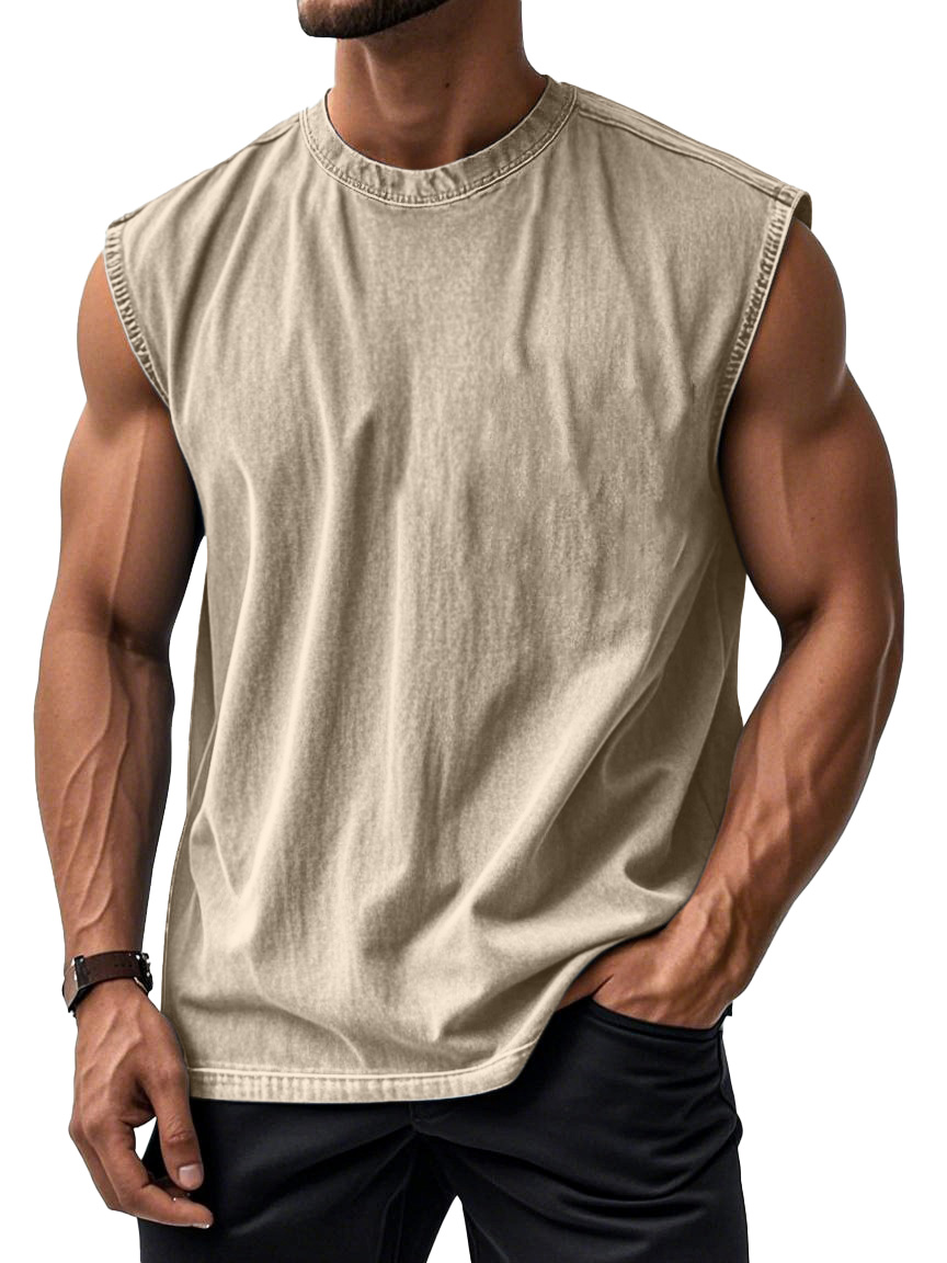 Men's Retro Solid Color Comfortable Crew Neck Vest