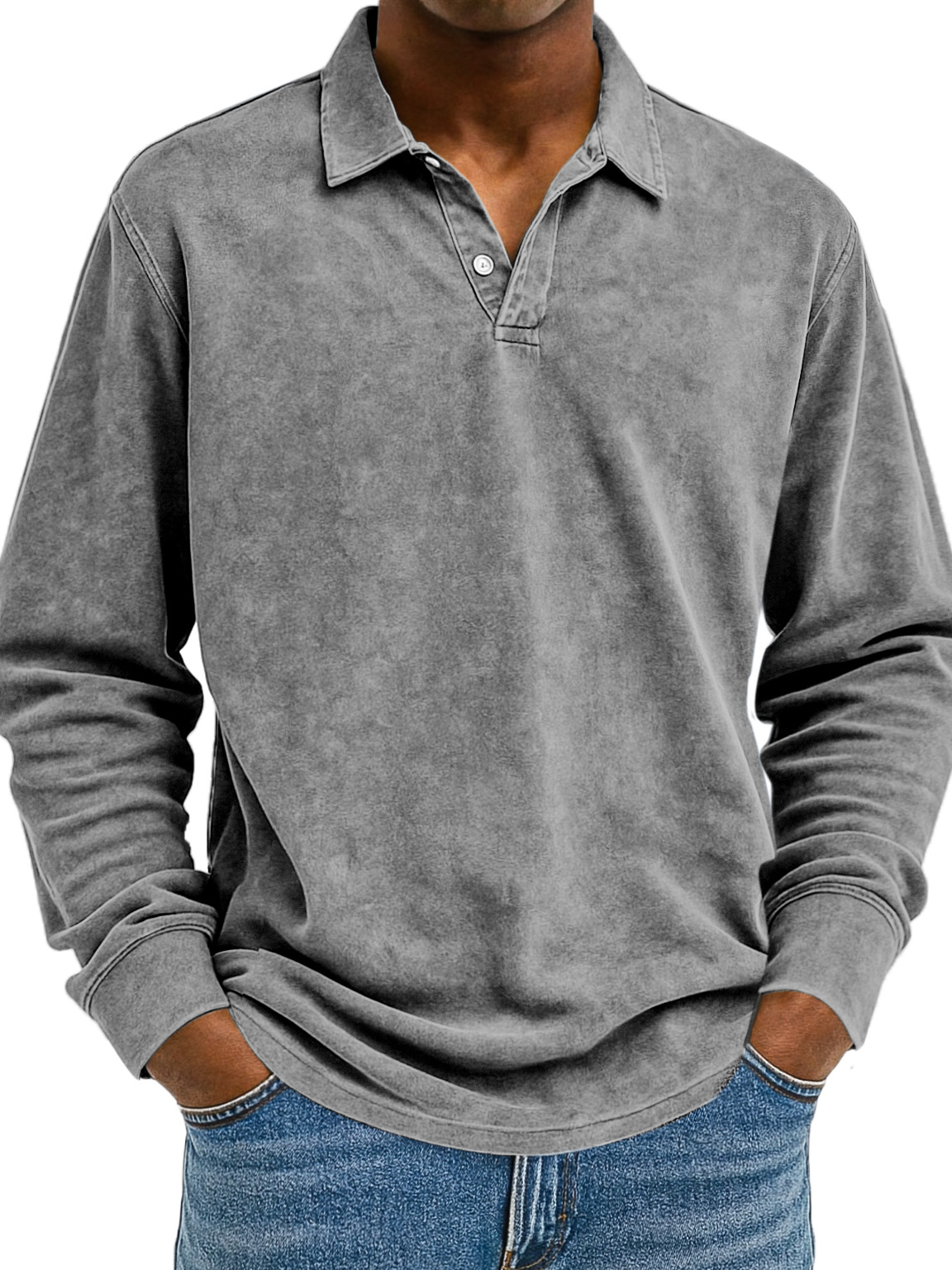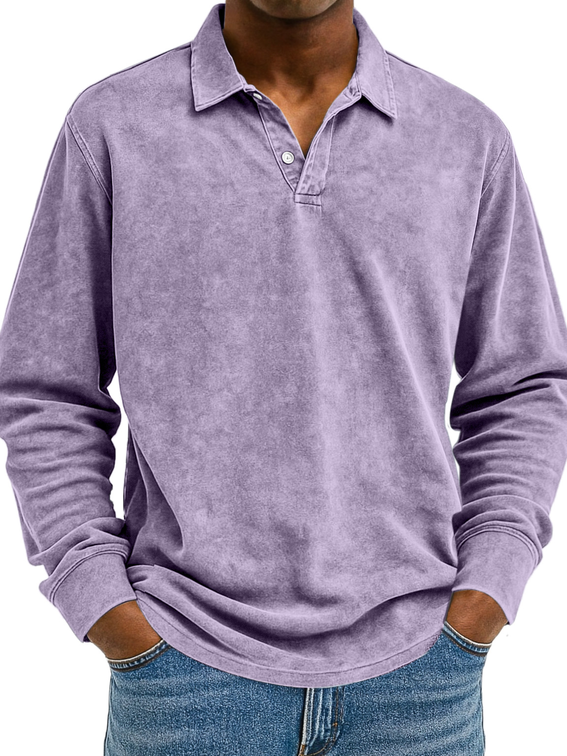 Men's Retro Solid Color Comfortable Loose Long Sleeve Polo Shirt