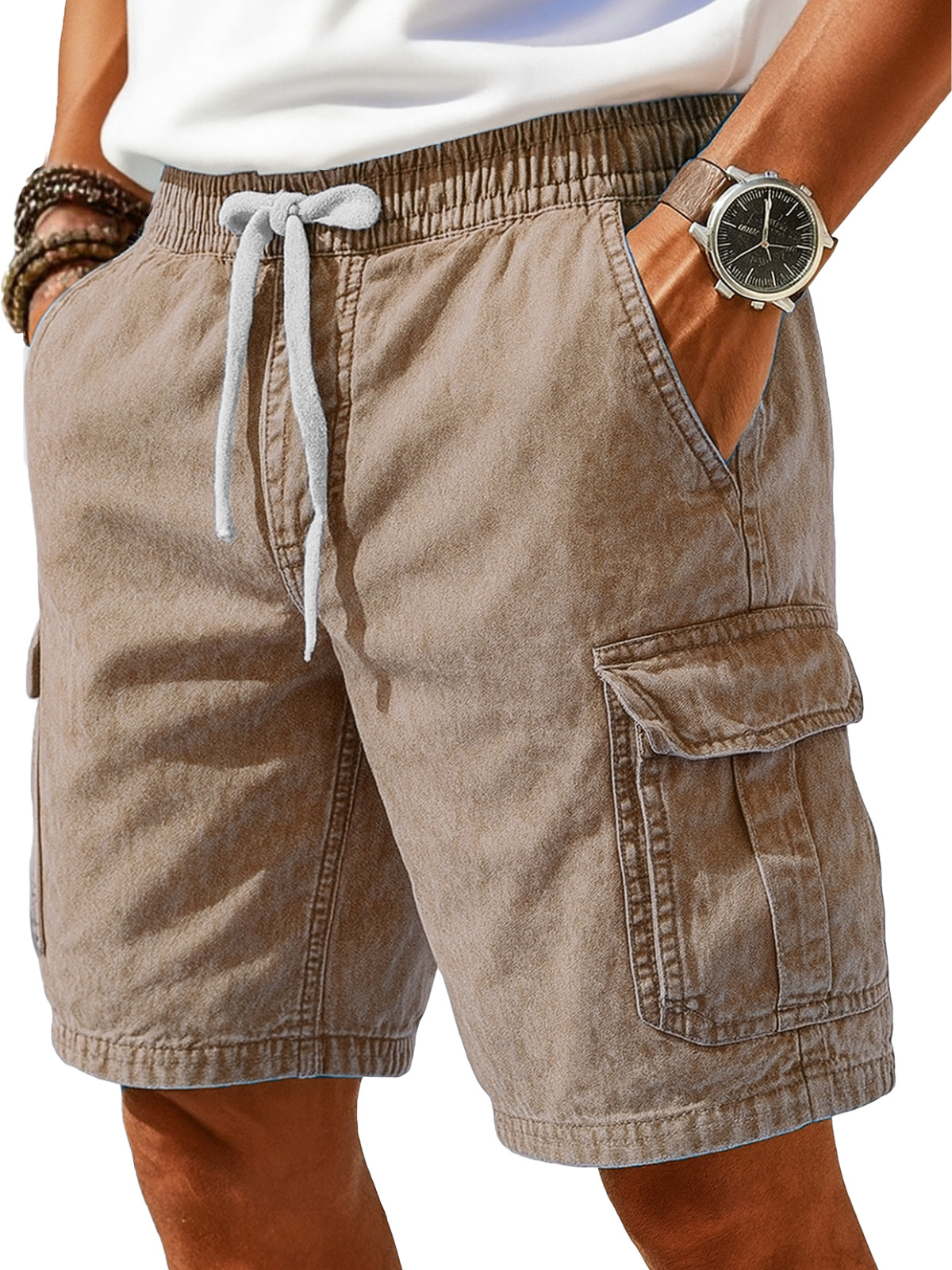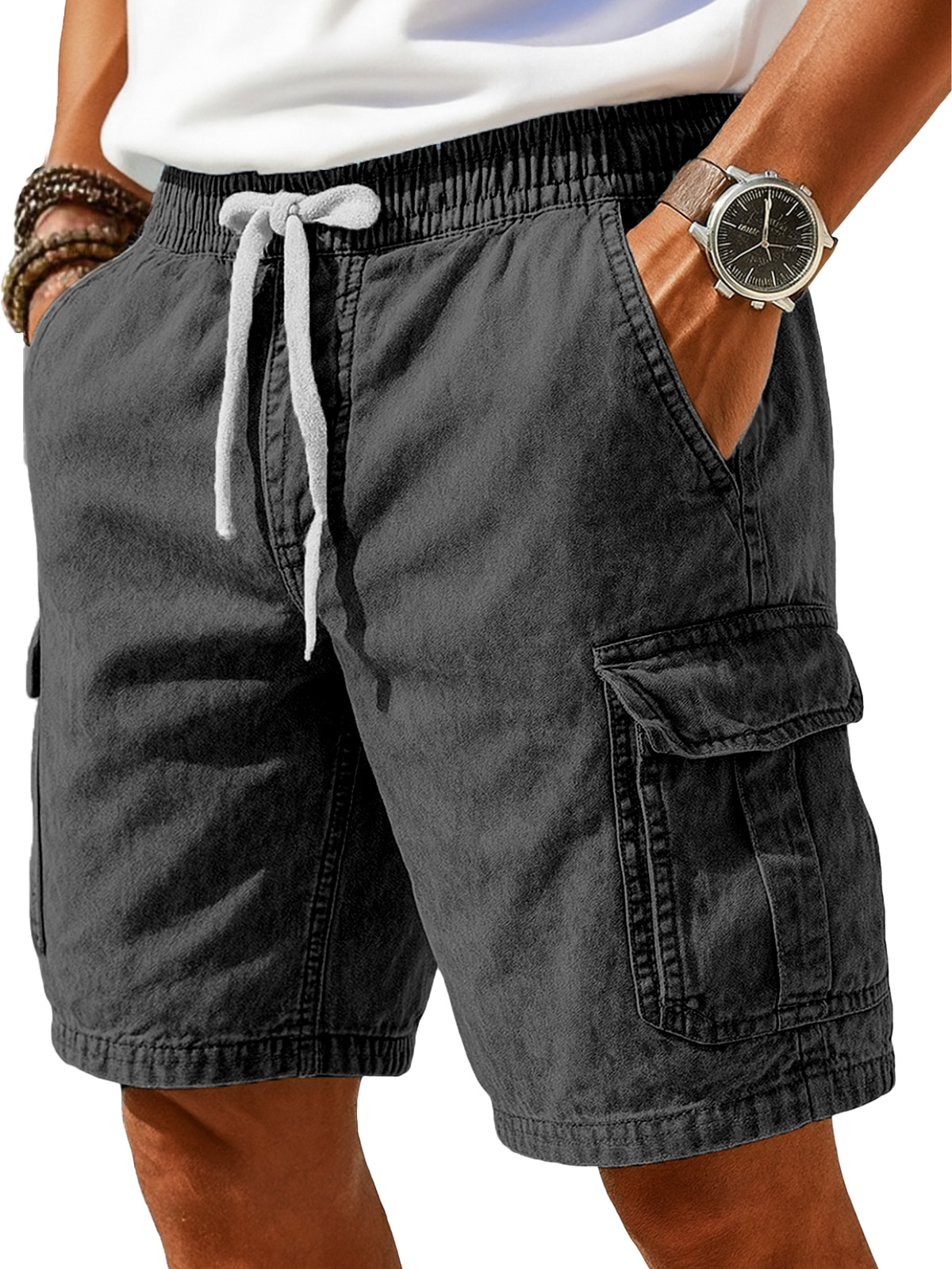 Men's retro solid color design casual shorts