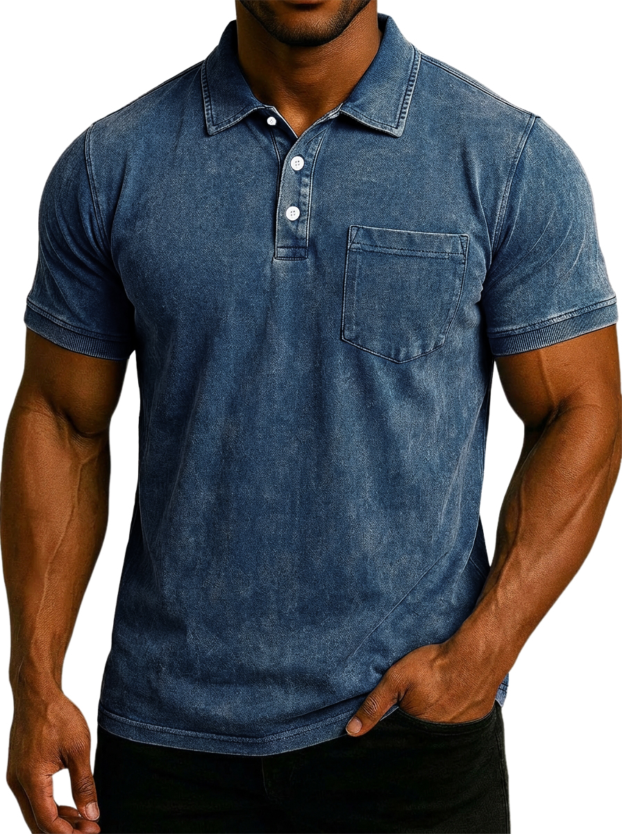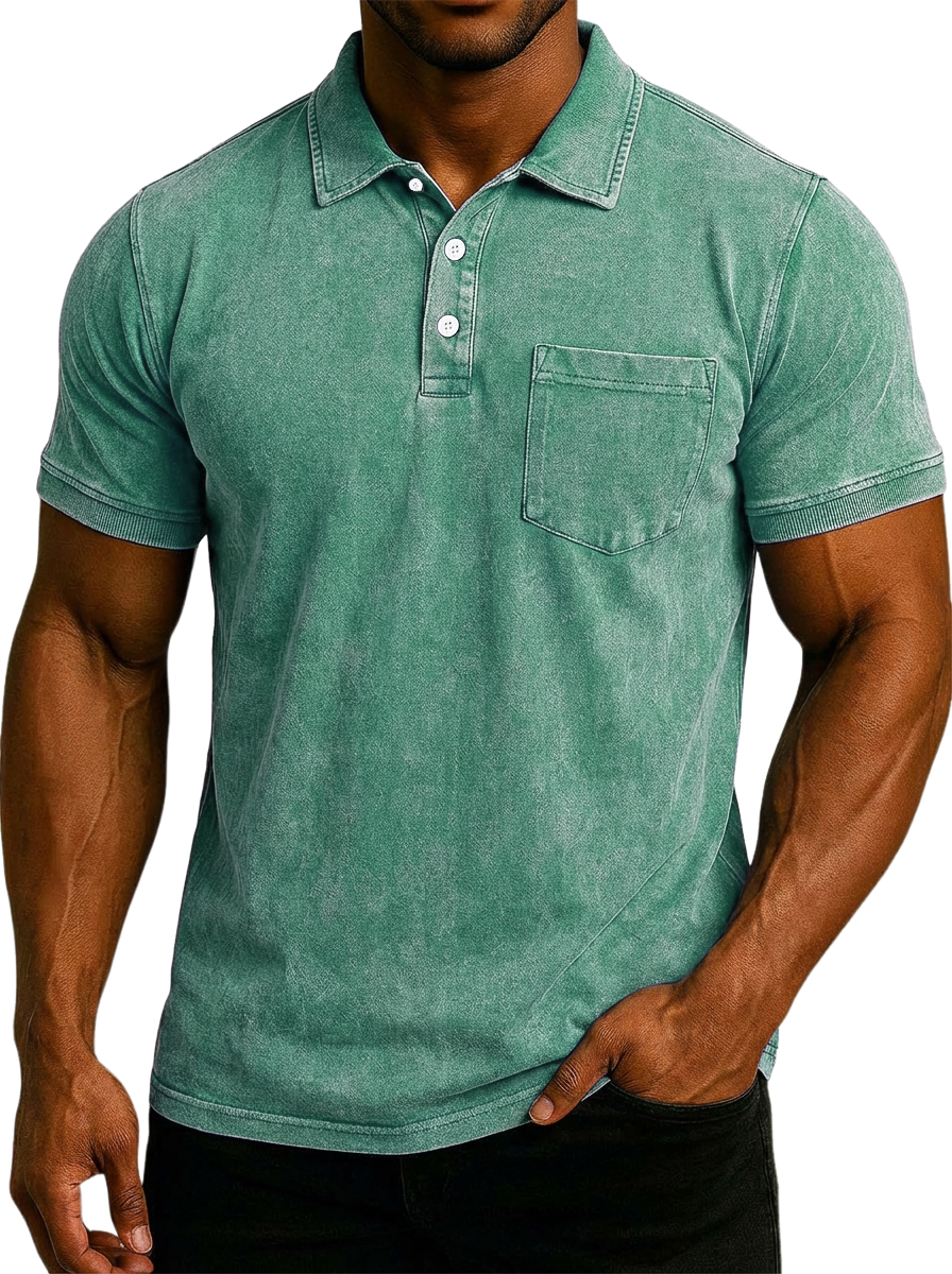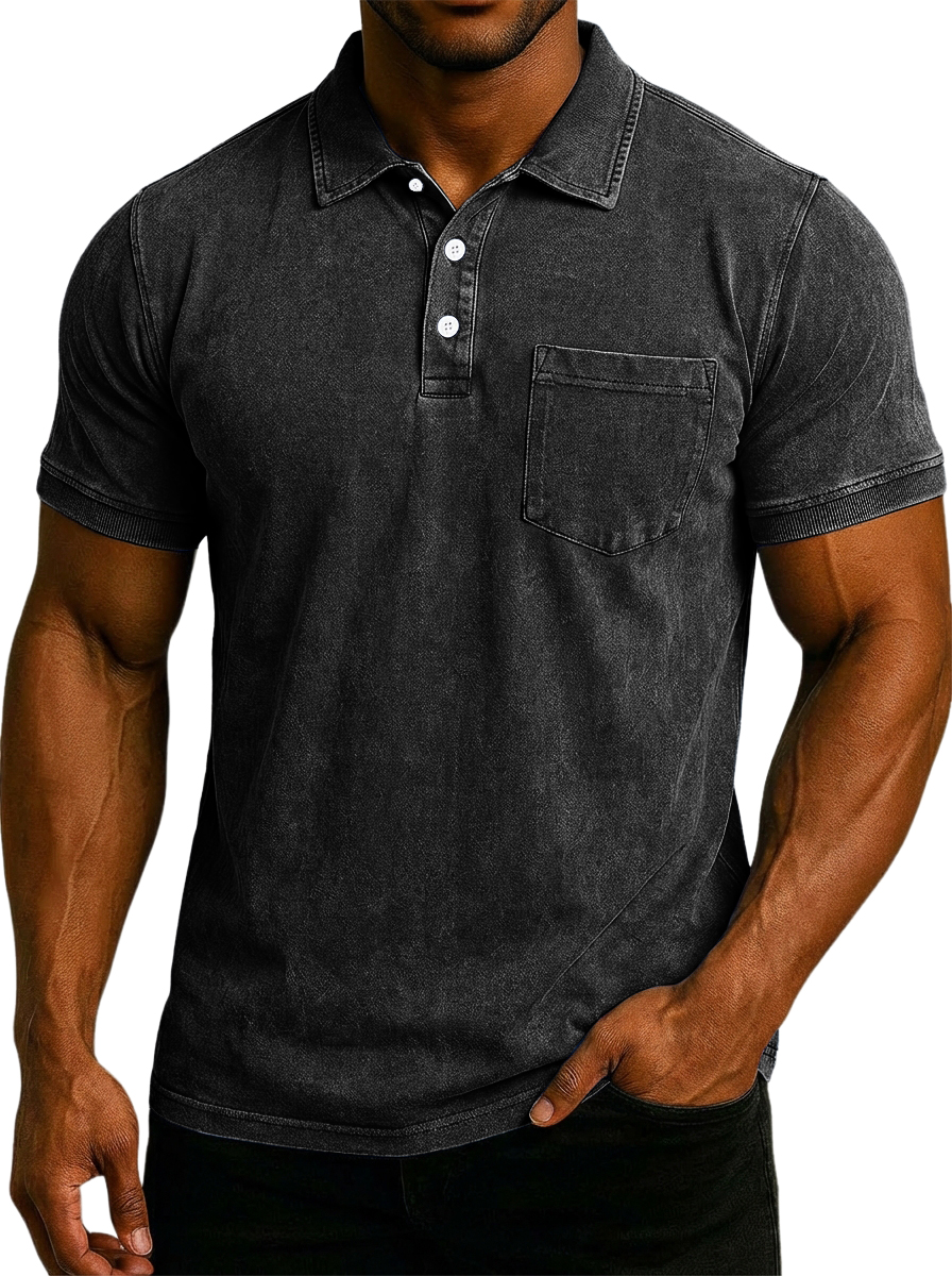 Men's Retro Washed Distressed Pocket Short-Sleeve Polo Shirt