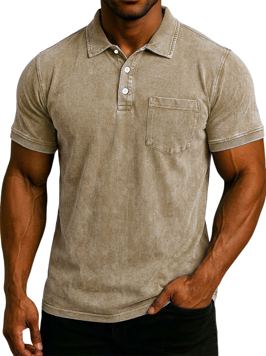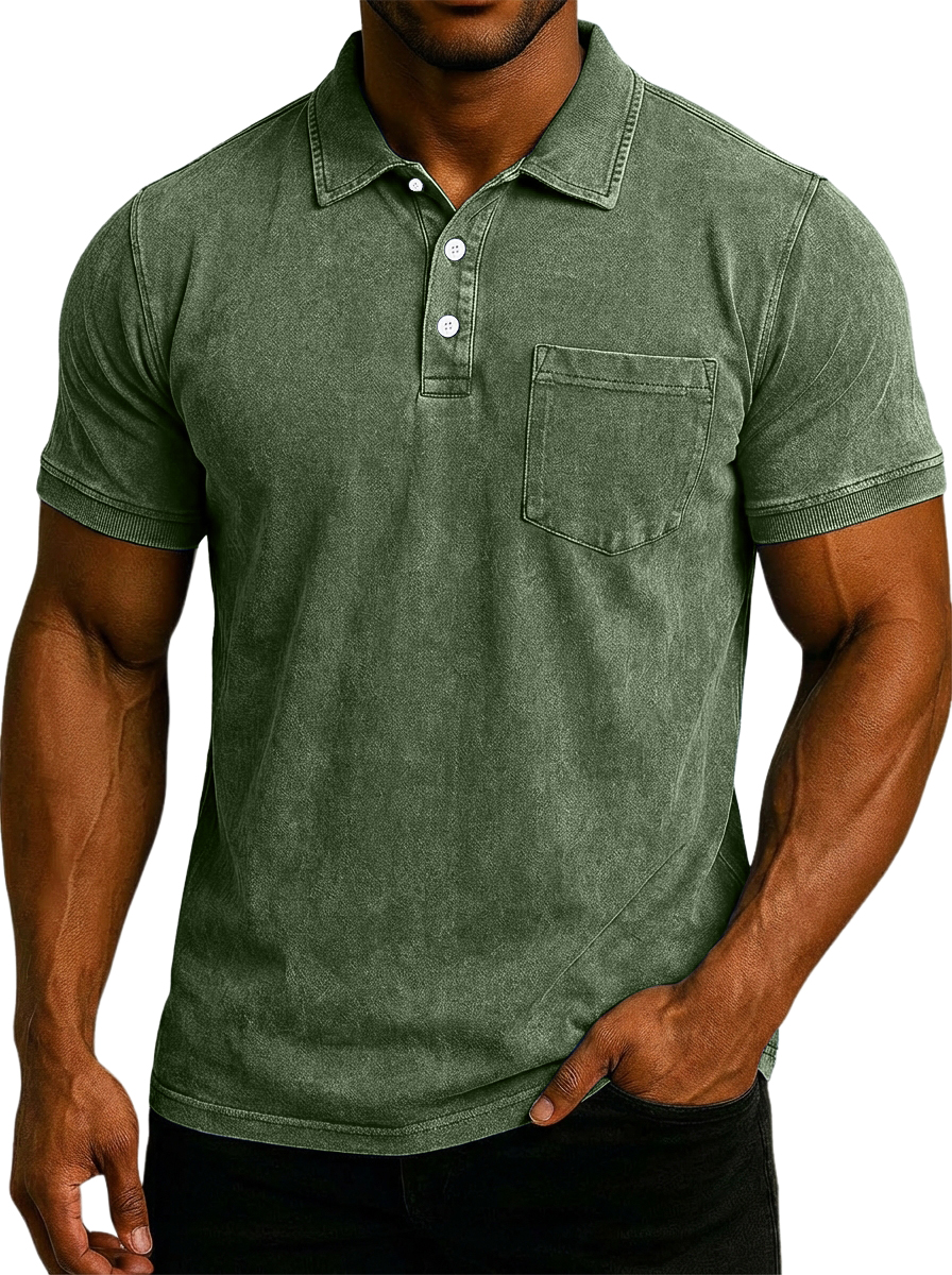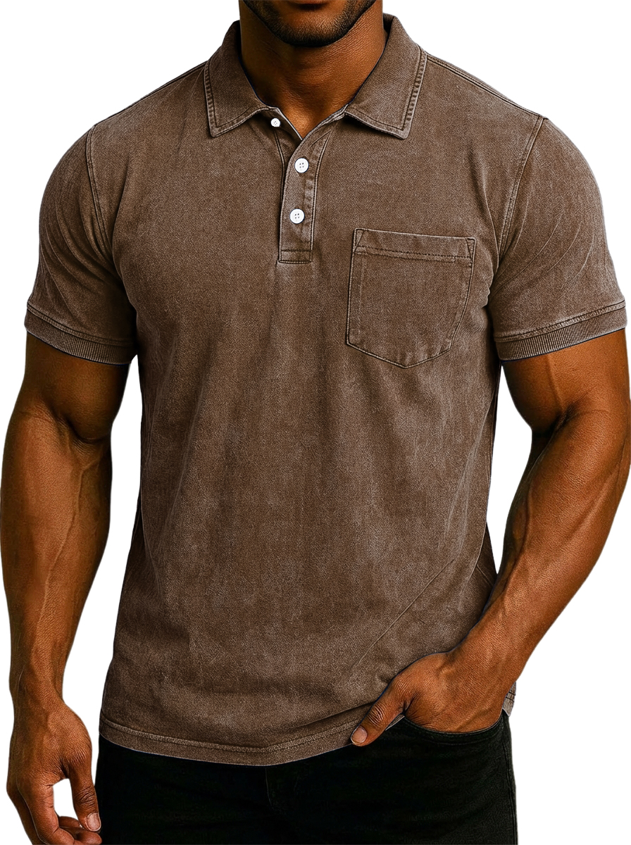 Men's Retro Washed Distressed Pocket Short-Sleeve Polo Shirt