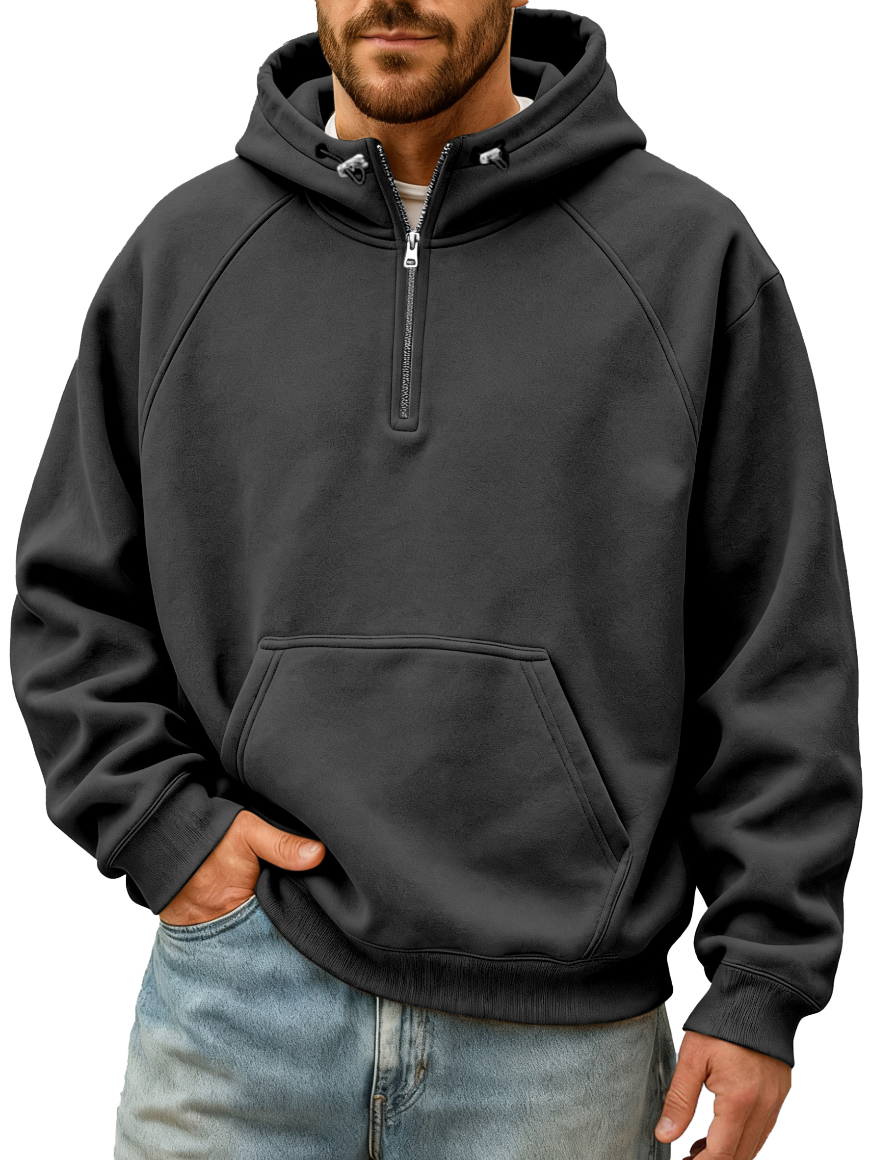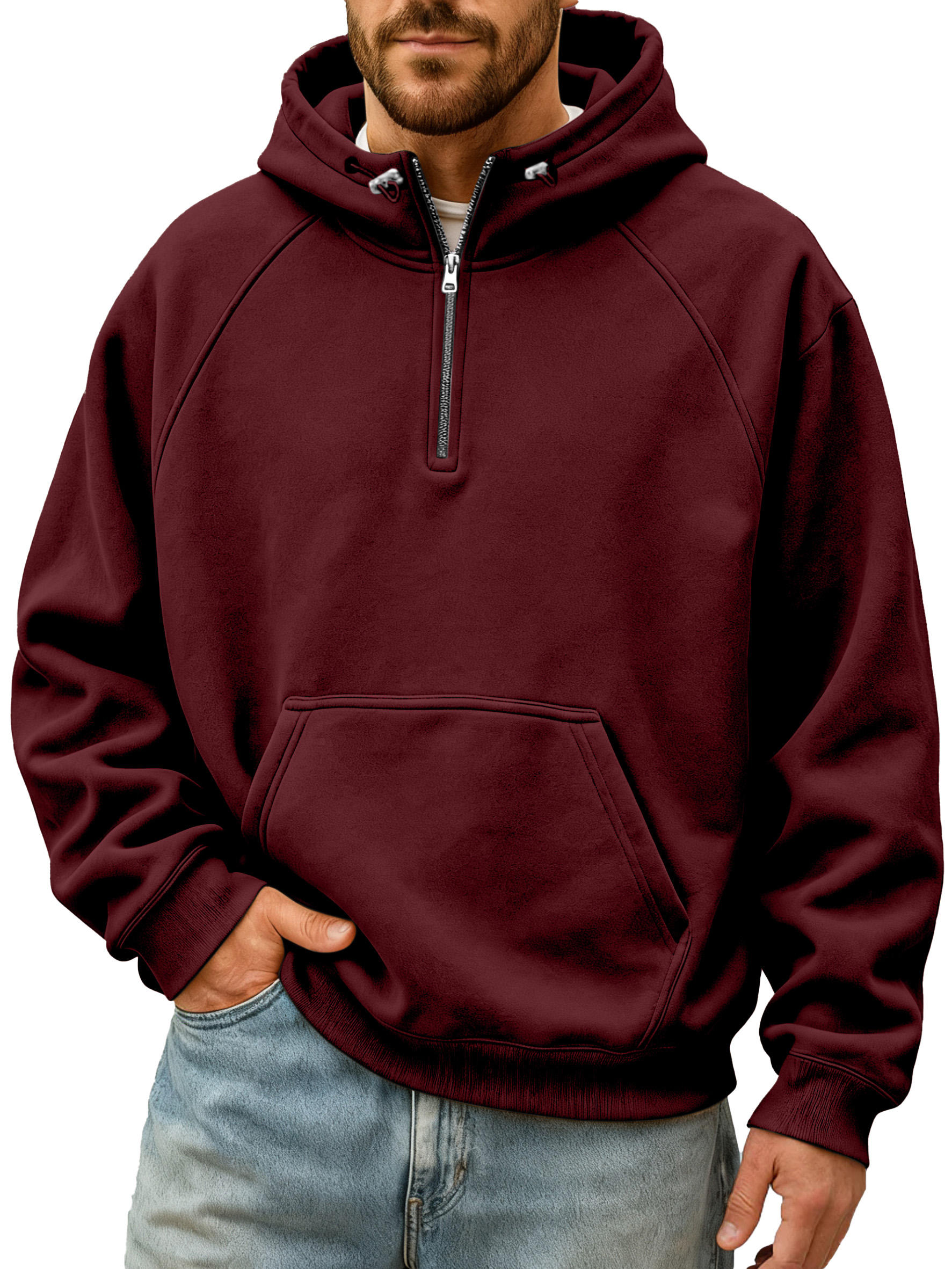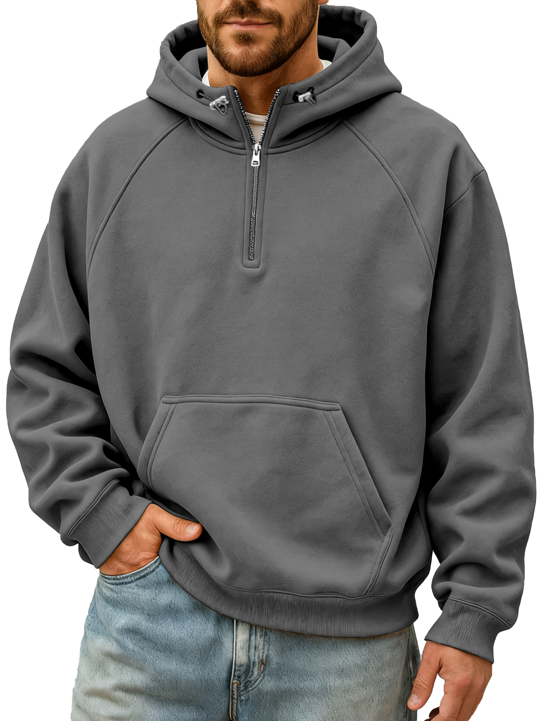 Men's Simple And Comfortable Solid Color Stand Collar Zipper Hooded Sweatshirt