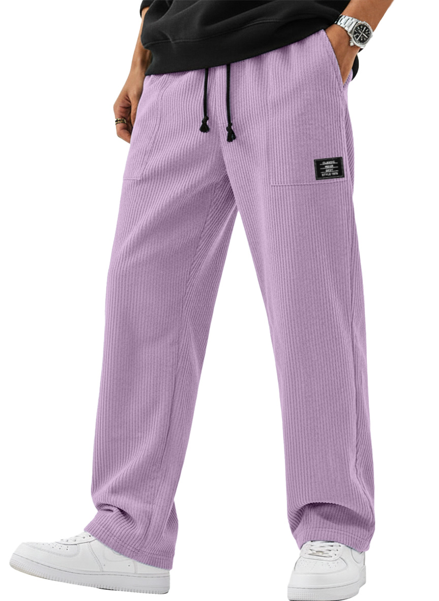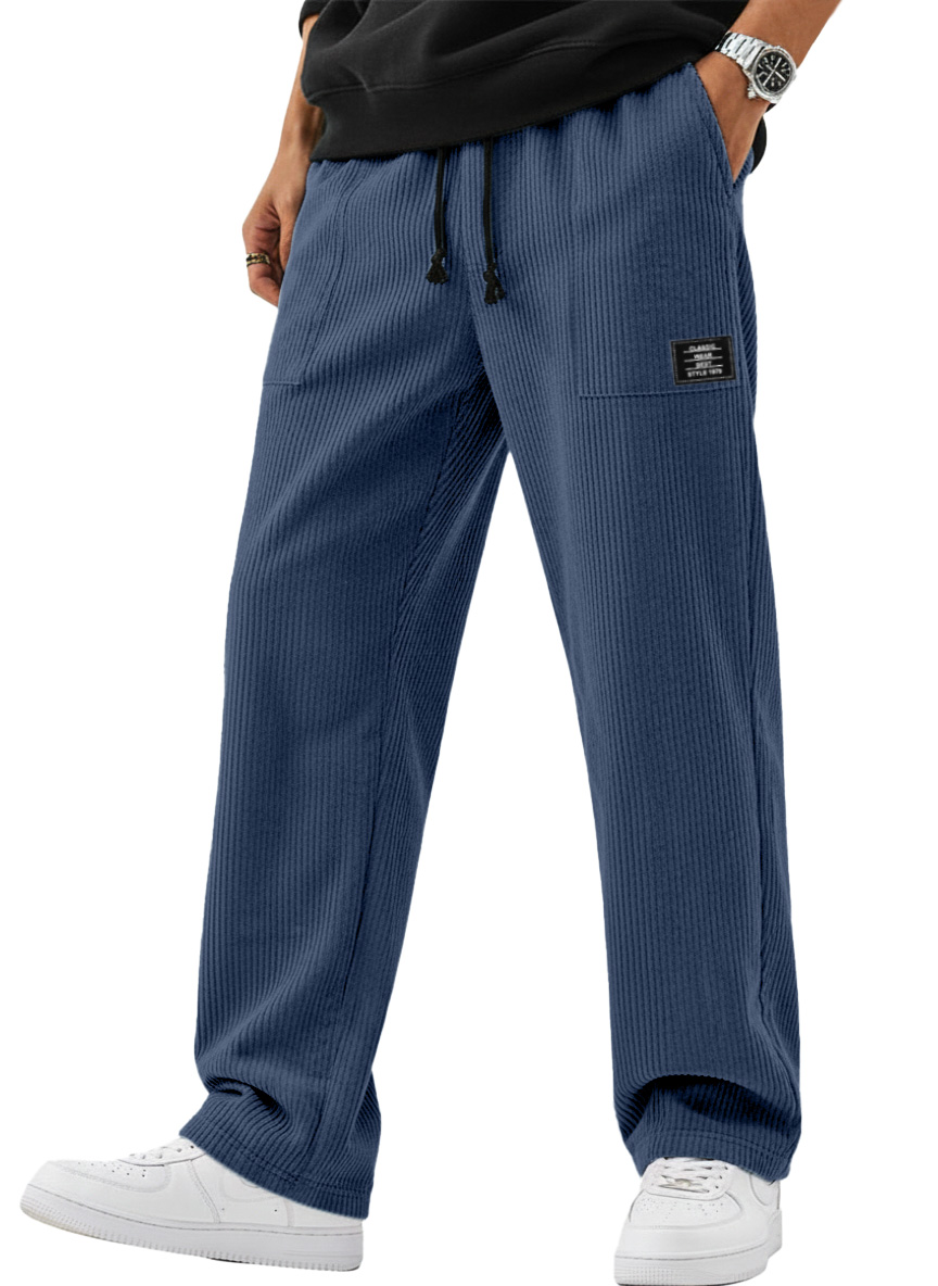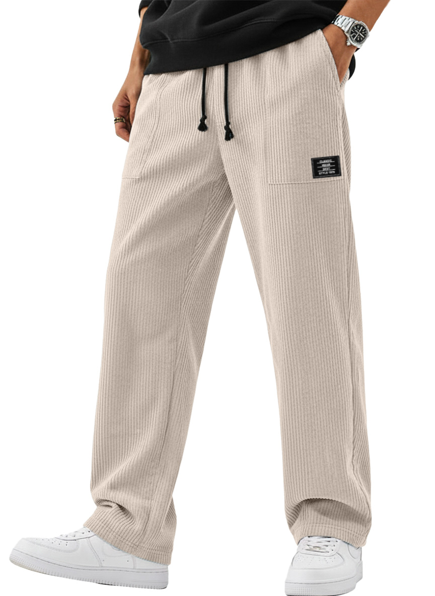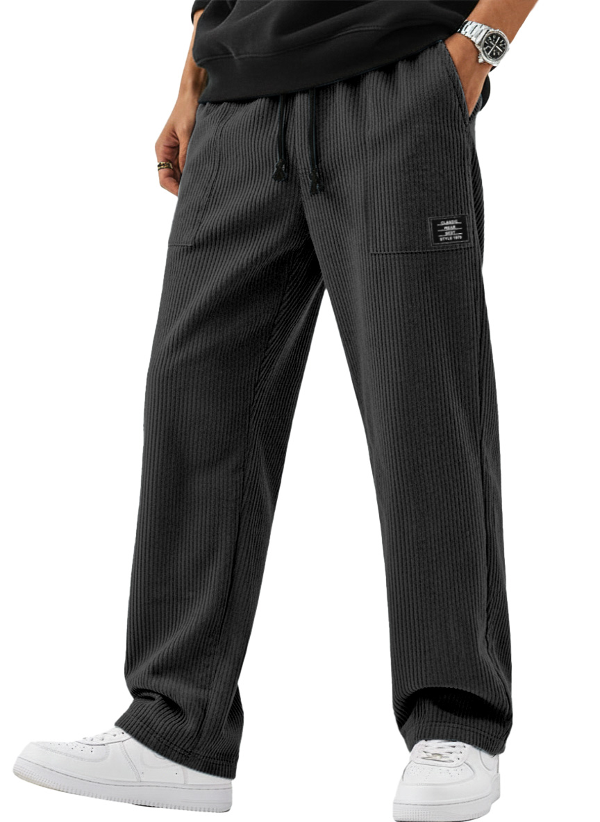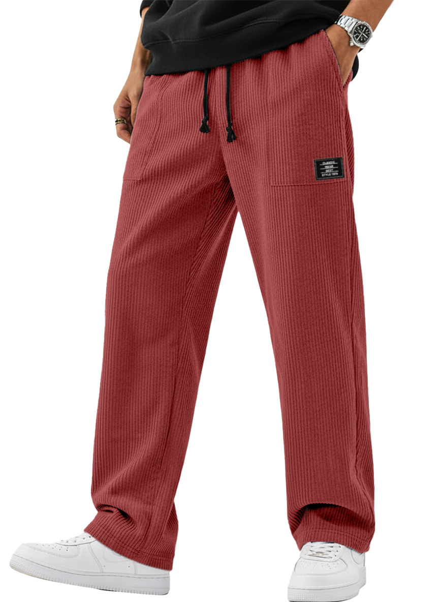 Men's Simple And Versatile Corduroy Loose-fitting Straight-leg Trousers With Logo