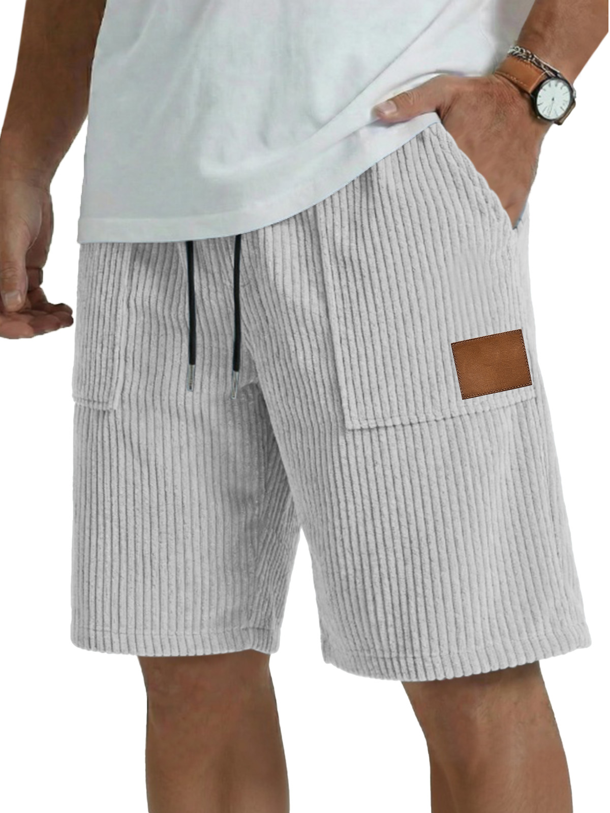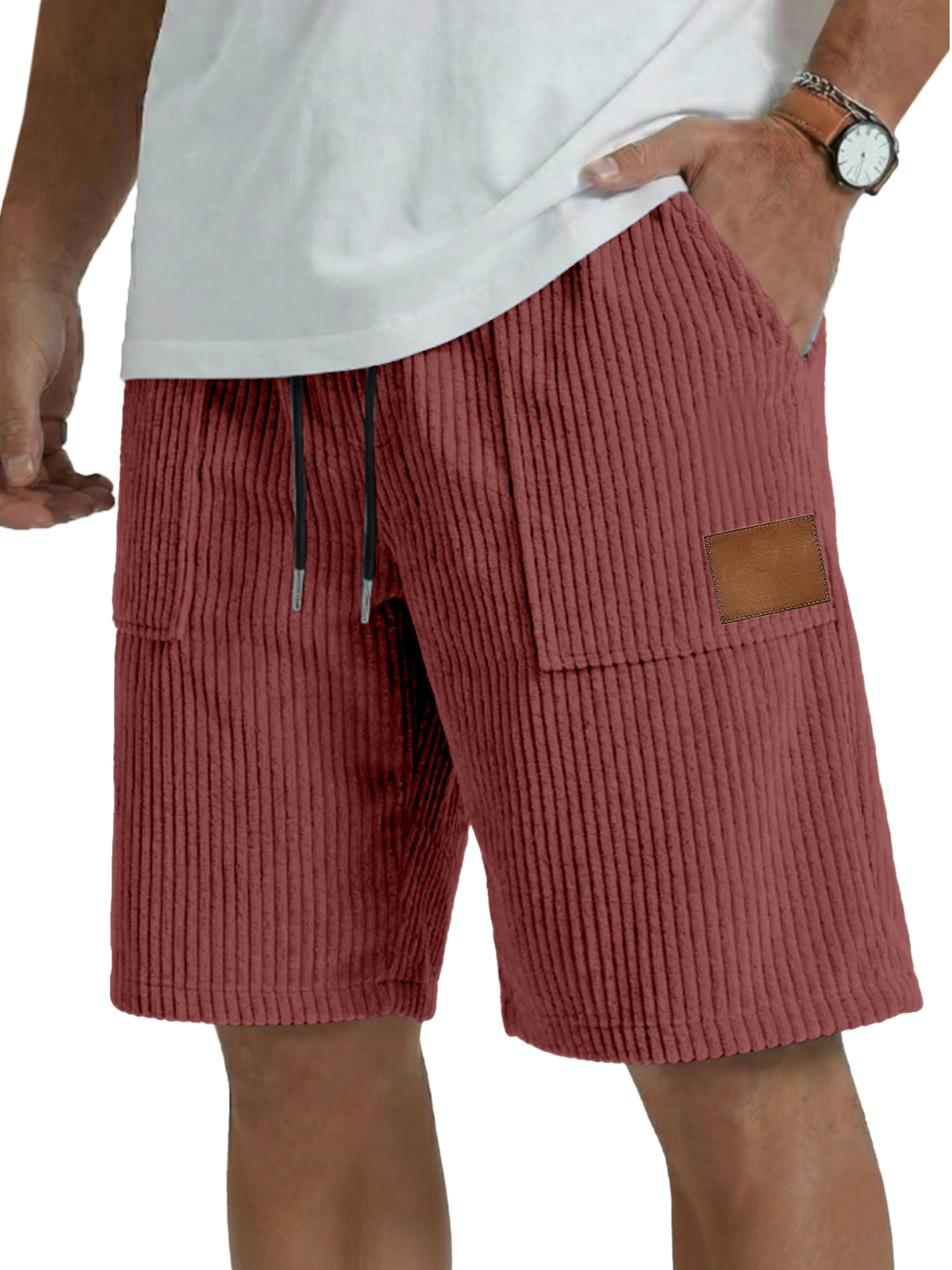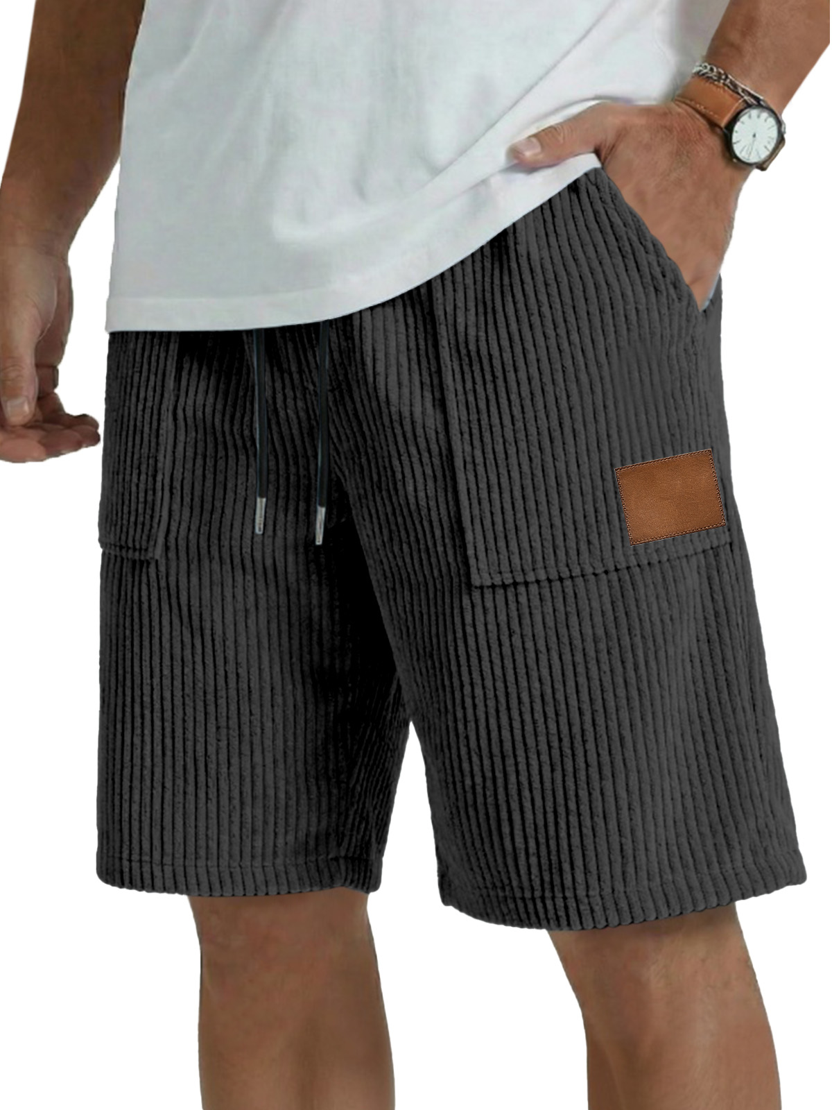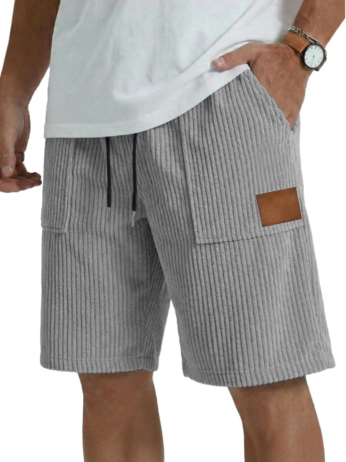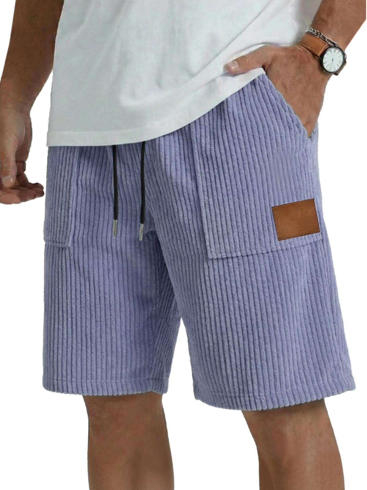 Men's simple casual patch pocket vertical pit shorts