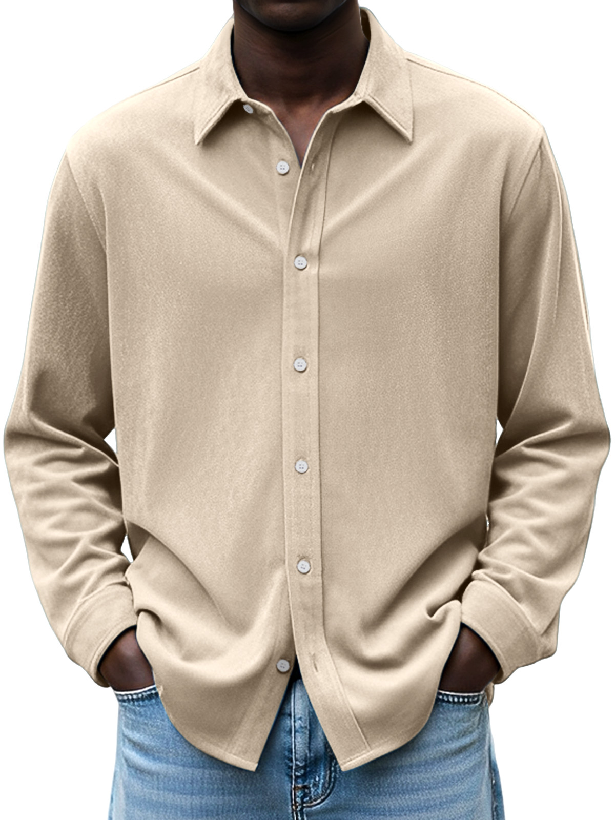 Men's Simple Daily Casual Design Suede Solid Color Lapel Long-sleeved Shirt