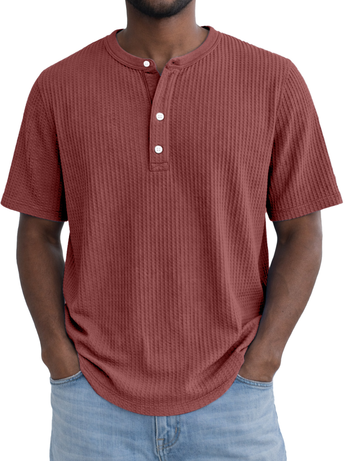 Men's Simple Everyday Waffle Button Down Short Sleeve Henley