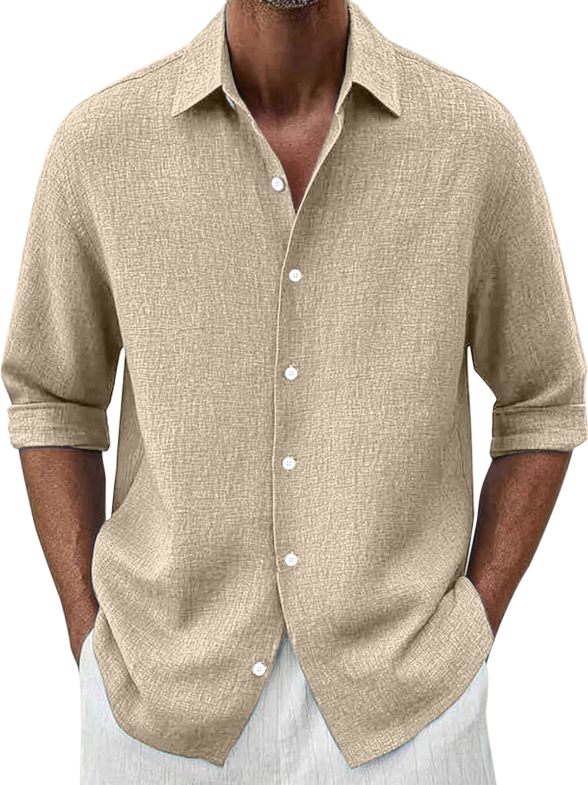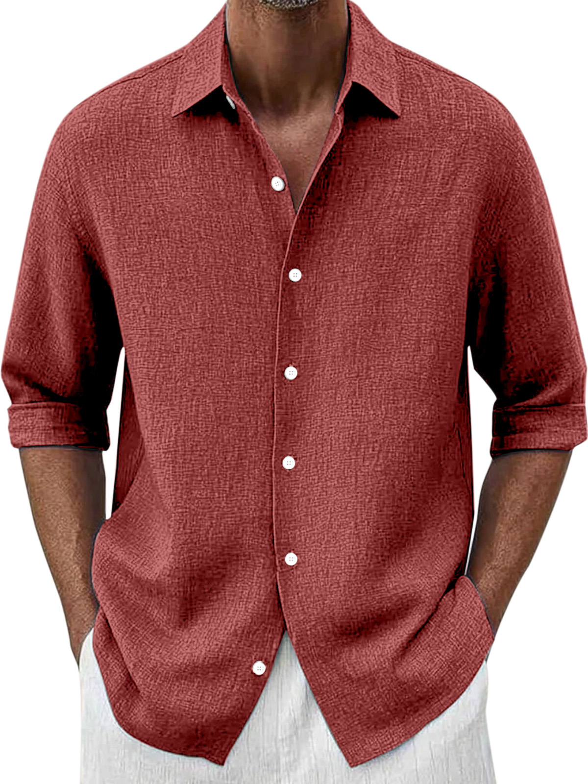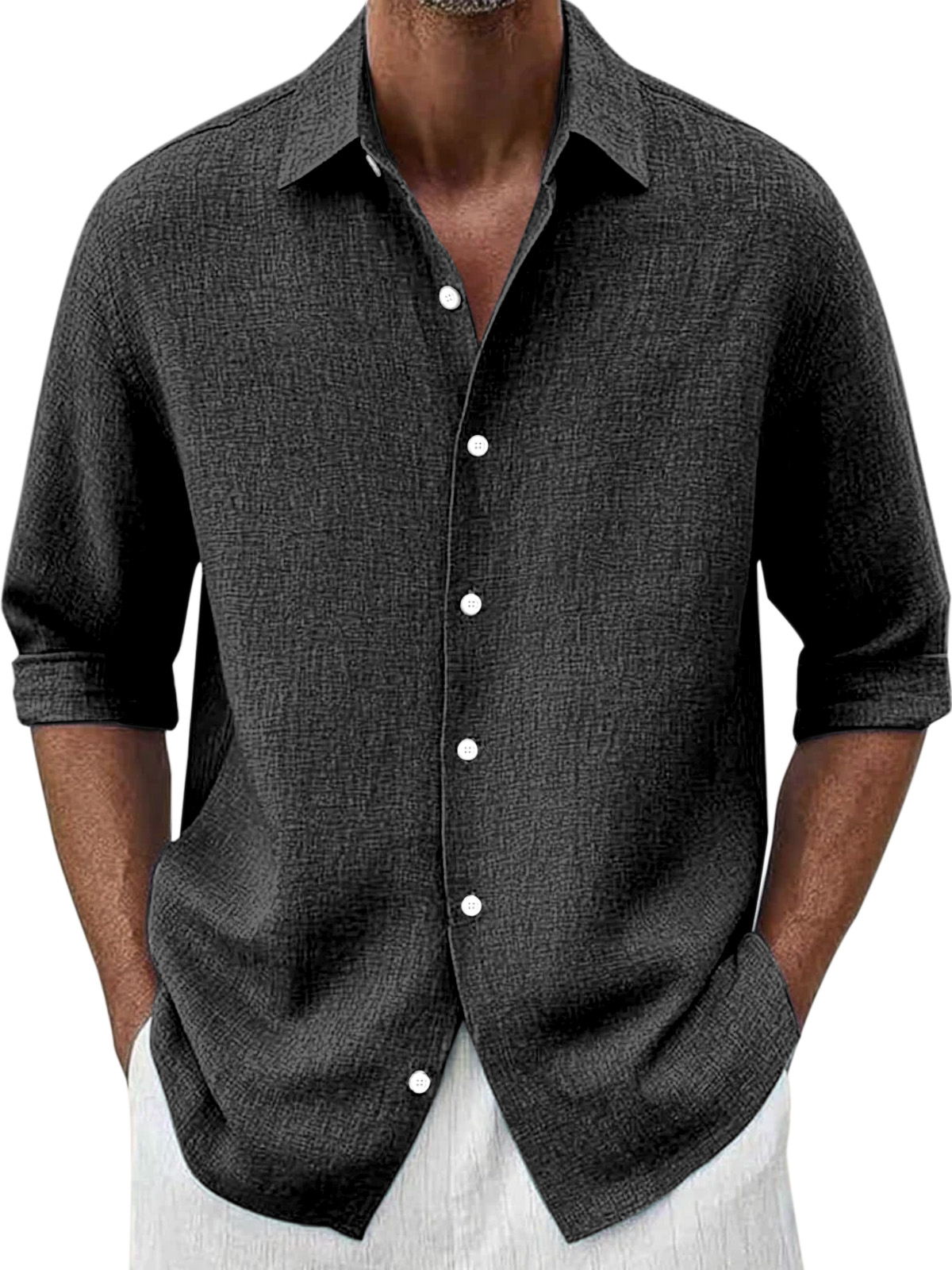 Men's Simple Loose Solid Color Versatile Button Lapel Long-sleeved Shirt