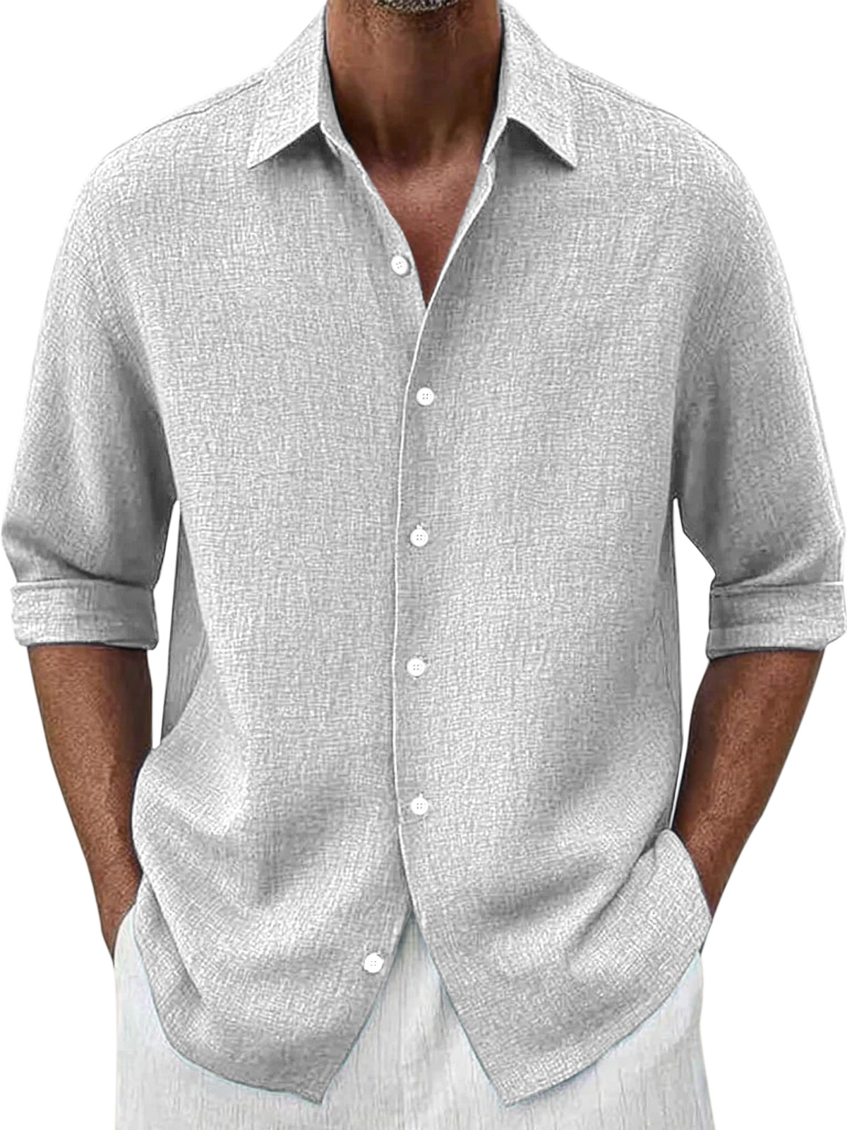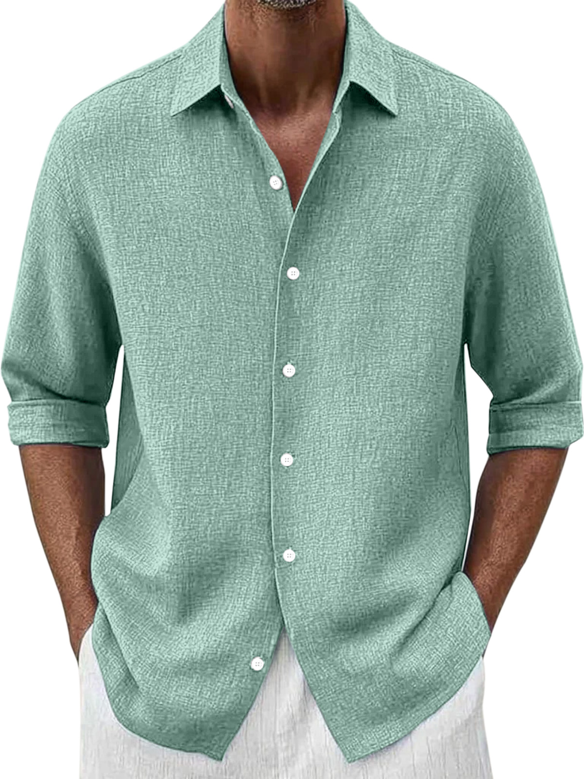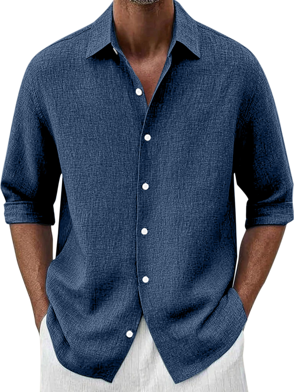 Men's Simple Loose Solid Color Versatile Button Lapel Long-sleeved Shirt