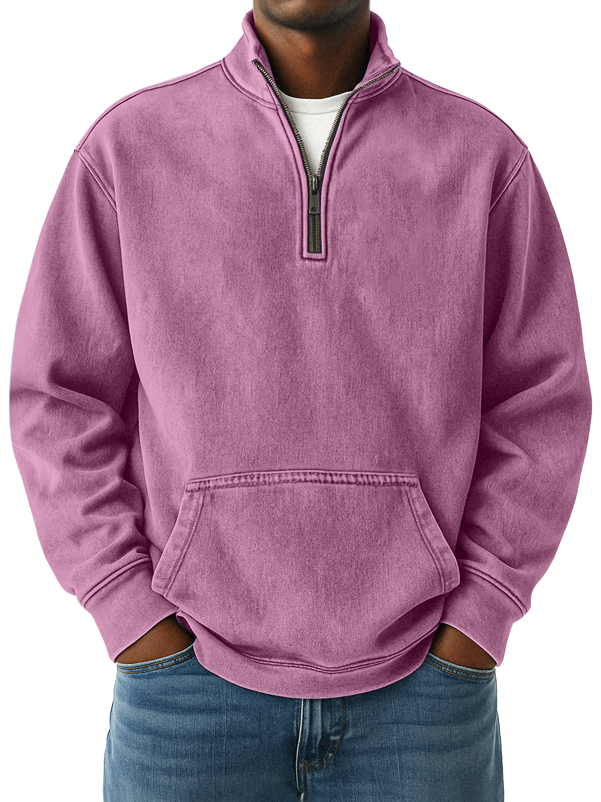 Men's Simple Retro Loose Pocket Quarter Stand Collar Zipper Sweatshirt