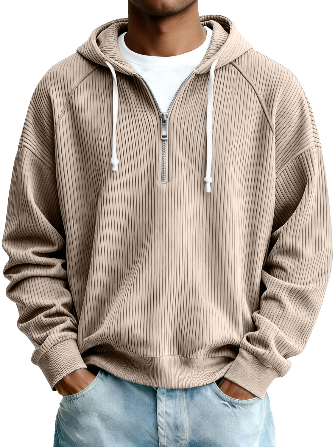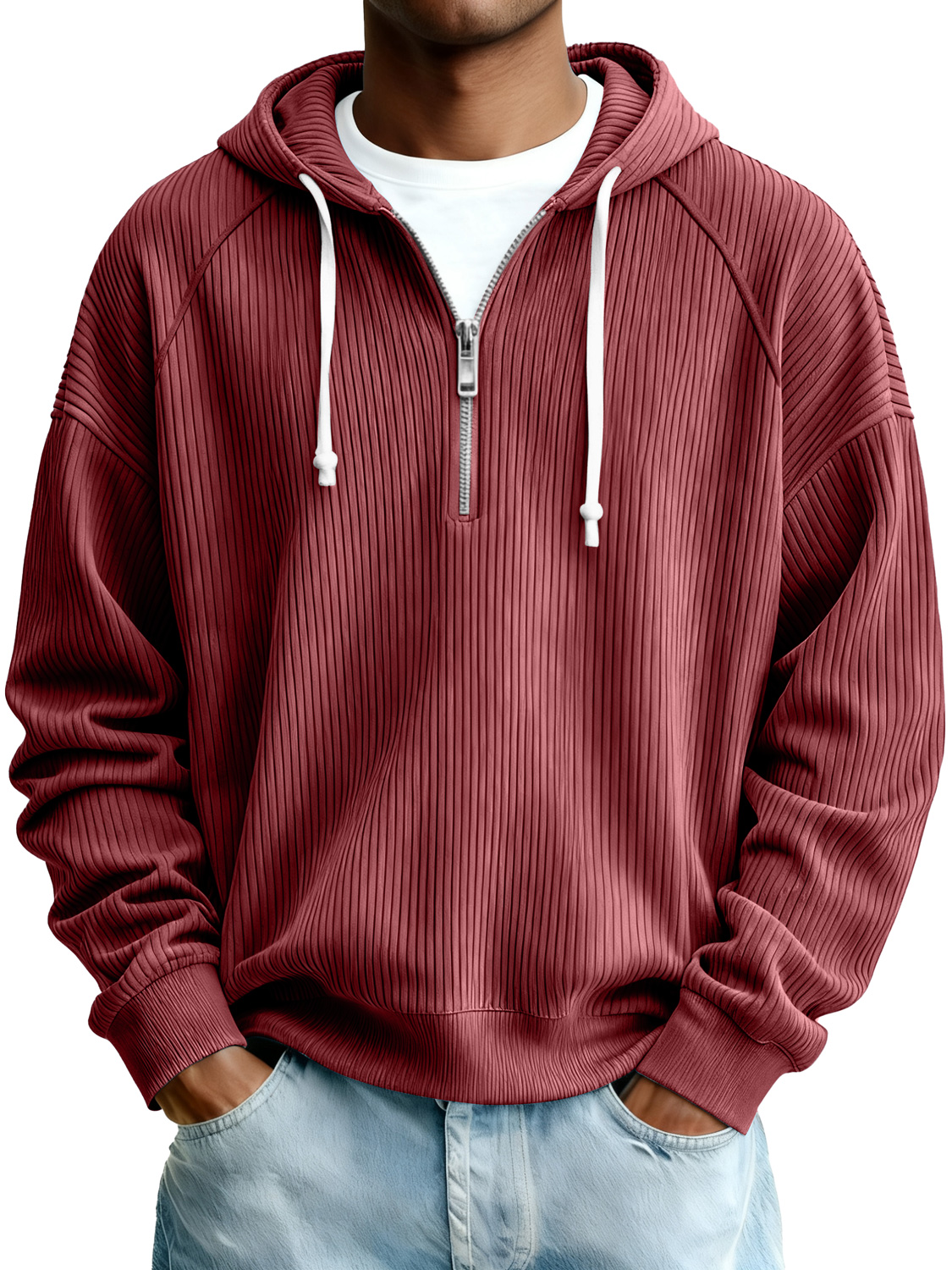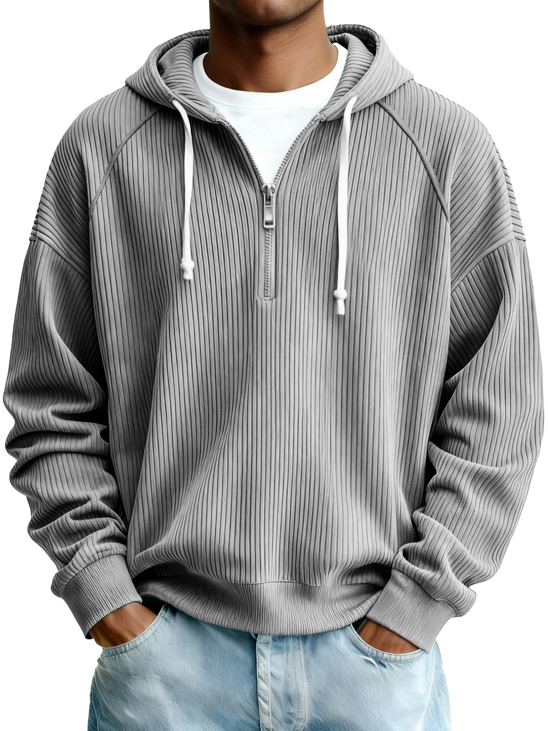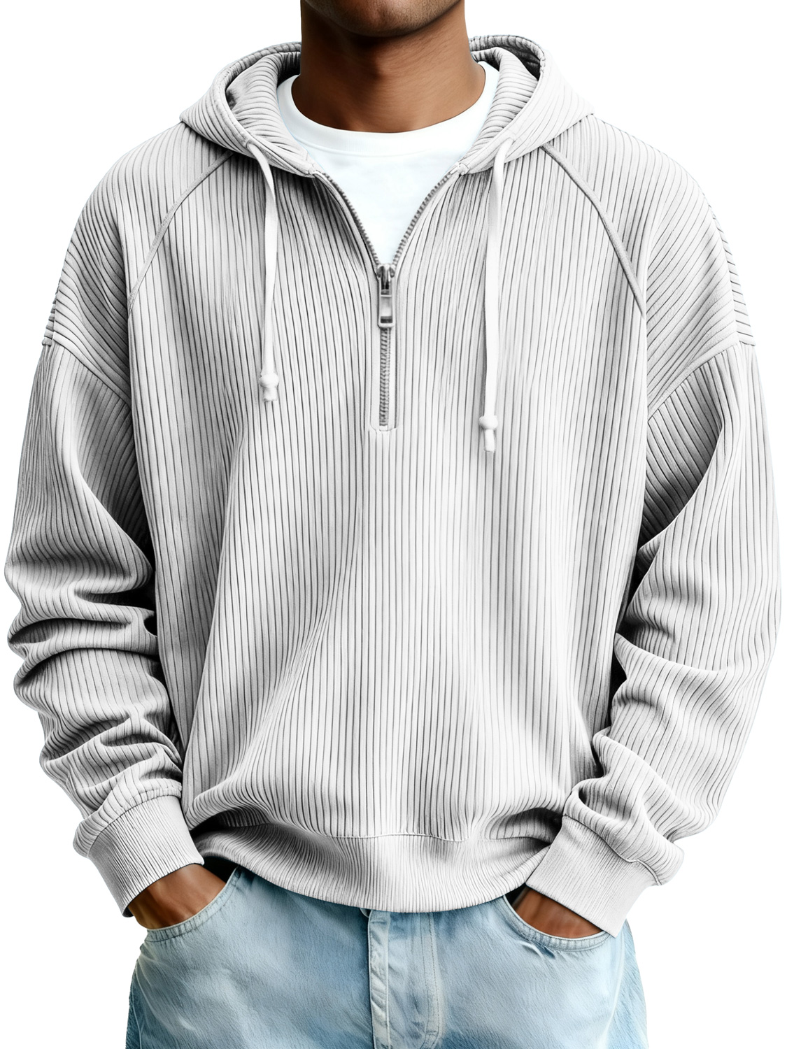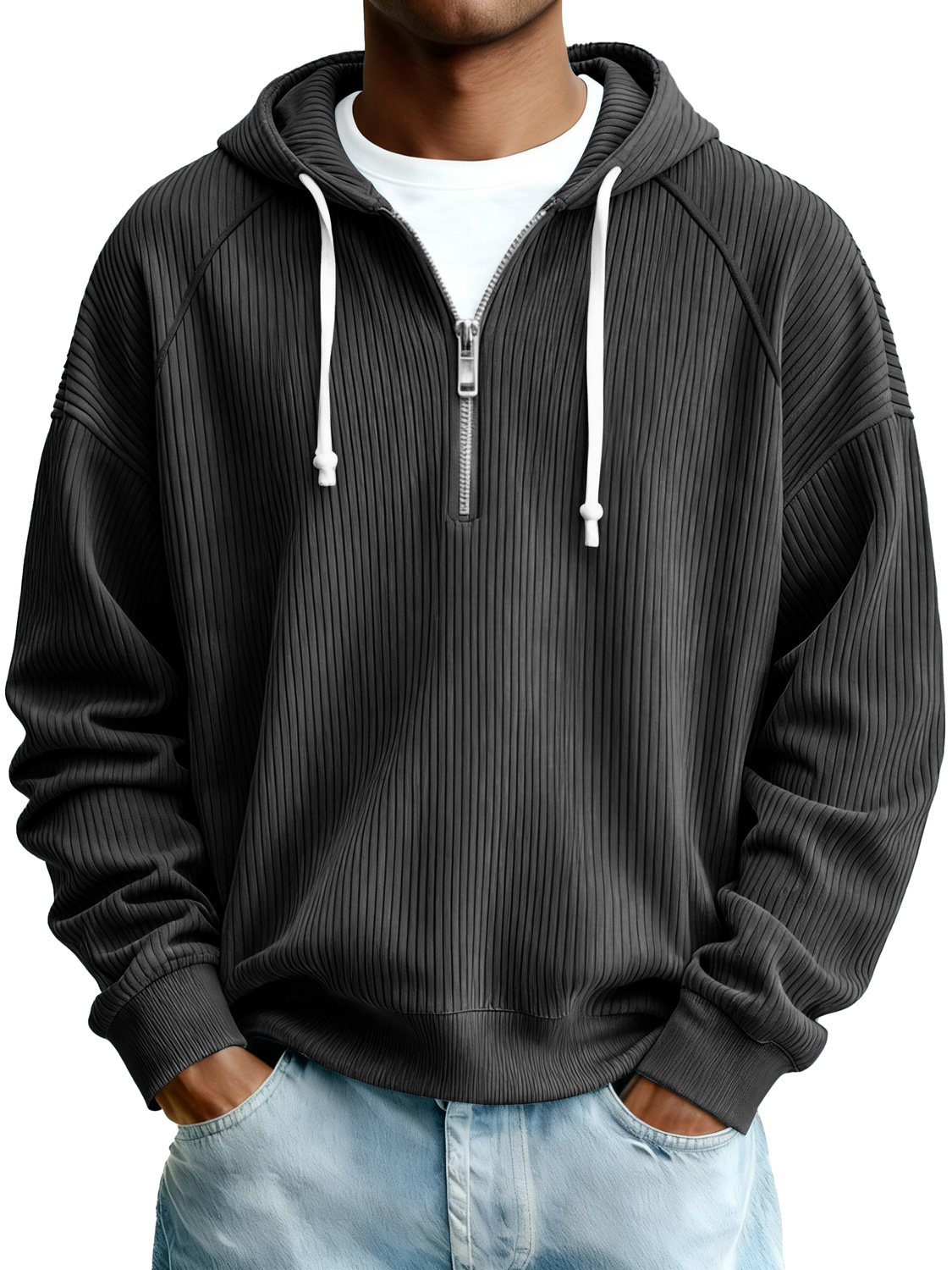 Men's Simple Ribbed Zipper Hooded Casual Sweatshirt