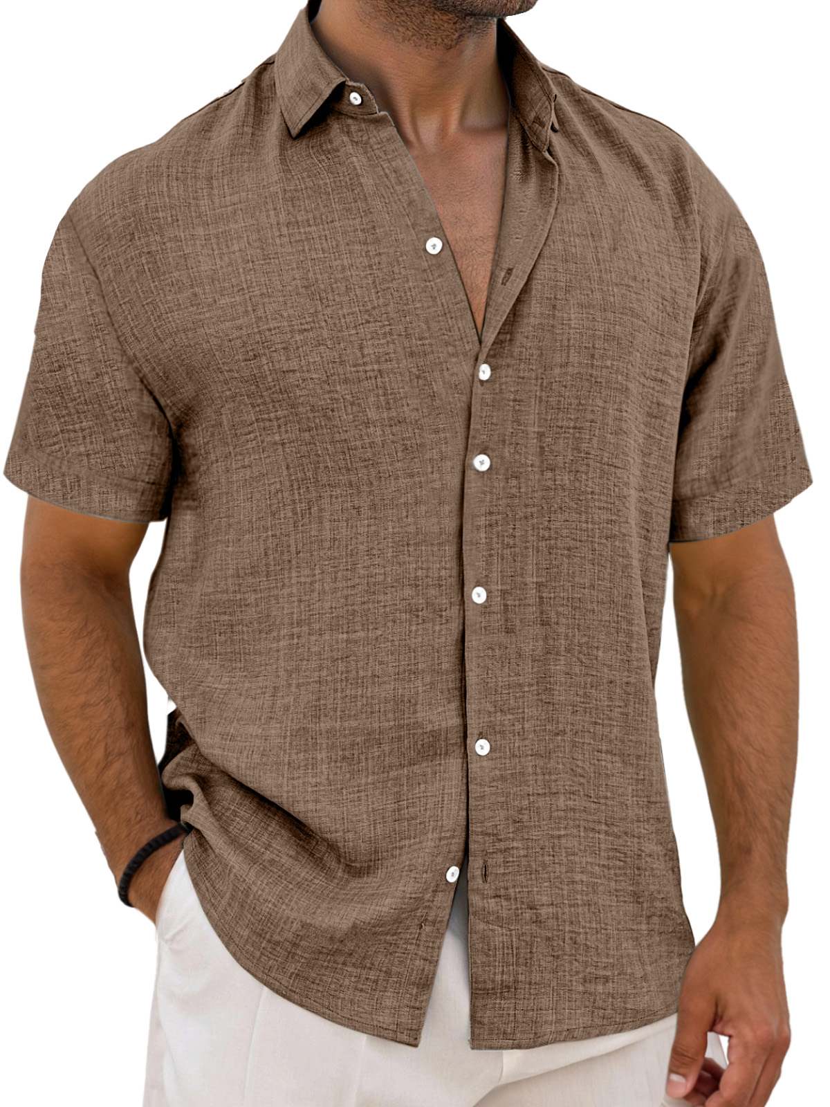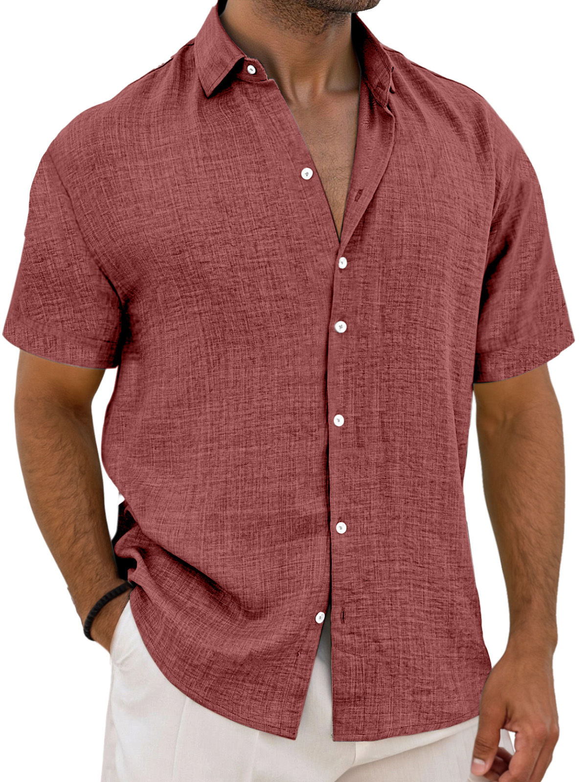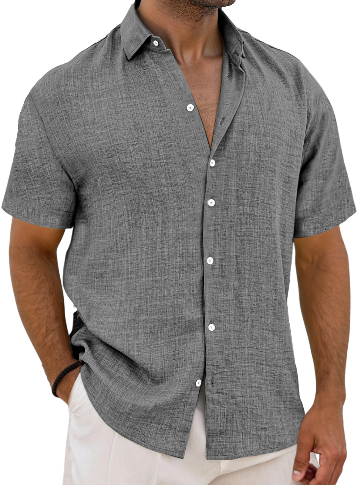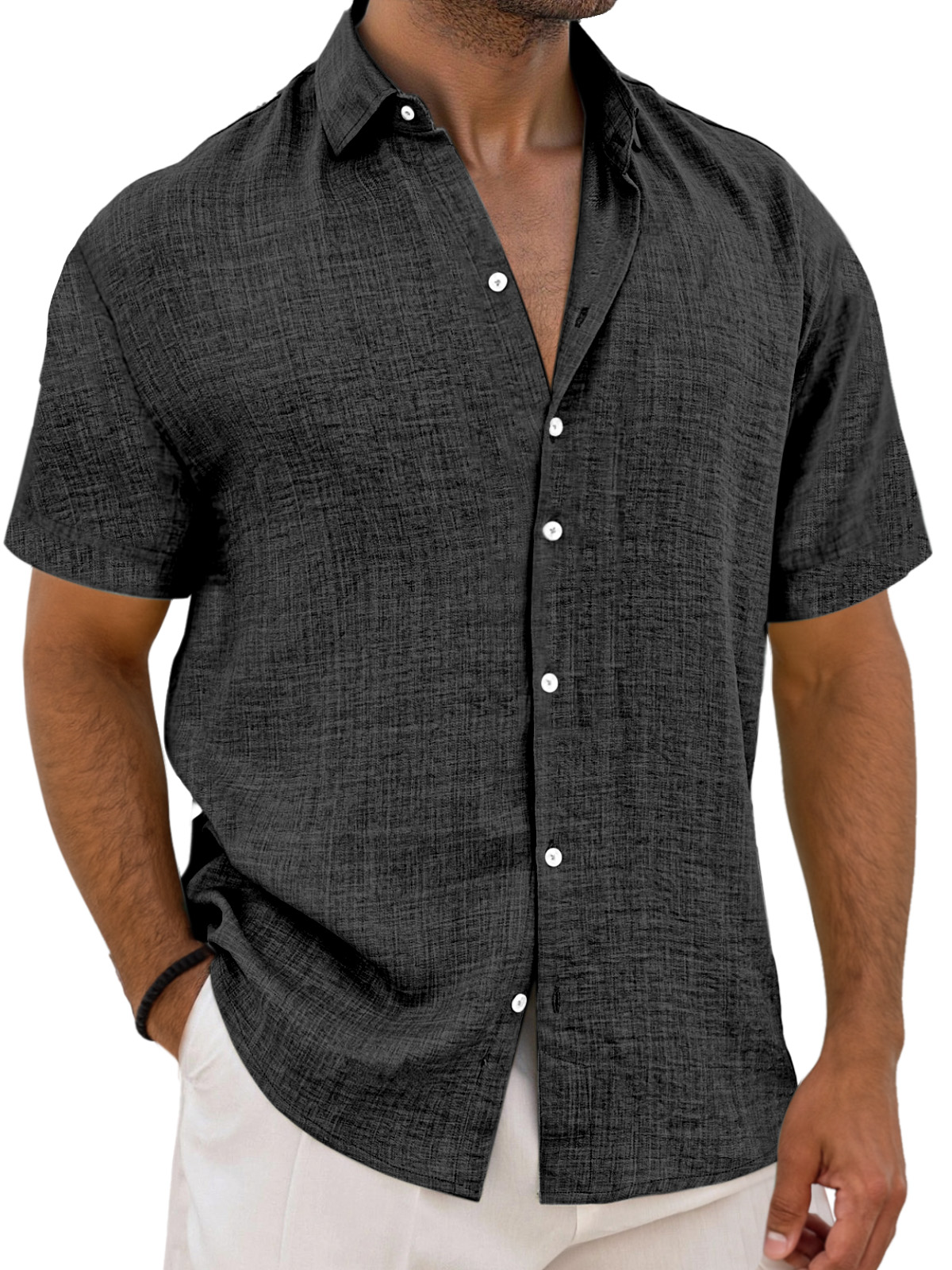 Men's Simple Solid Color Breathable Loose Lapel Short-sleeved Shirt